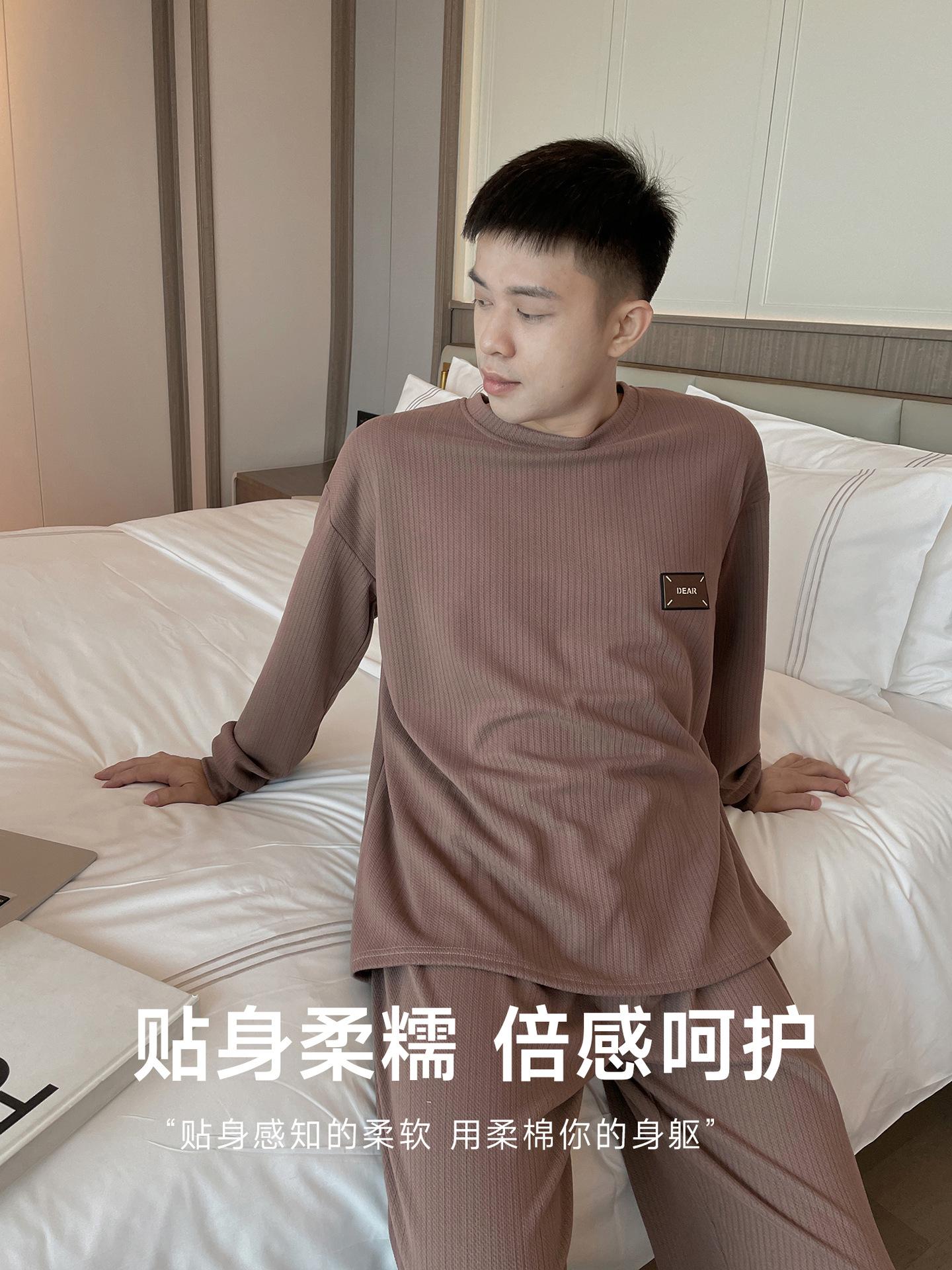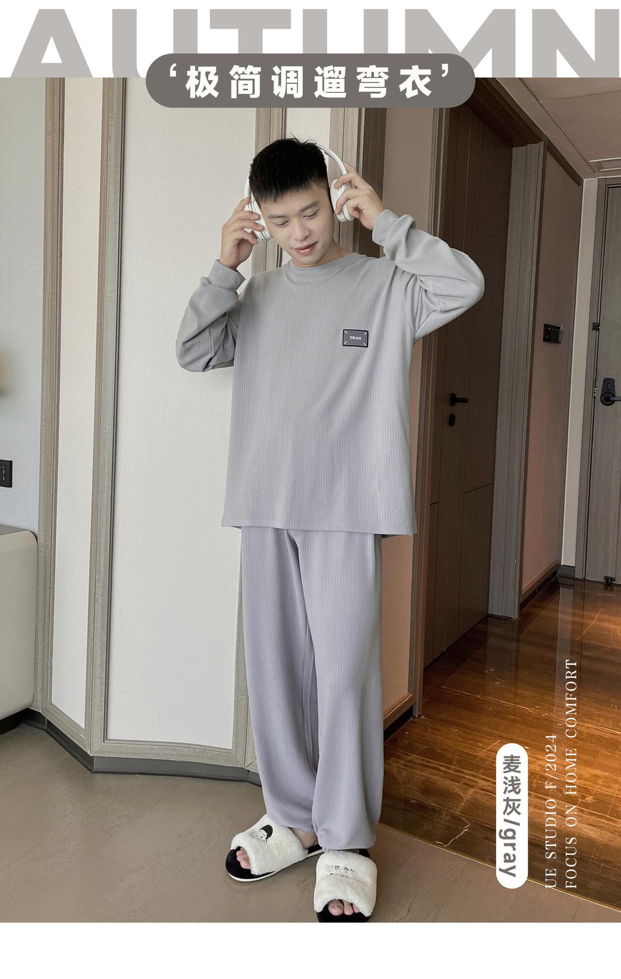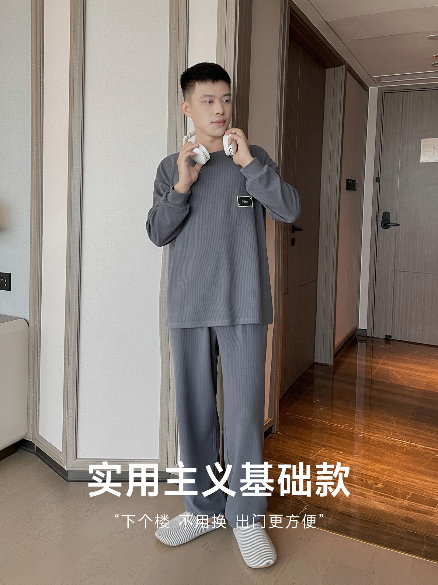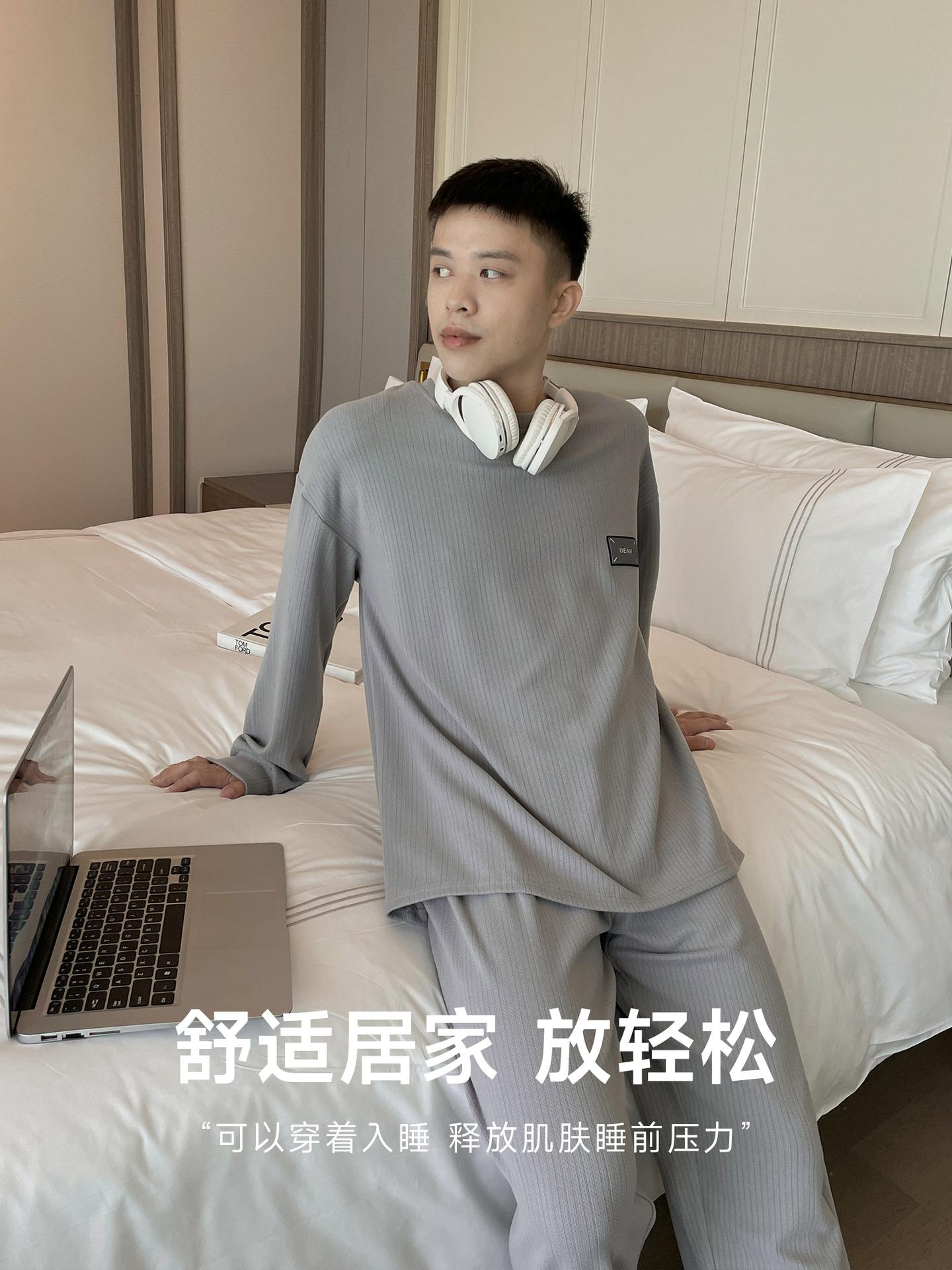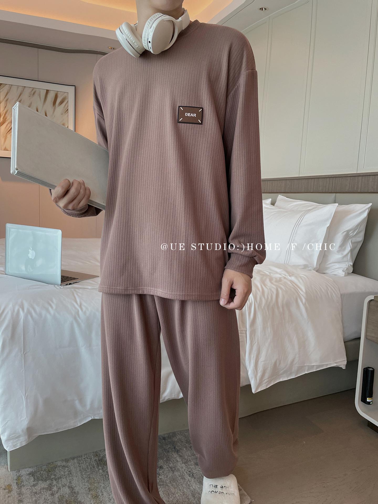 Pijamas nuevos de primavera y otoño para hombre, jersey de manga larga, holgados, casuales, sencillos y de alta gama, conjunto de dos piezas para estar en casa que se puede usar en el exterior