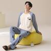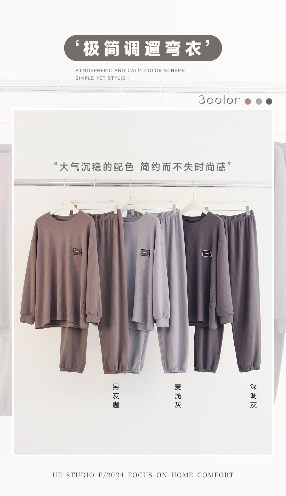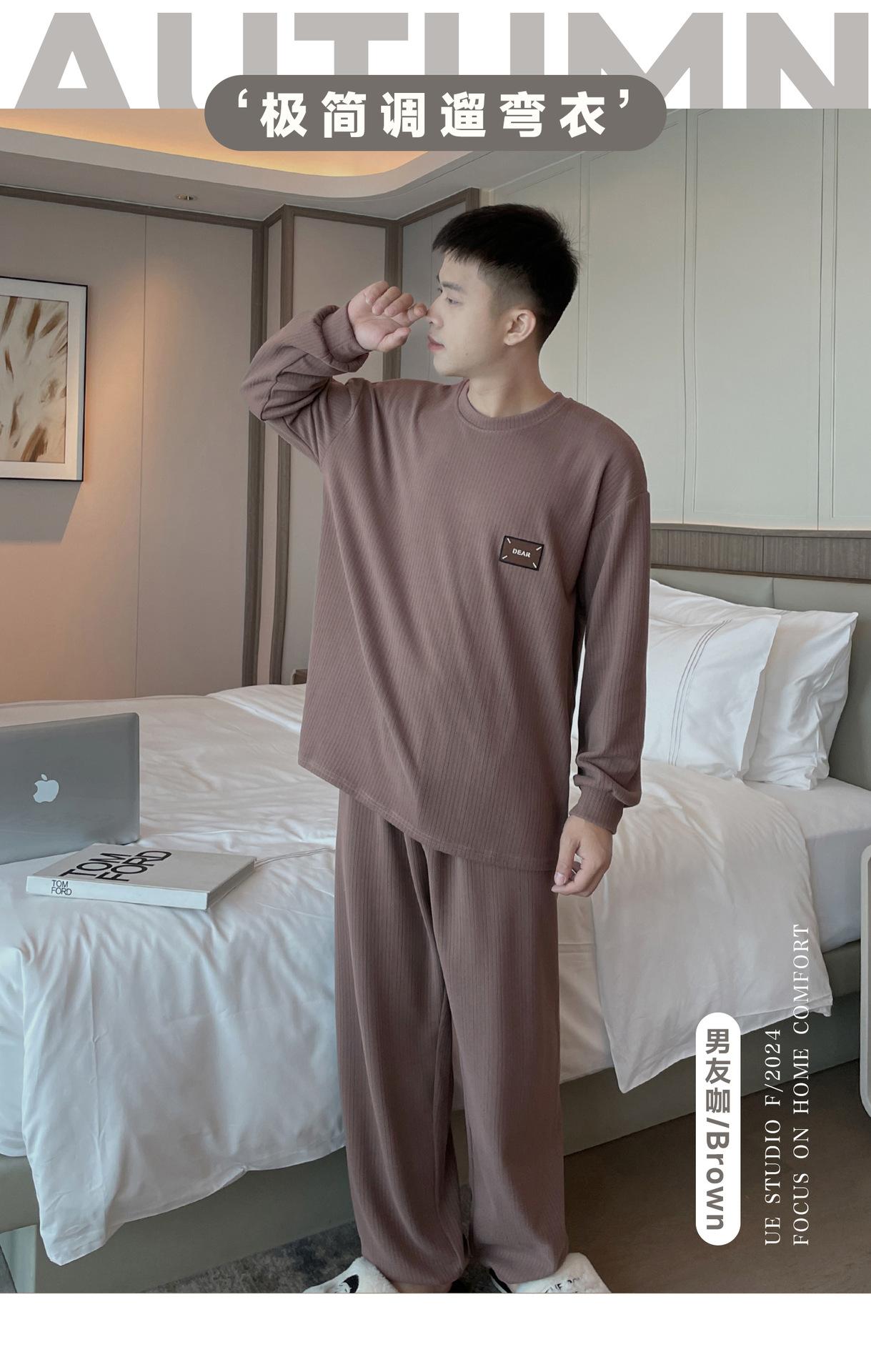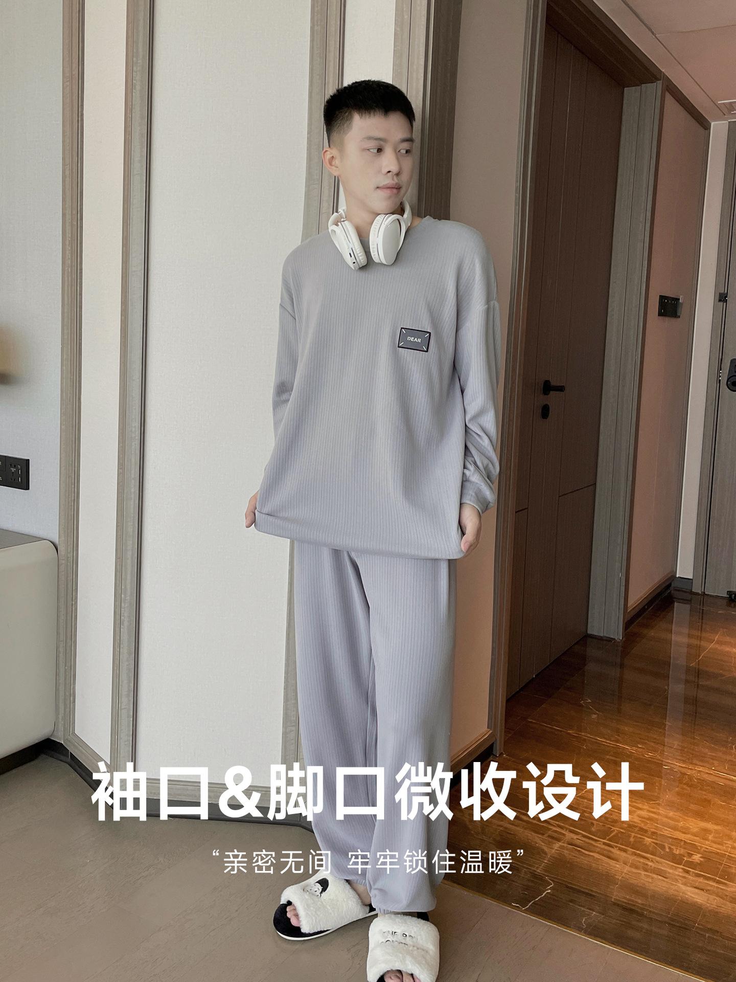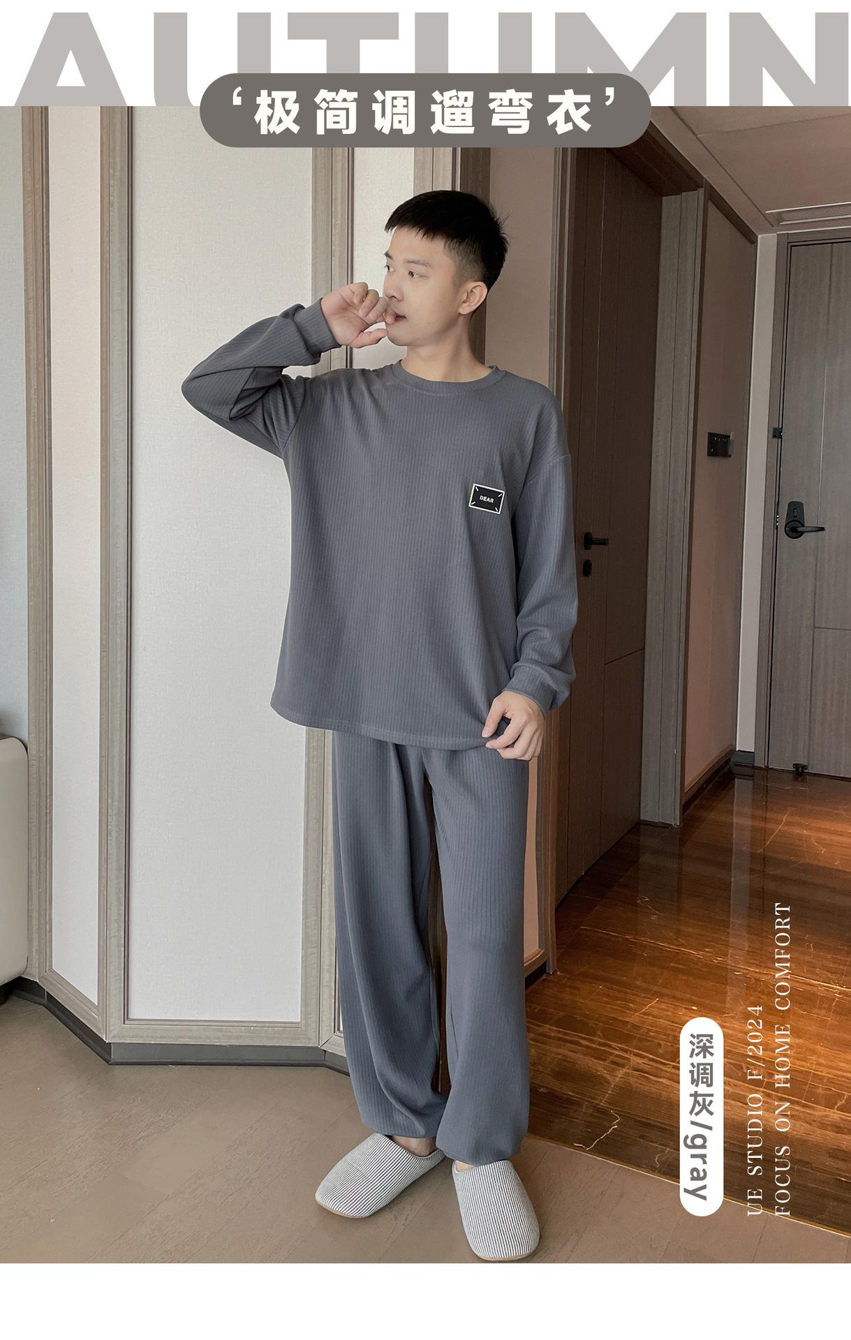 Pijamas nuevos de primavera y otoño para hombre, jersey de manga larga, holgados, casuales, sencillos y de alta gama, conjunto de dos piezas para estar en casa que se puede usar en el exterior