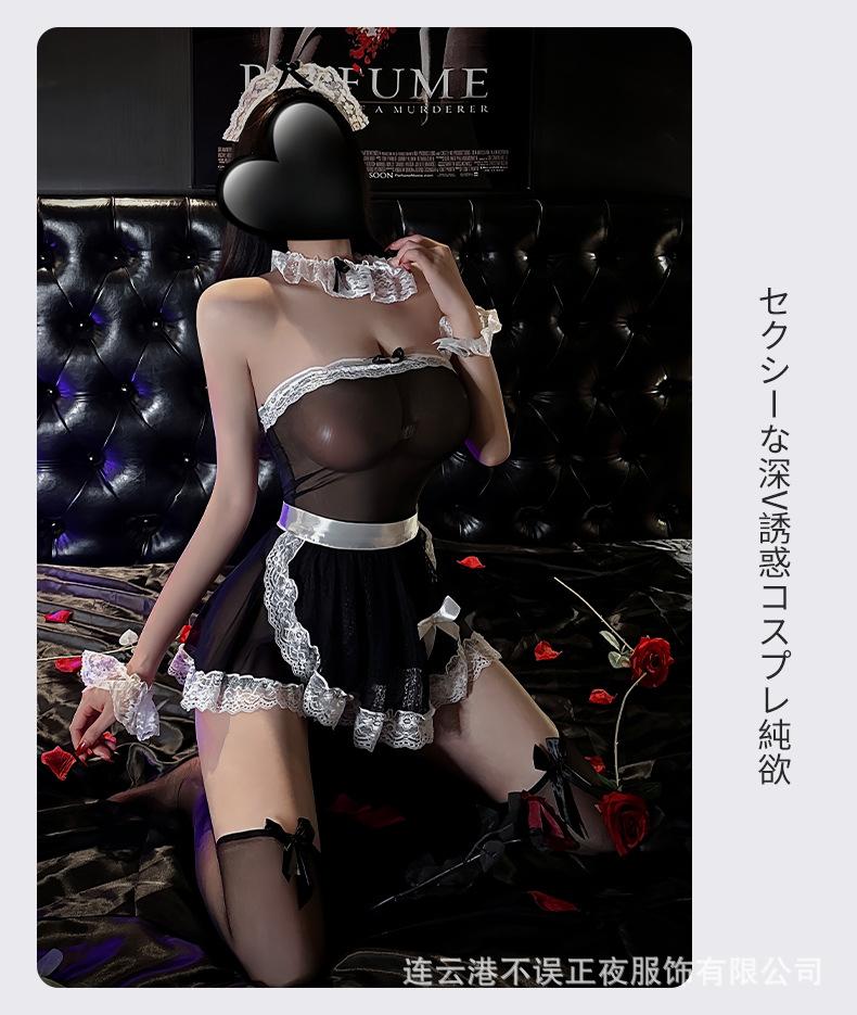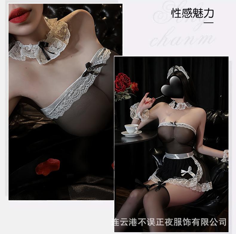 No Ropa Íntima Sexy Nocturna Accidental, Uniforme de Sirvienta Sexy Transparente, Traje de Sirvienta Puro Deseo, Pechos Pequeños Apasionados, No Hay Necesidad de Quitarse el Pijama