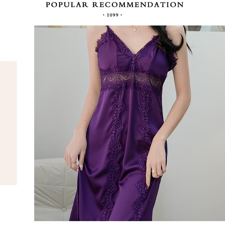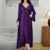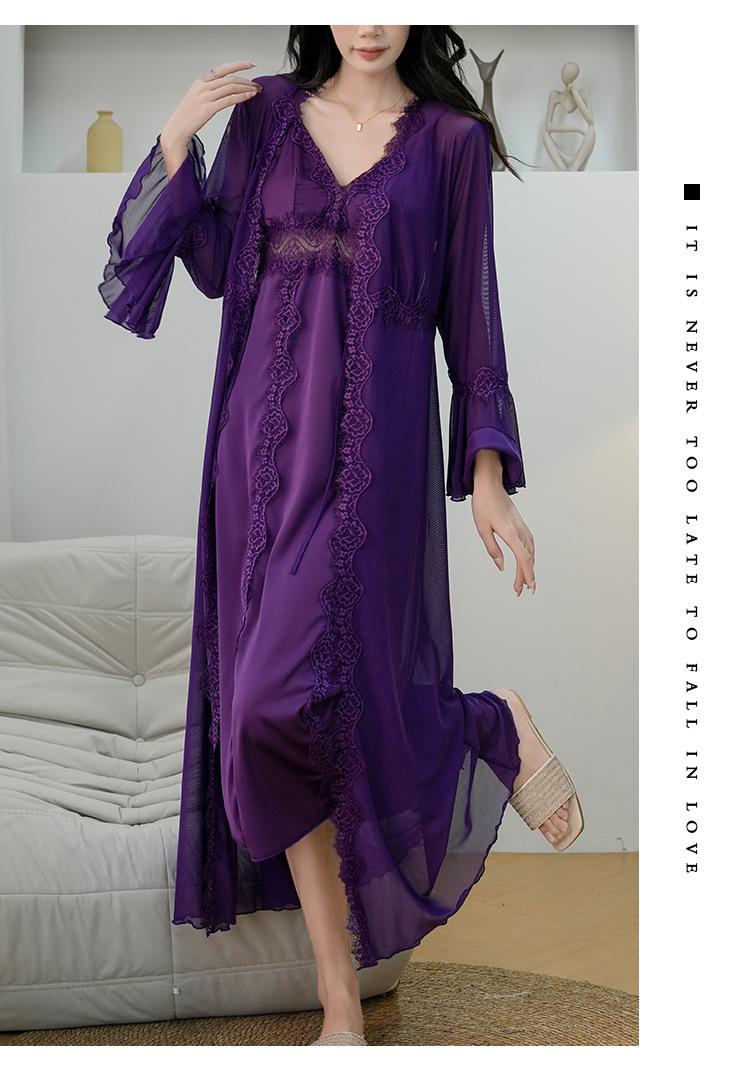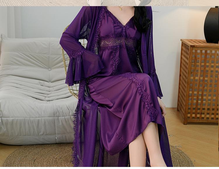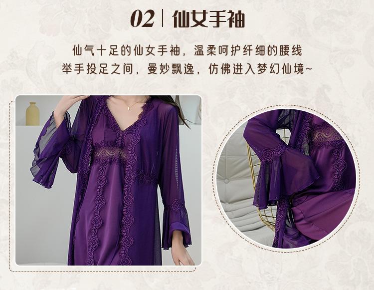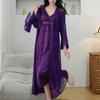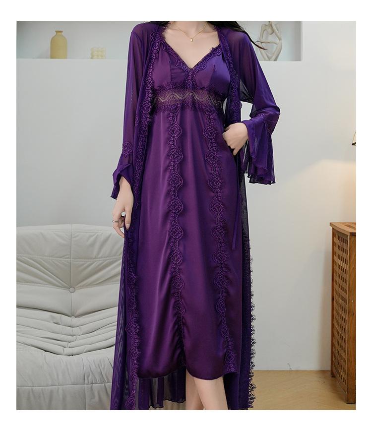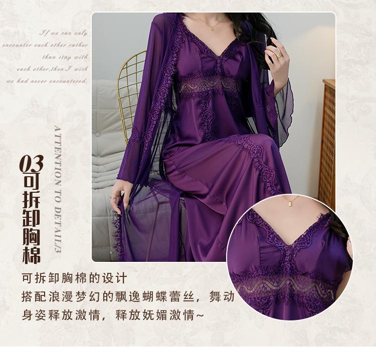 Pijama francés fino de primavera y otoño para mujer, de satén, con tirantes, hueco, sexy, con cinturón de viento puro, almohadilla para el pecho, ropa de casa de dos piezas
