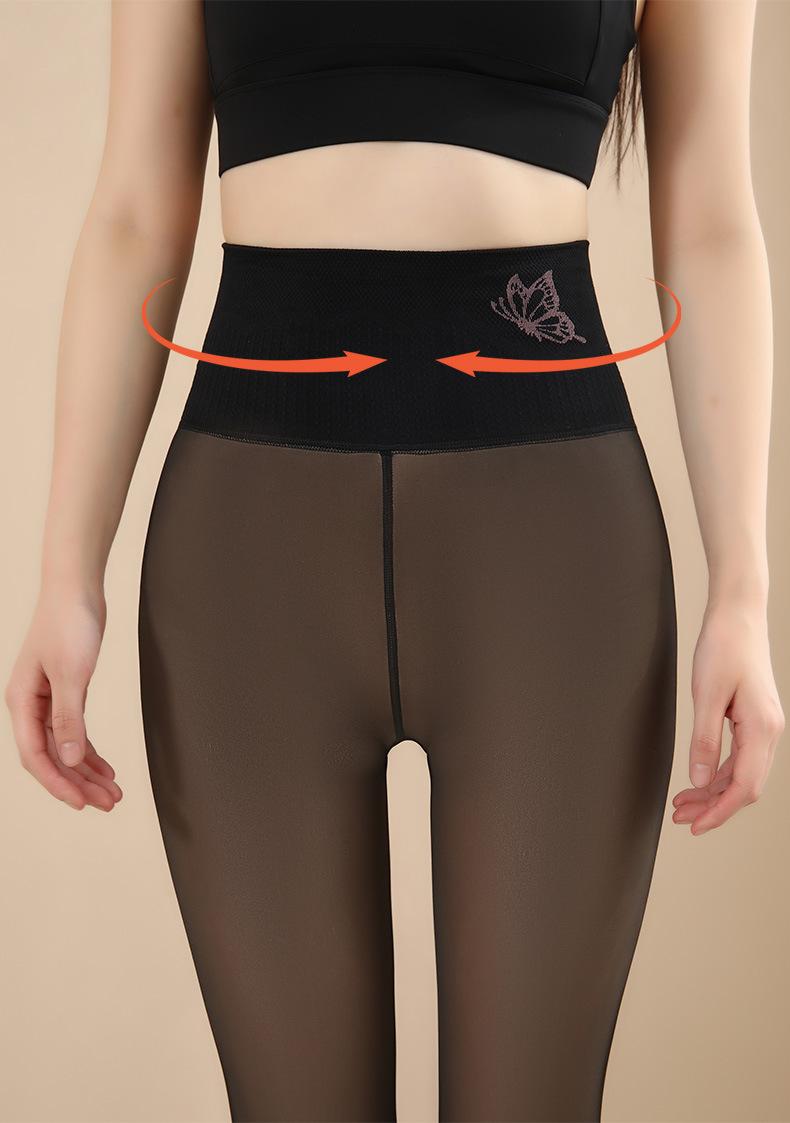 Calcetines transparentes de piel negra, ligeros, con efecto agua, para piernas ligeras, para invierno, de seda negra, con forro polar, gruesos, de cintura alta, para mujer, cálidos.