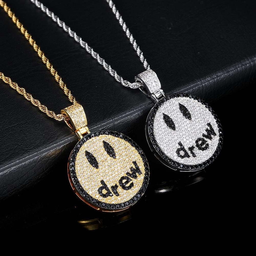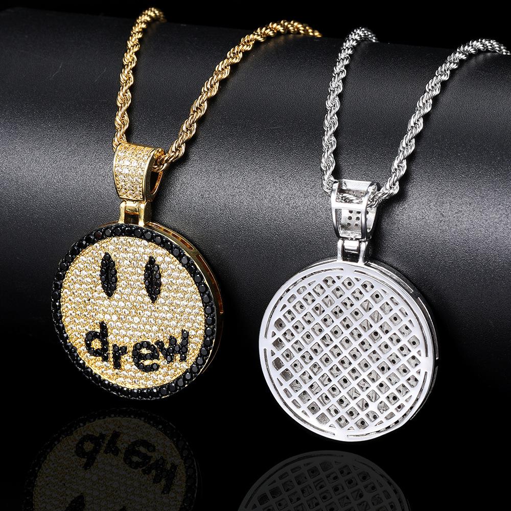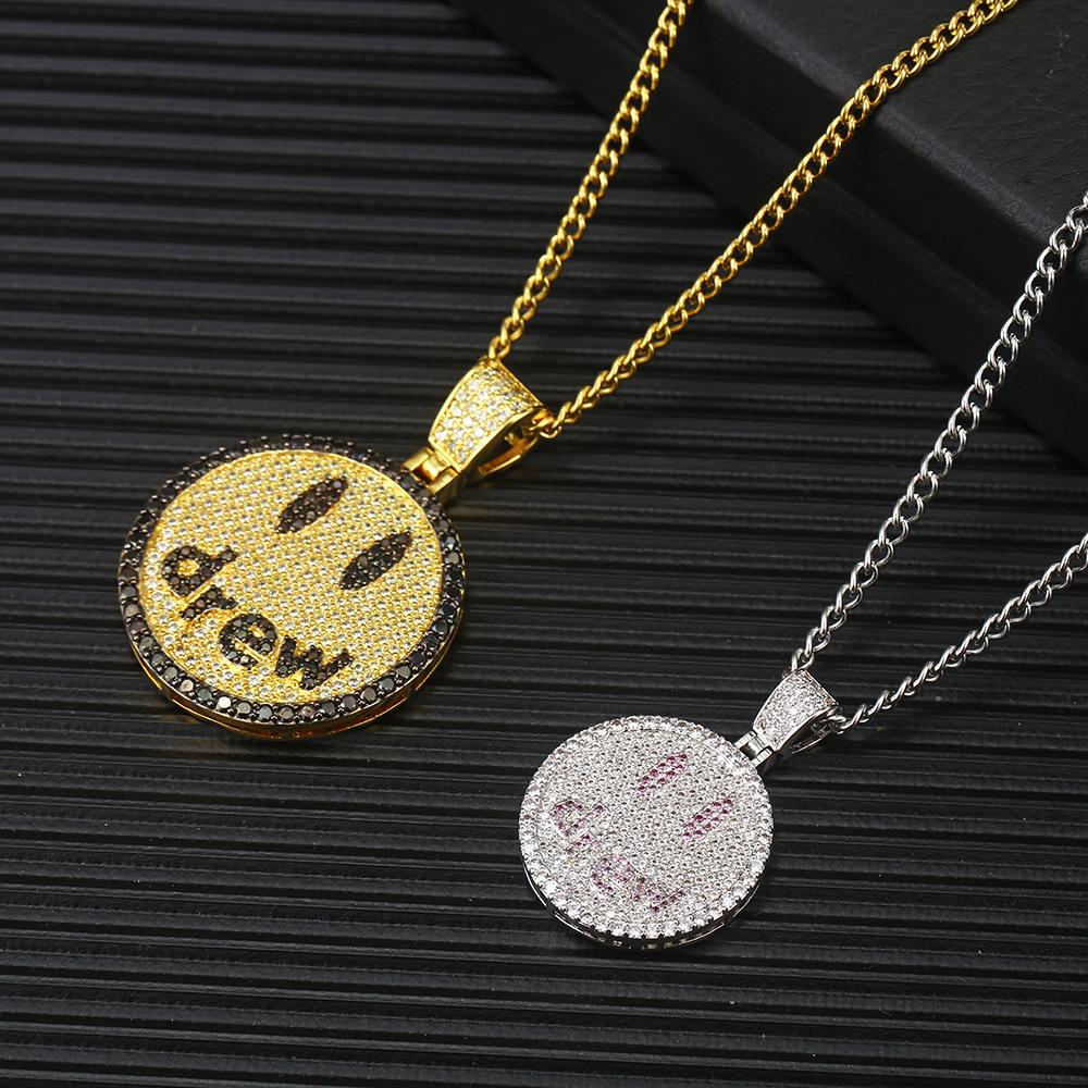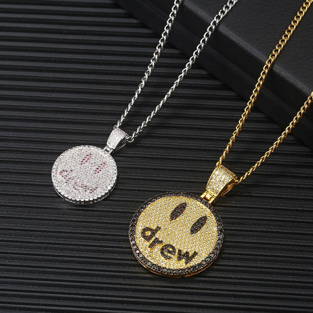 Colgante con cara sonriente de dibujo de hip-hop popular europeo y americano, joyería transfronteriza con micropavé de circón, marca de moda, collar con colgante para hombre al por mayor