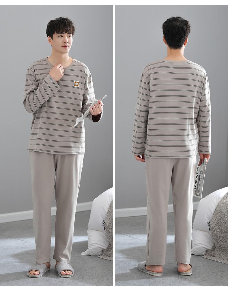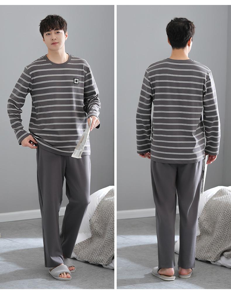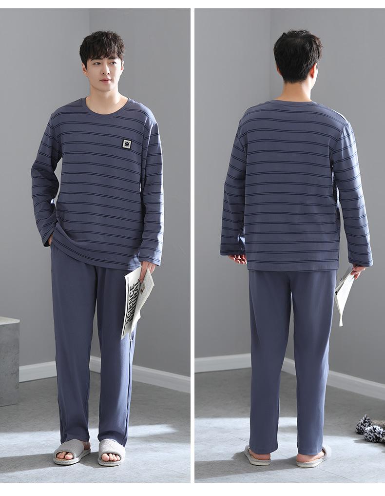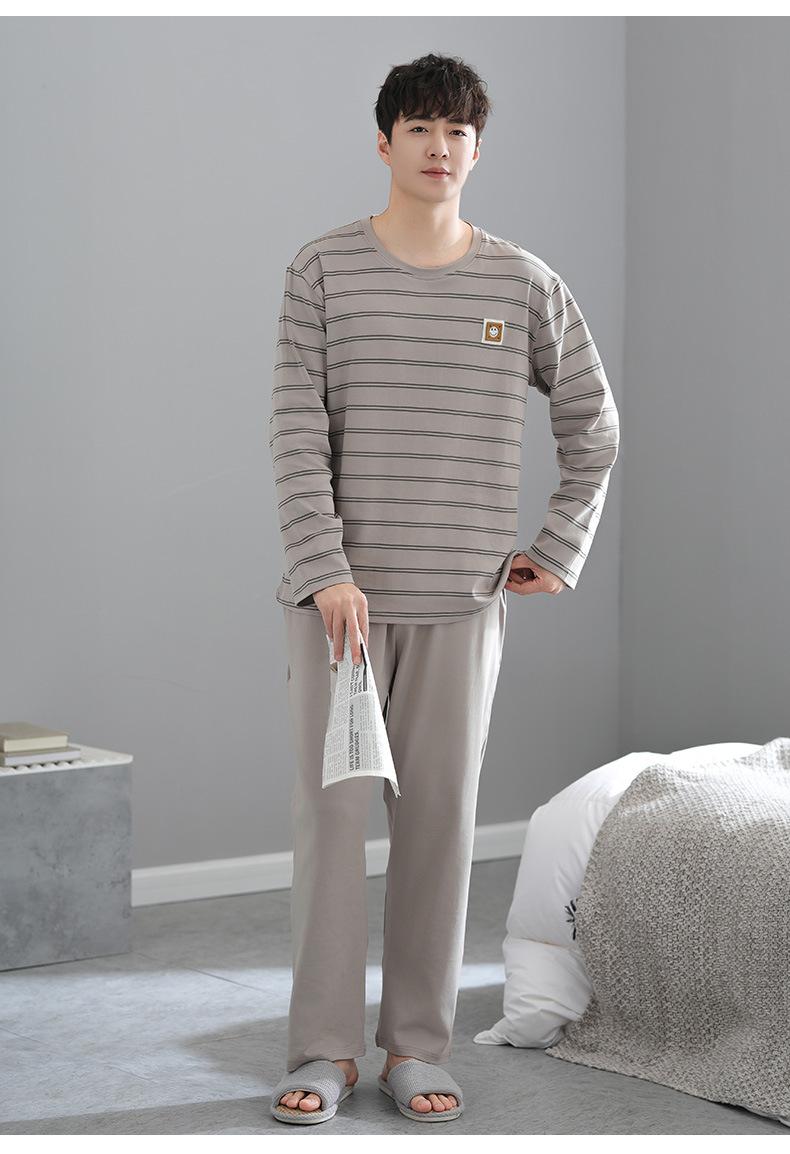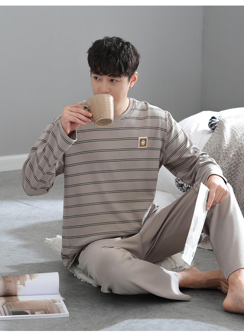 Pijama para Hombre Algodón Puro Manga Larga Primavera y Otoño Algodón Fino Seda Juvenil Otoño e Invierno Fertilizado Talla Extra Traje Ropa para el Hogar Hombre
