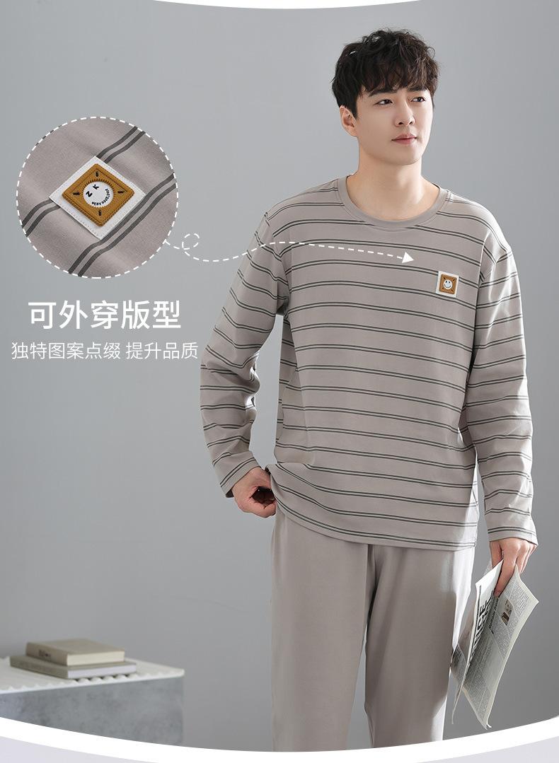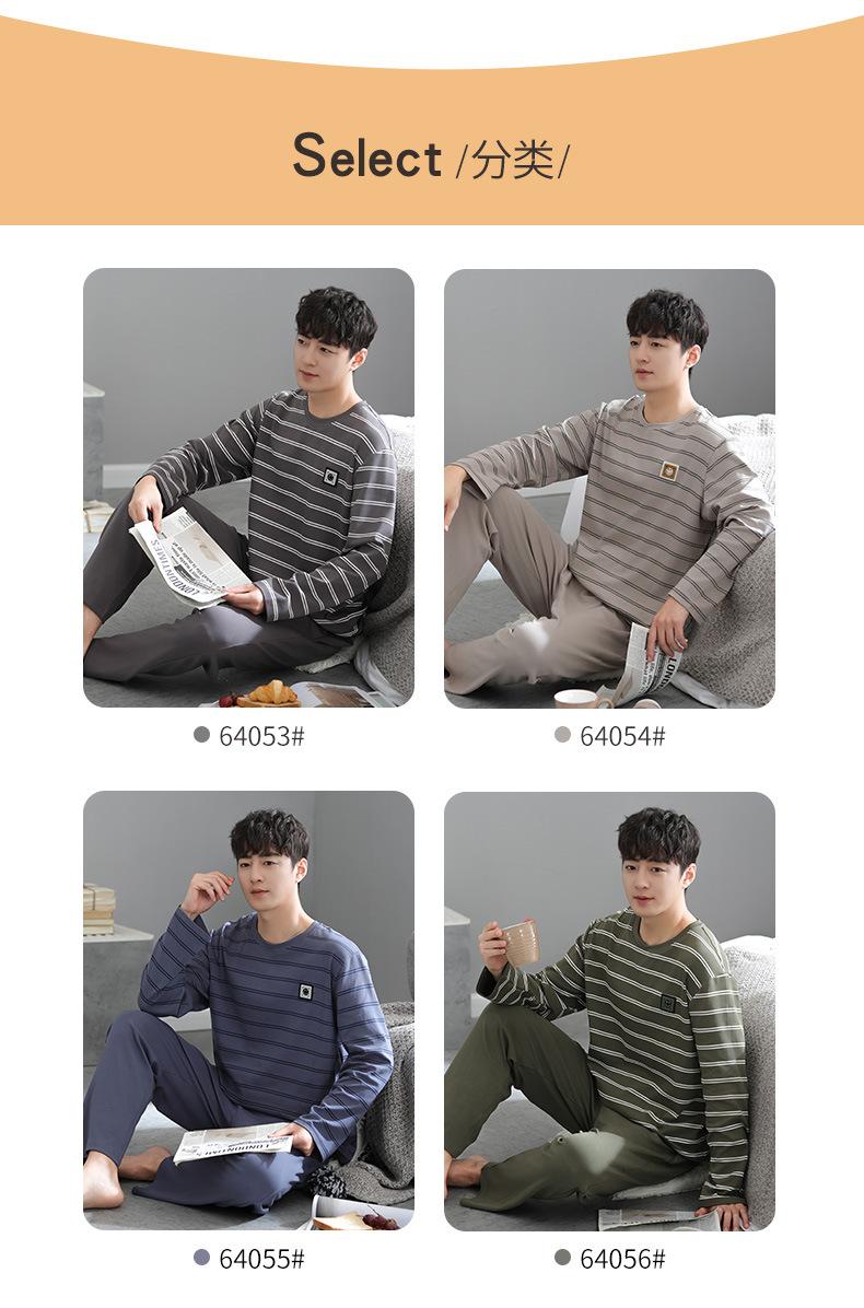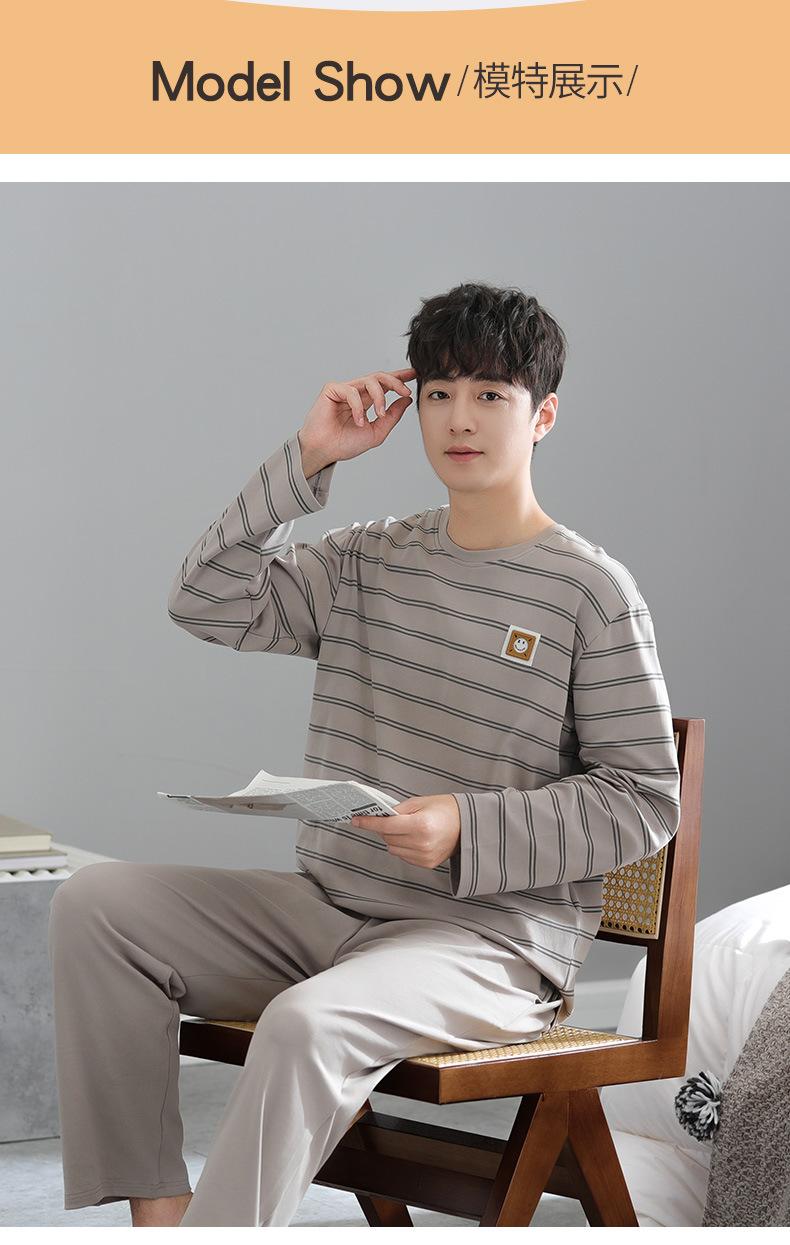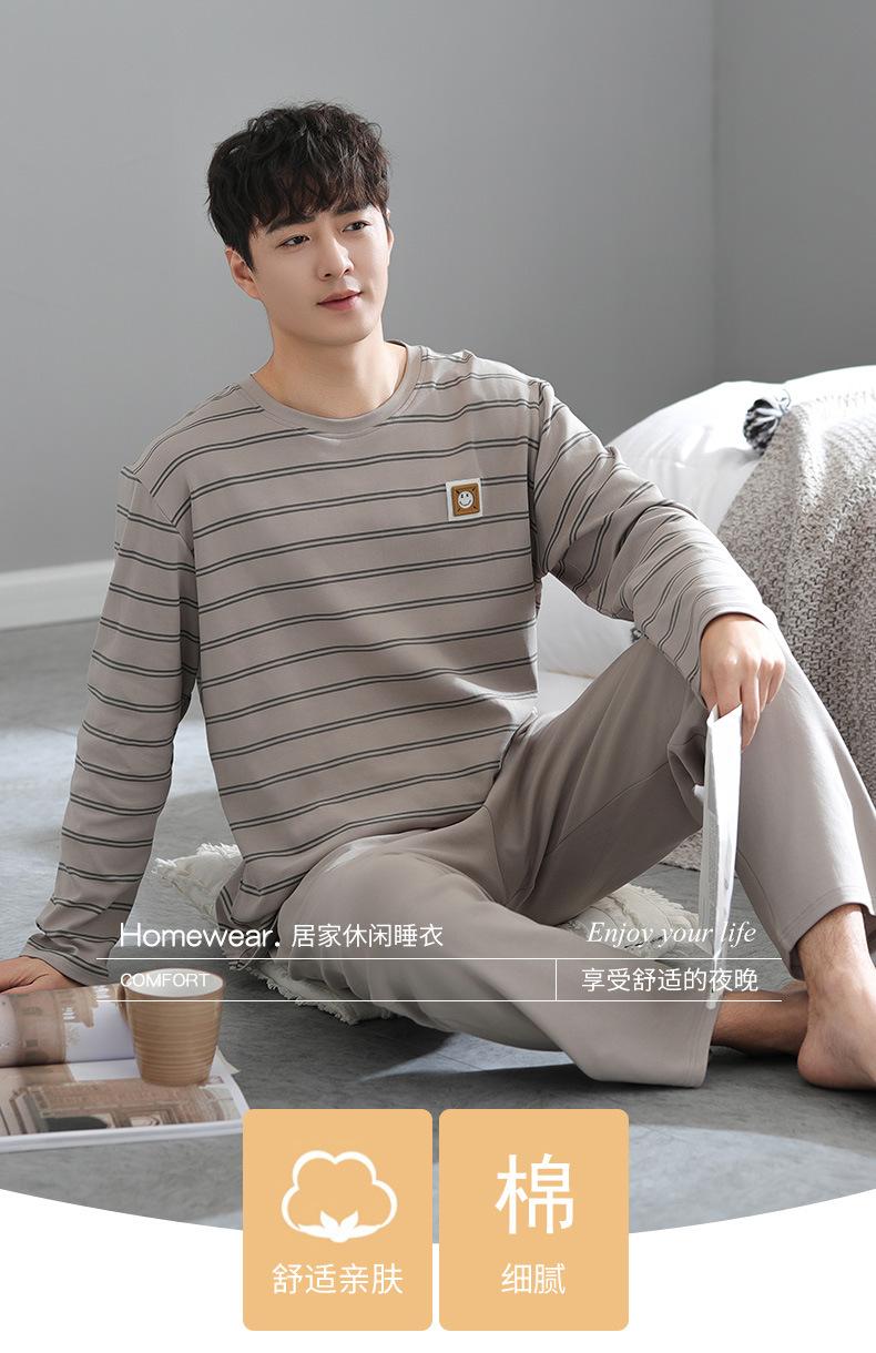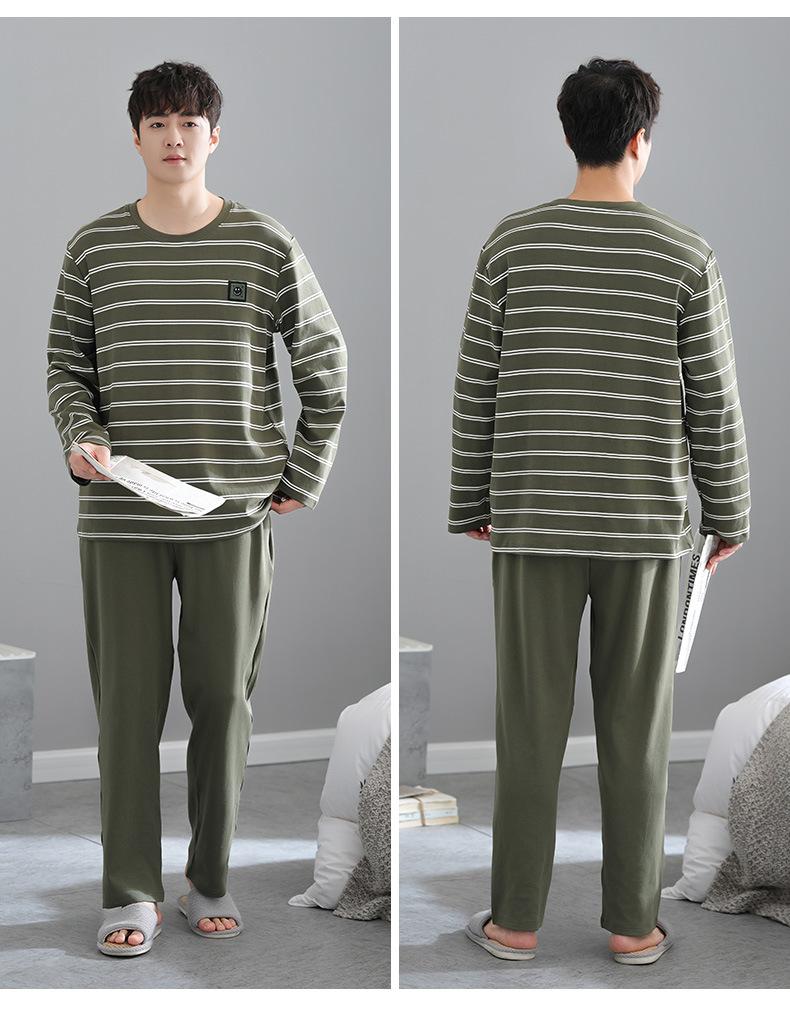 Pijama para Hombre Algodón Puro Manga Larga Primavera y Otoño Algodón Fino Seda Juvenil Otoño e Invierno Fertilizado Talla Extra Traje Ropa para el Hogar Hombre