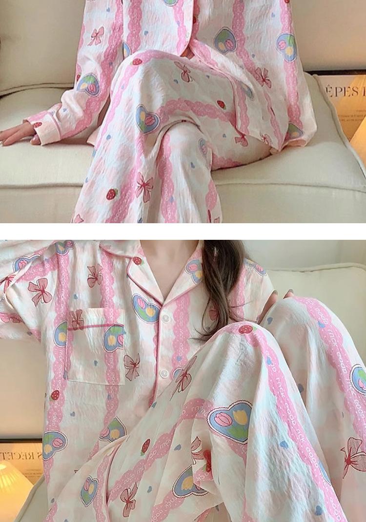 Pijama de algodón con diseño de nubes para mujer, estilo dulce niña, otoño, nuevo, a rayas, ropa para el hogar, traje real, venta al por mayor