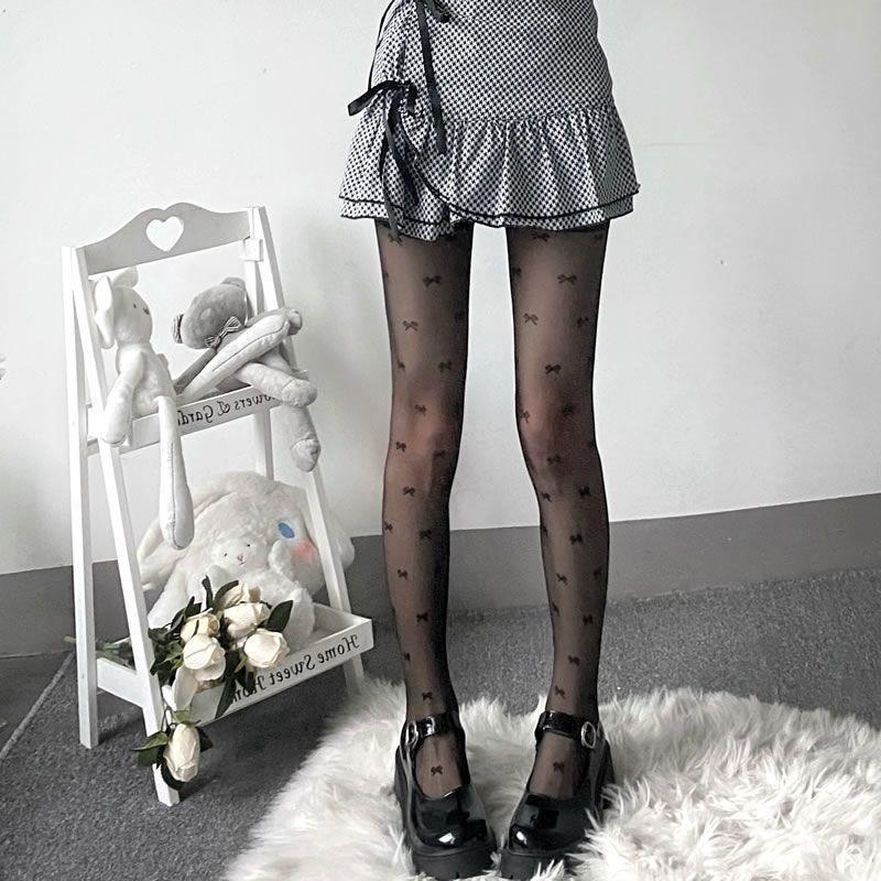 Moño Seda Negra JK Seda Blanca Medias Finas Dulces de Primavera y Verano para Mujer Estampado Jacquard Mariposa