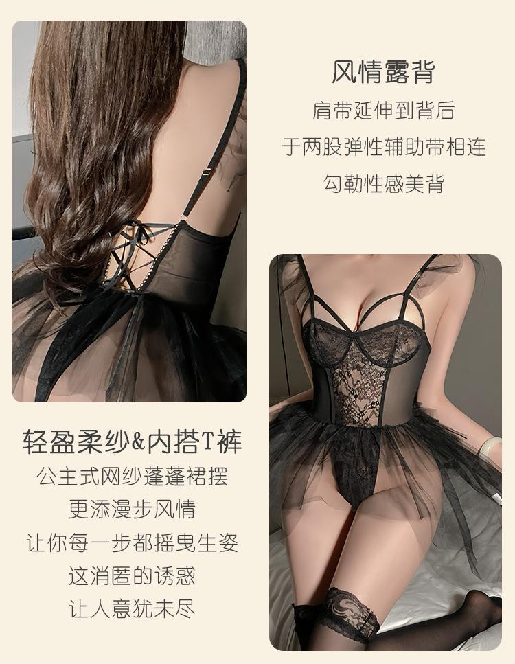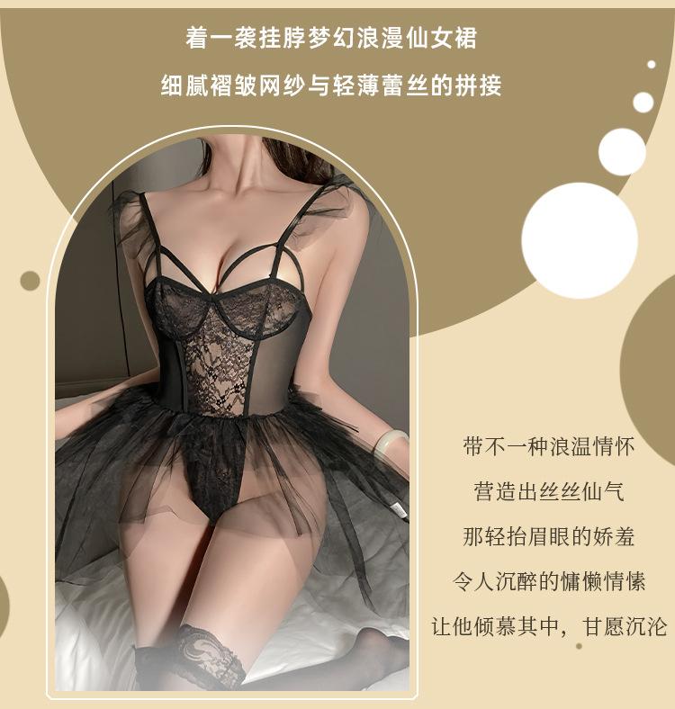 Lencería sexy camisón sexy uniforme tentación pijama pequeño pecho encaje malla tentación mono abierto