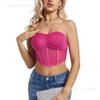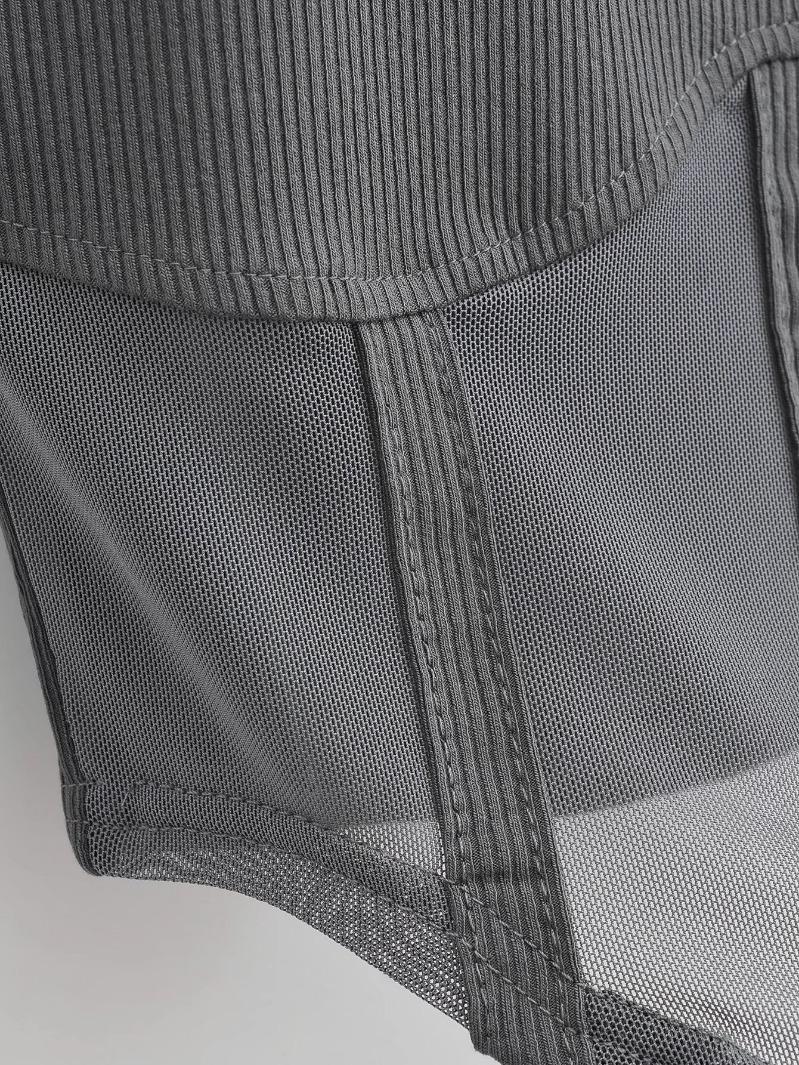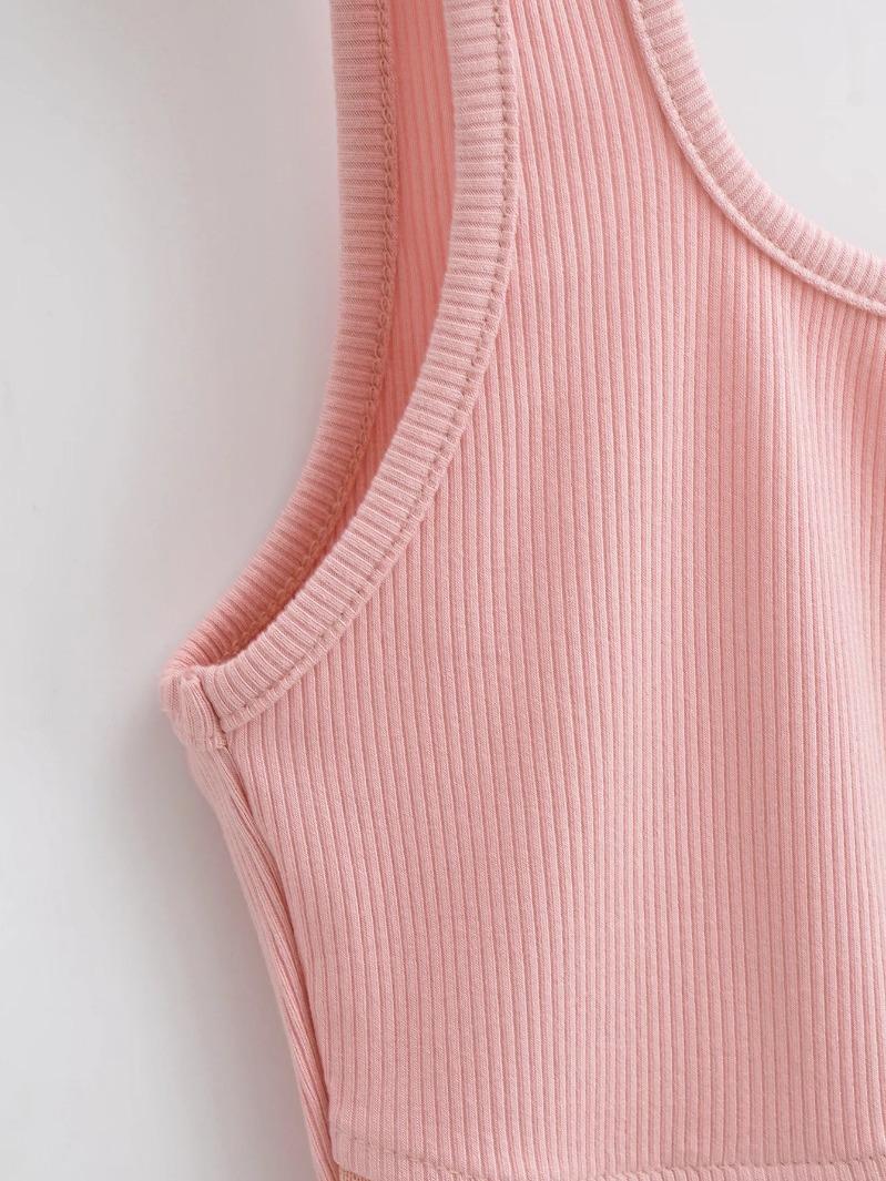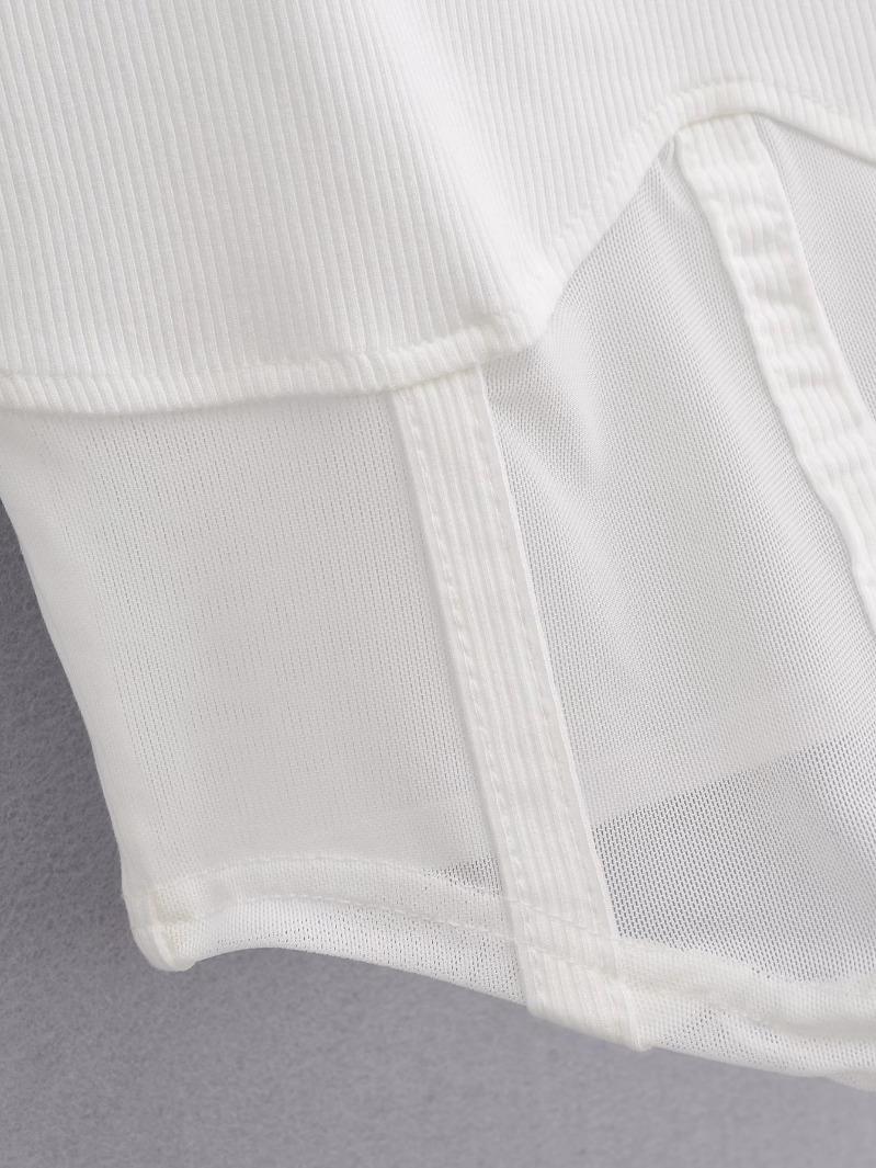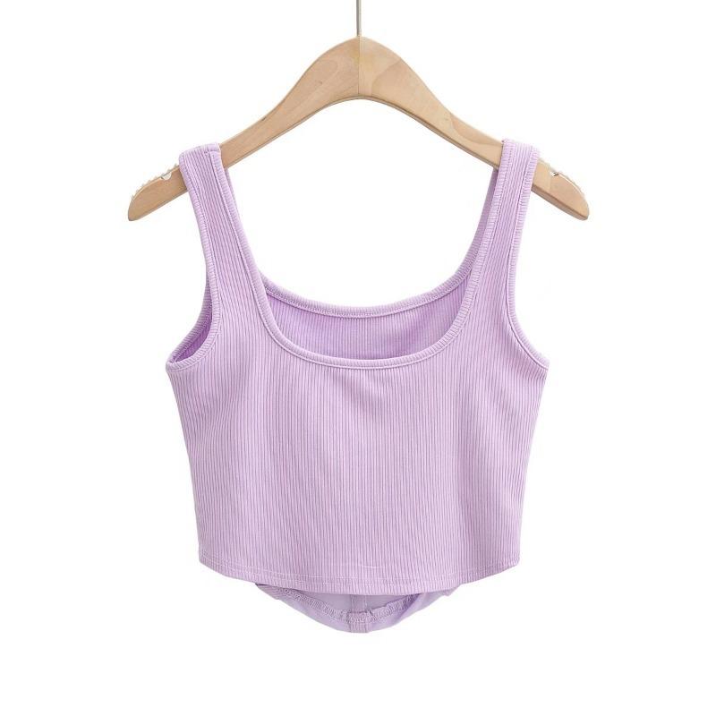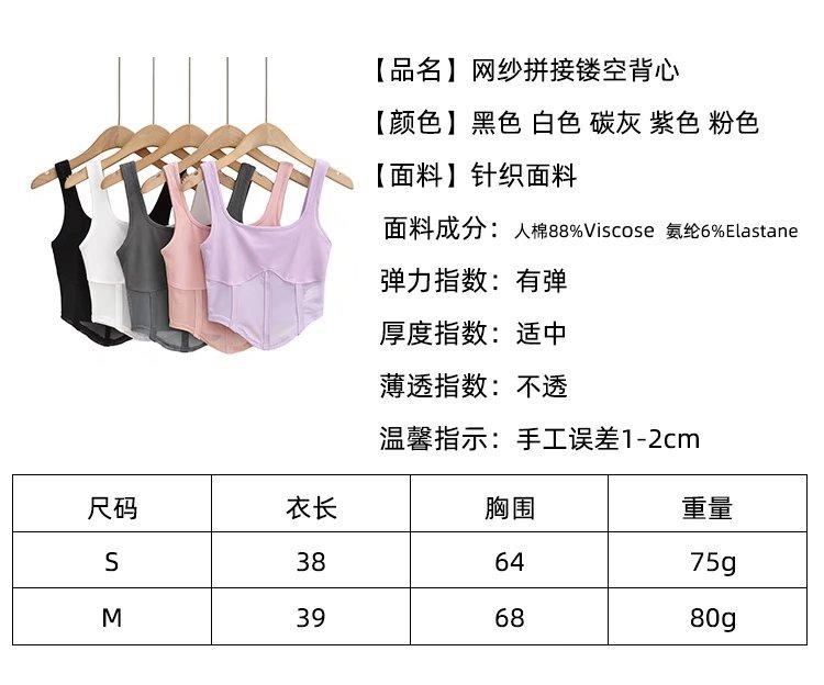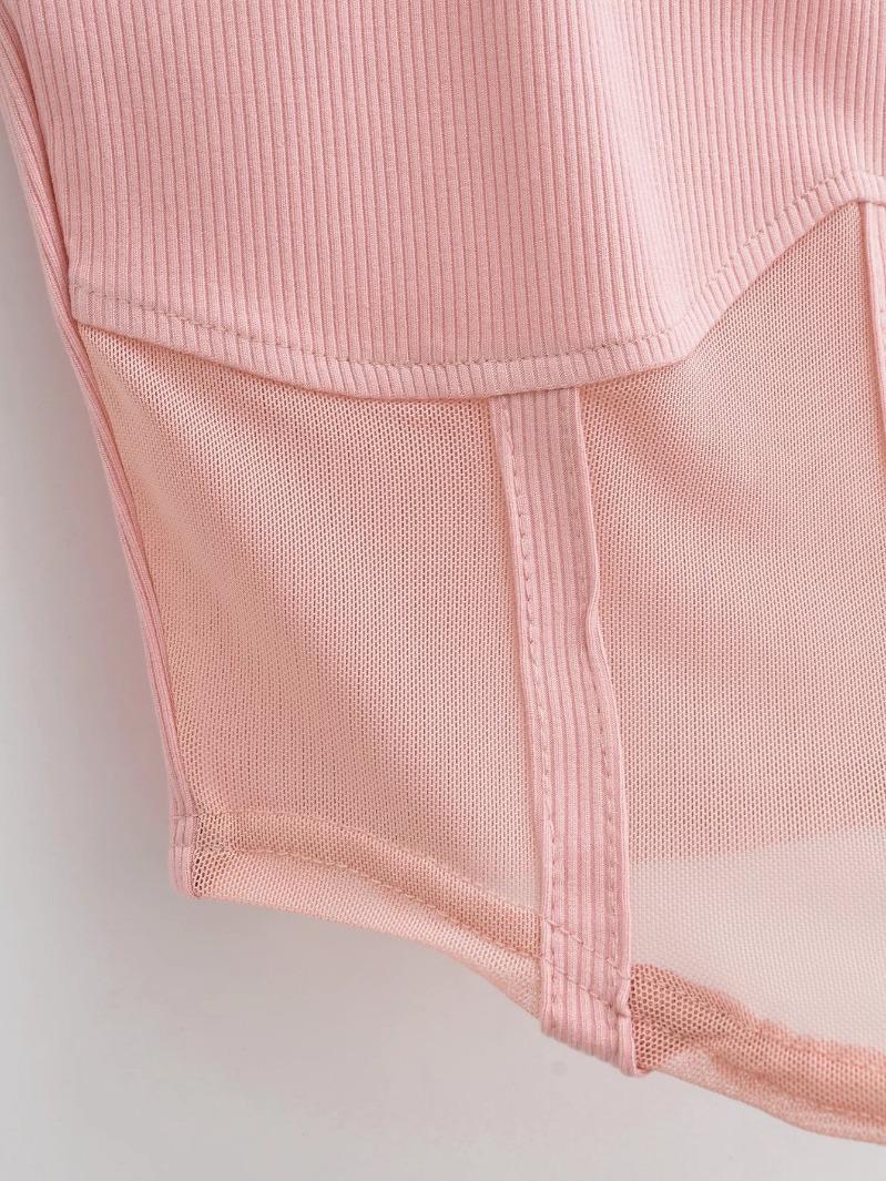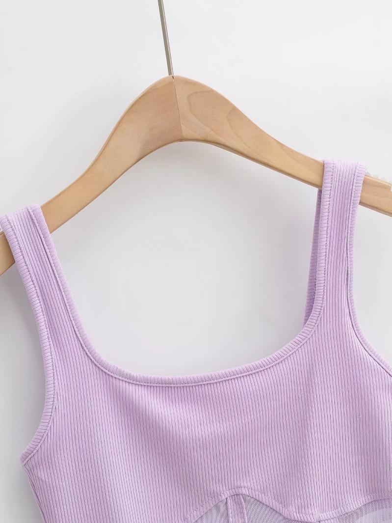 Estilo europeo y americano para mujer, chaleco de malla con costuras de espiguilla, nuevo top corto curvo de tirantes con cuello cuadrado grande y color sólido