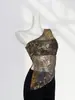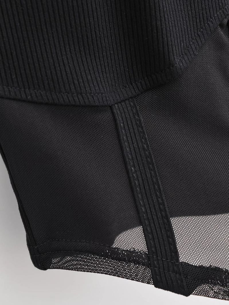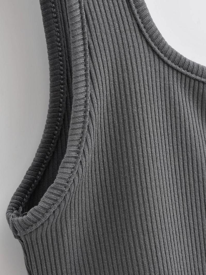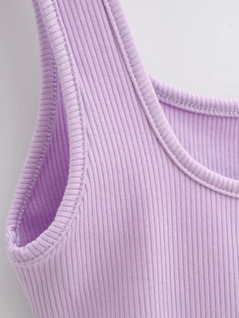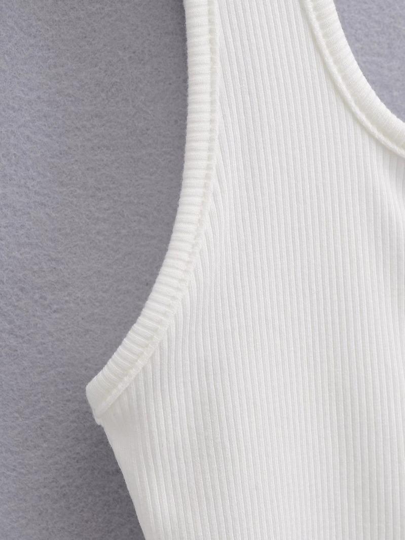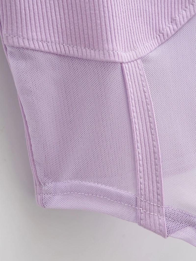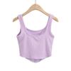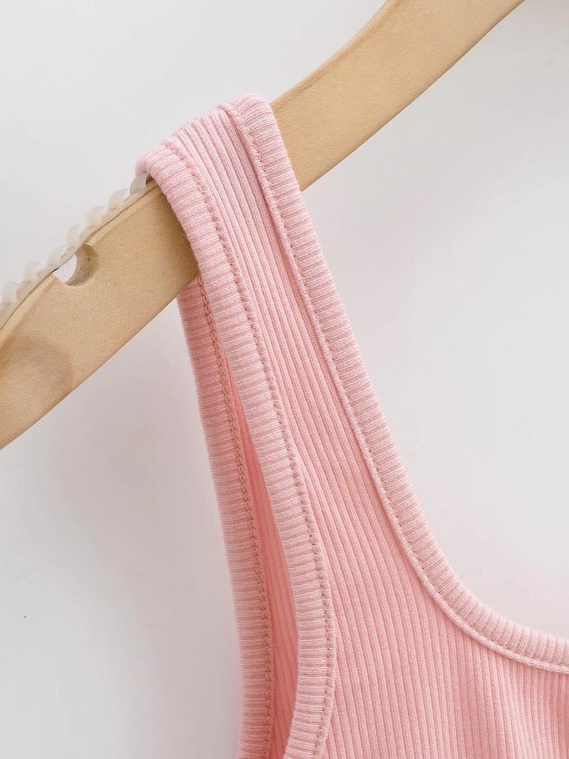 Estilo europeo y americano para mujer, chaleco de malla con costuras de espiguilla, nuevo top corto curvo de tirantes con cuello cuadrado grande y color sólido