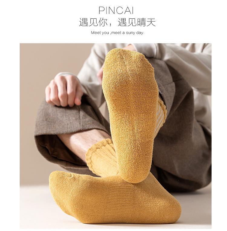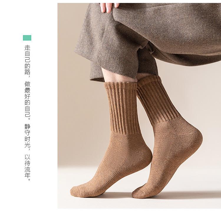 Compra Calcetines para hombre otoño e invierno color sólido algodón hilo grueso rizo cálido grueso toalla fondo tubo desodorante absorbente de sudor deportivos largos al por mayor en Joom.pro
