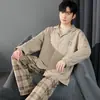 Pijamas de hombre de primavera y otoño de algodón fino de manga larga cárdigan informal de oso ropa de abrigo ropa de casa traje de talla grande