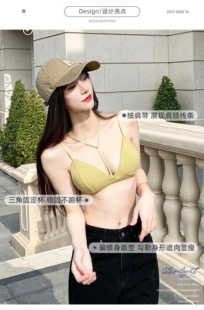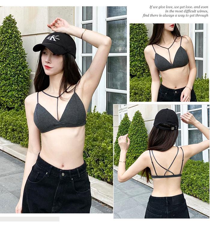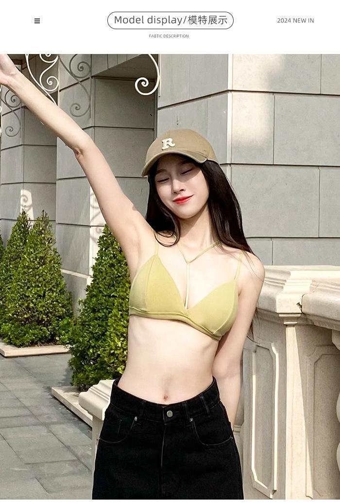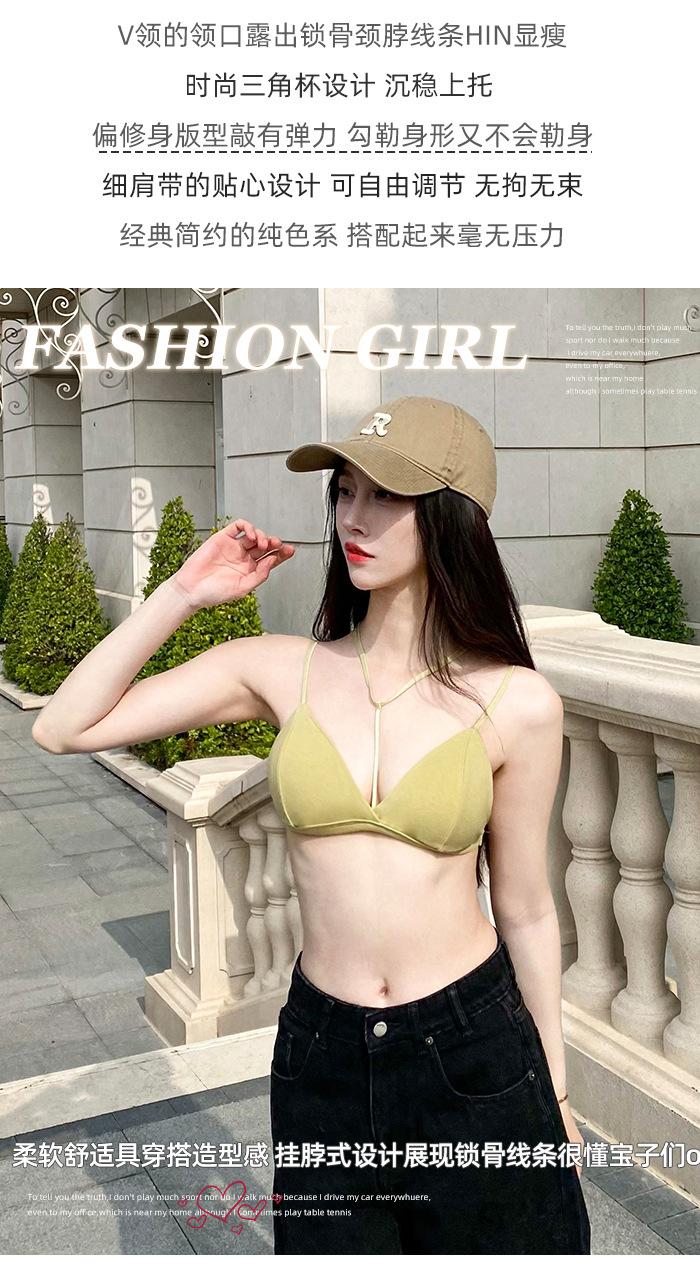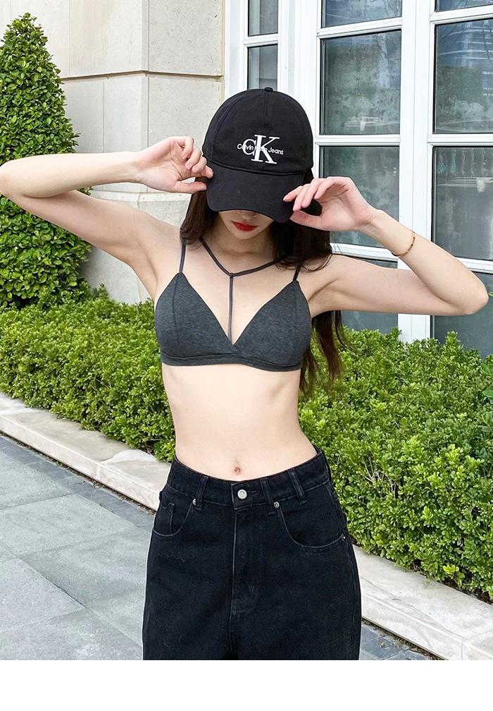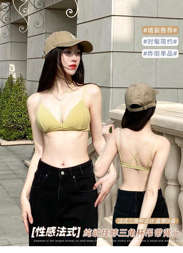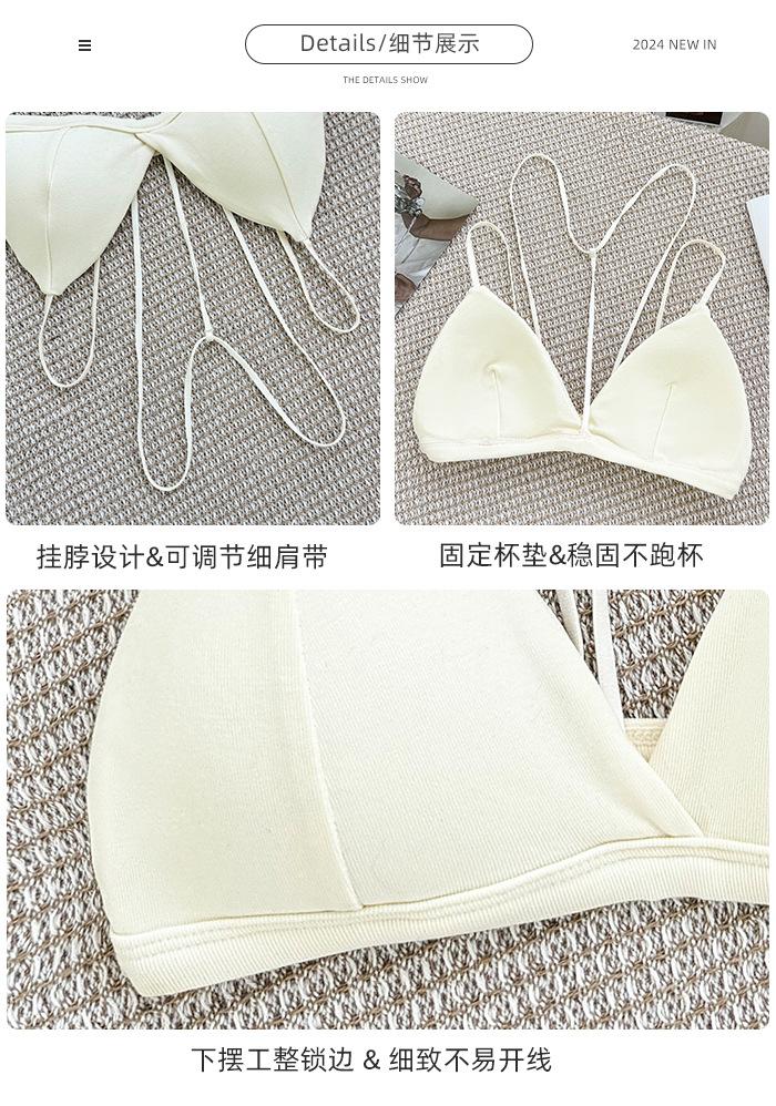 Explosiones transfronterizas Estilo francés Sujetador colgante de cuello sin aro de acero Copa triangular Fino Sexy Recopilación Ropa interior para mujer