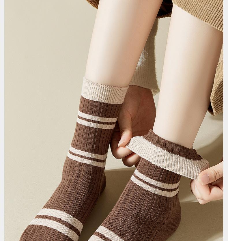 Calcetines Maillard para mujer, de primavera y otoño, de longitud media, de moda en Internet, populares calcetines apilables, calcetines de algodón para mujer, medias marrones de otoño e invierno.