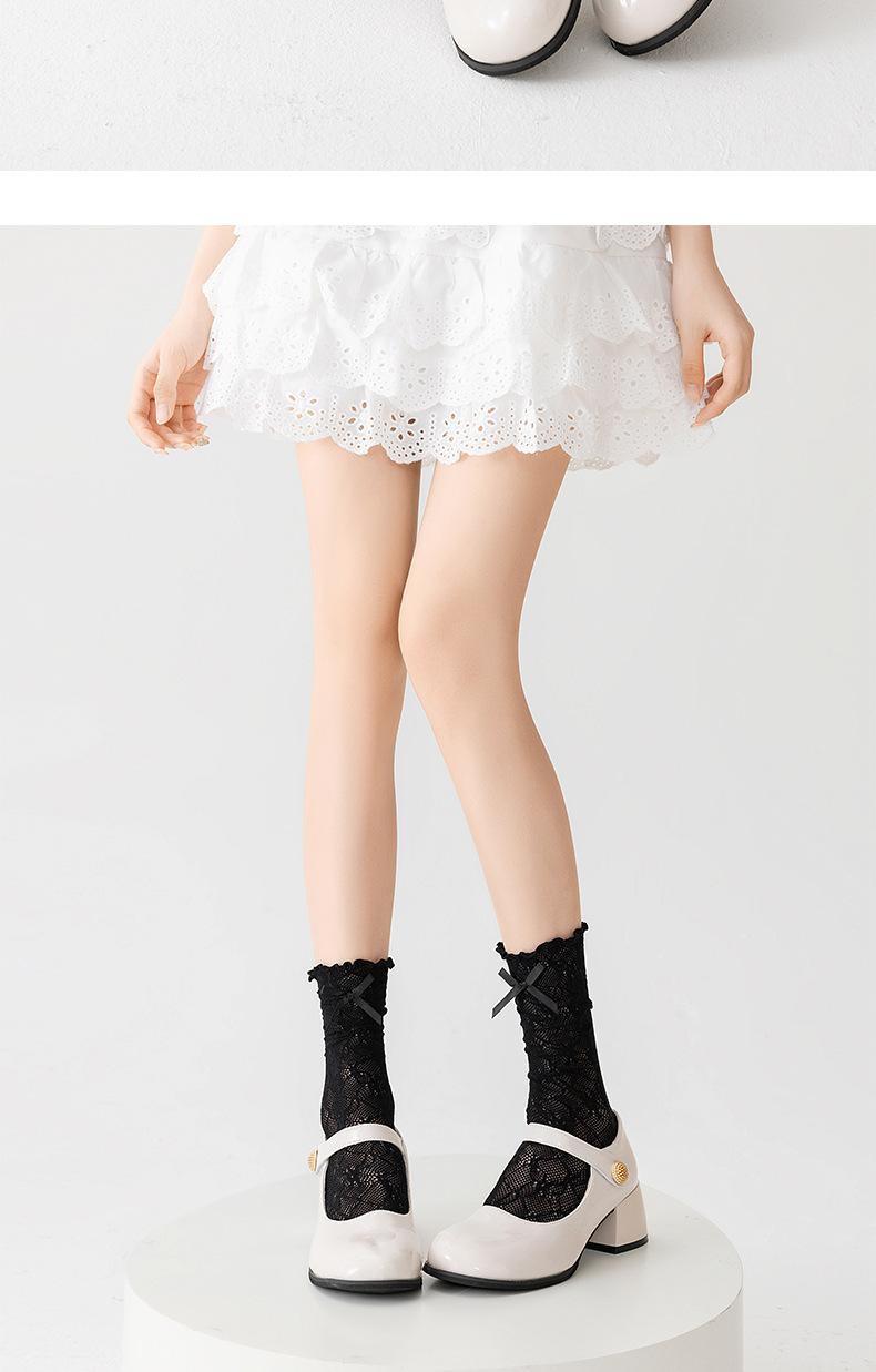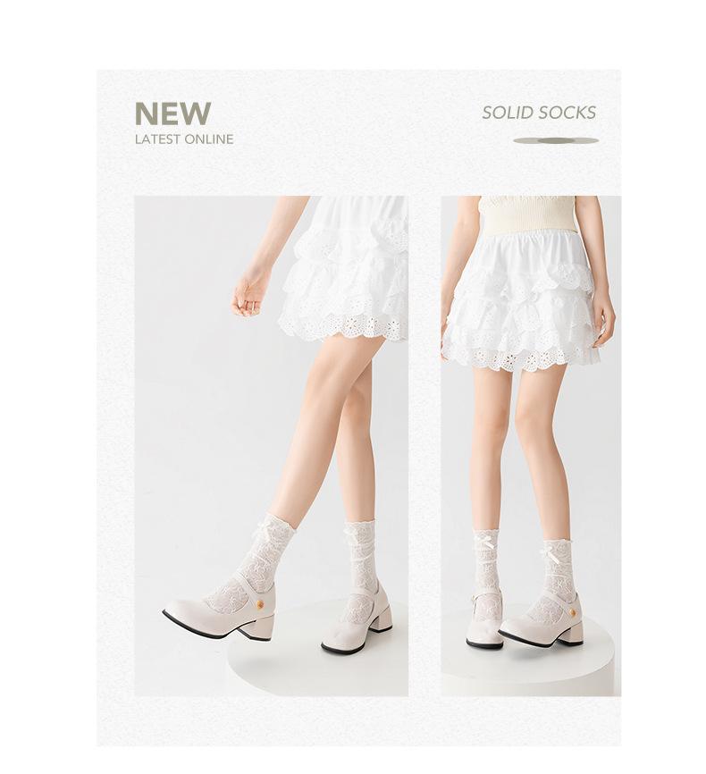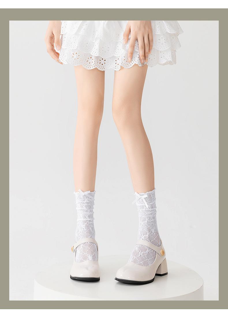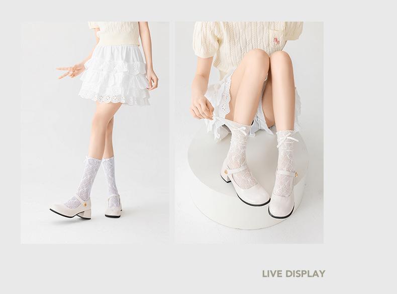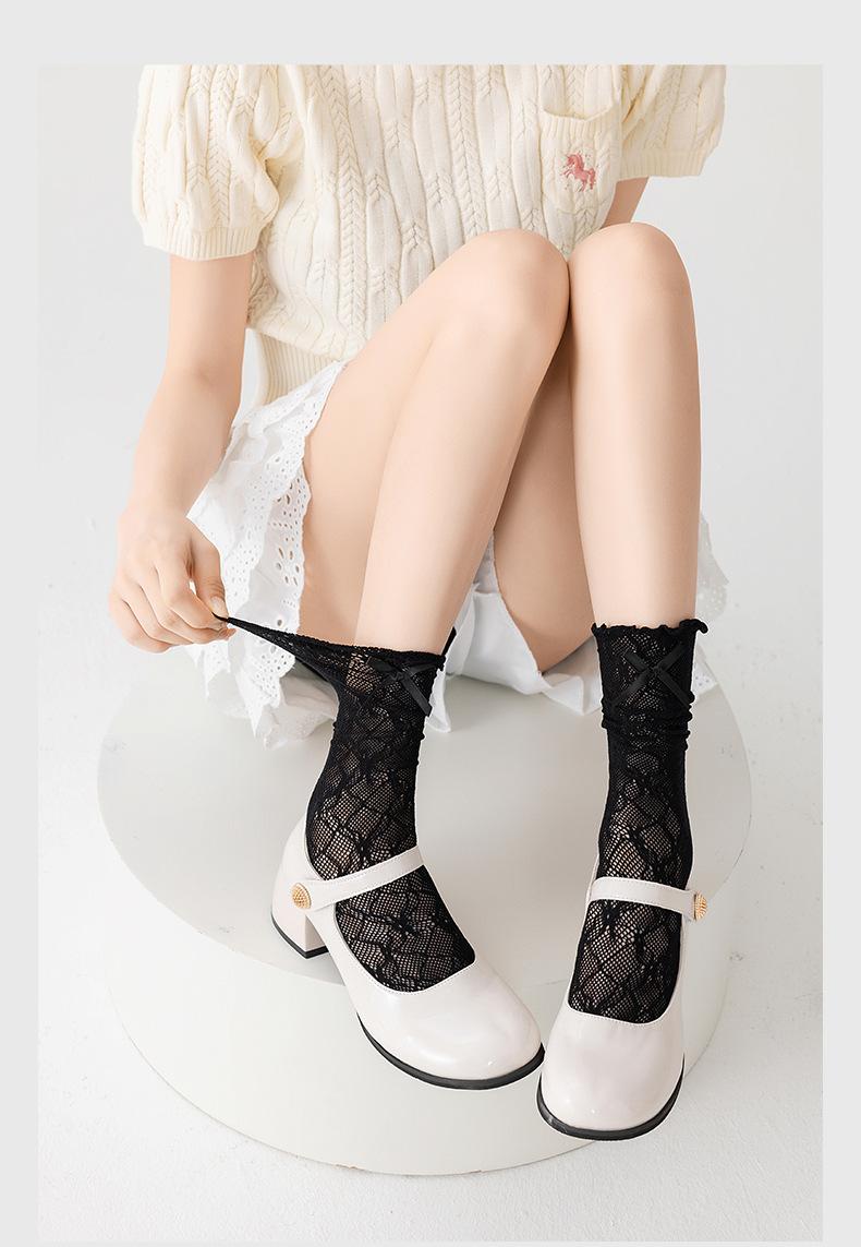 Calcetines con lazo calcetines de tubo para mujer calcetines japoneses lindos para mujer encaje con zapatos Mary Jane calcetines huecos transpirables