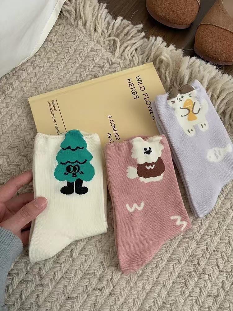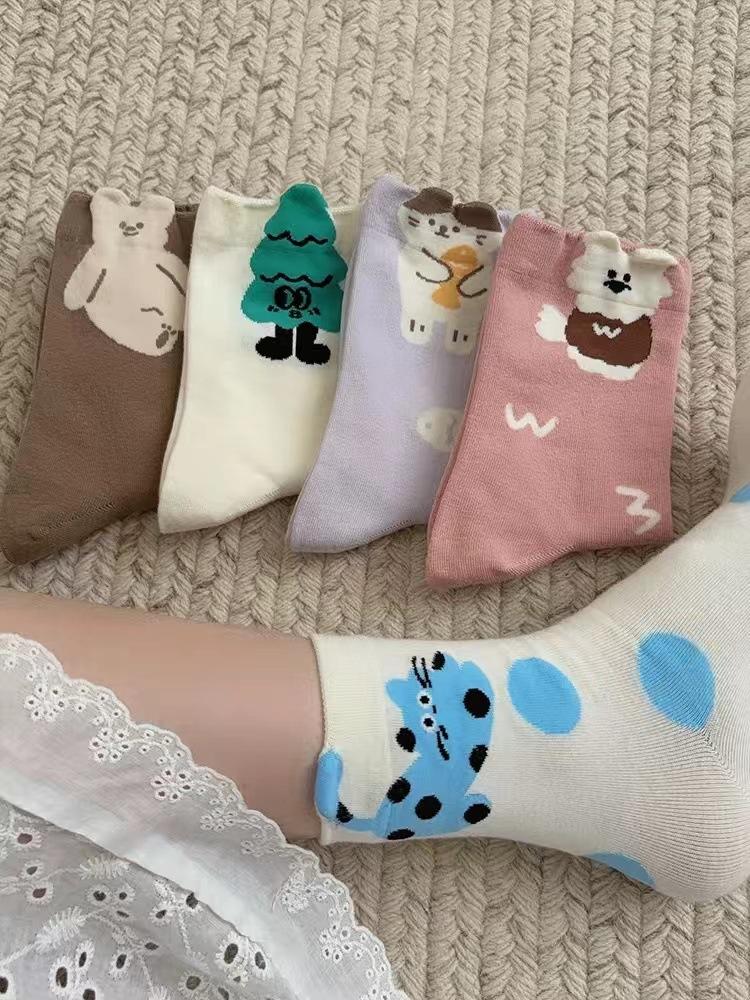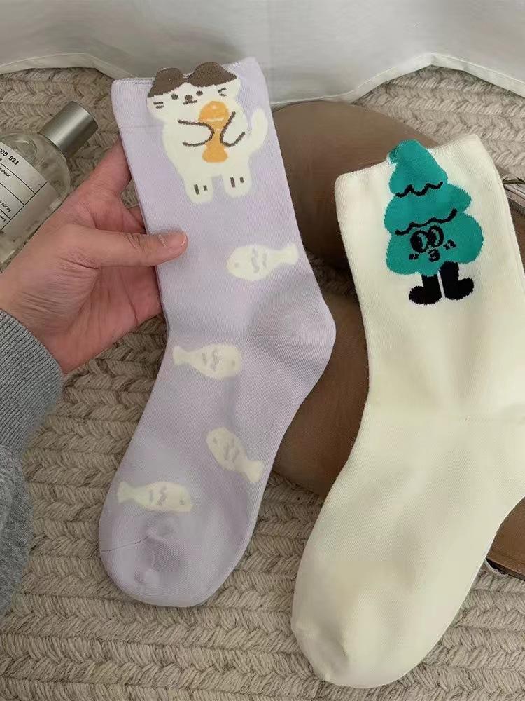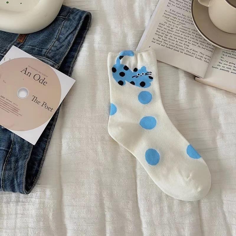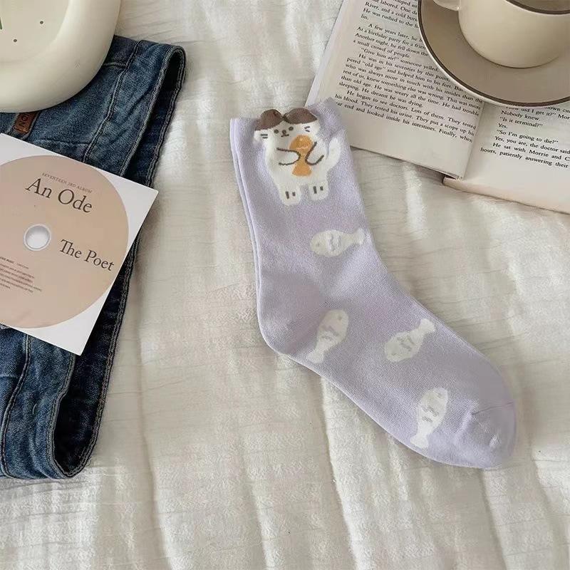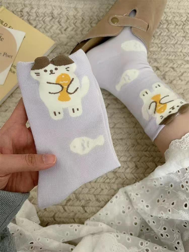Calcetines de gatitos lindos de dibujos animados para mujer, calcetines de longitud media, modernos calcetines de verano finos de algodón puro para estudiantes japoneses, medias de primavera y otoño