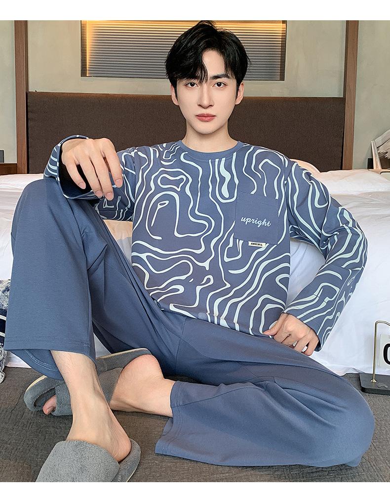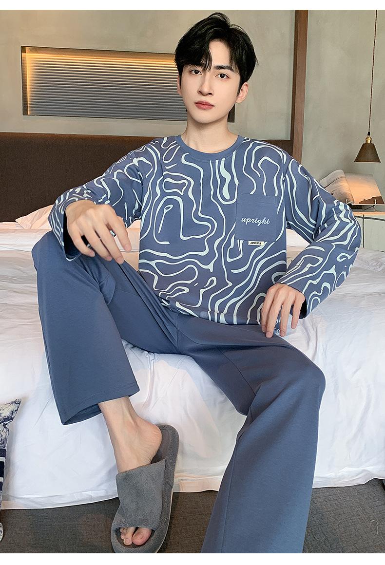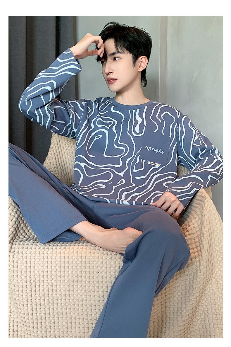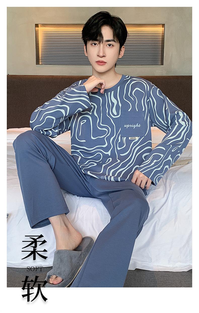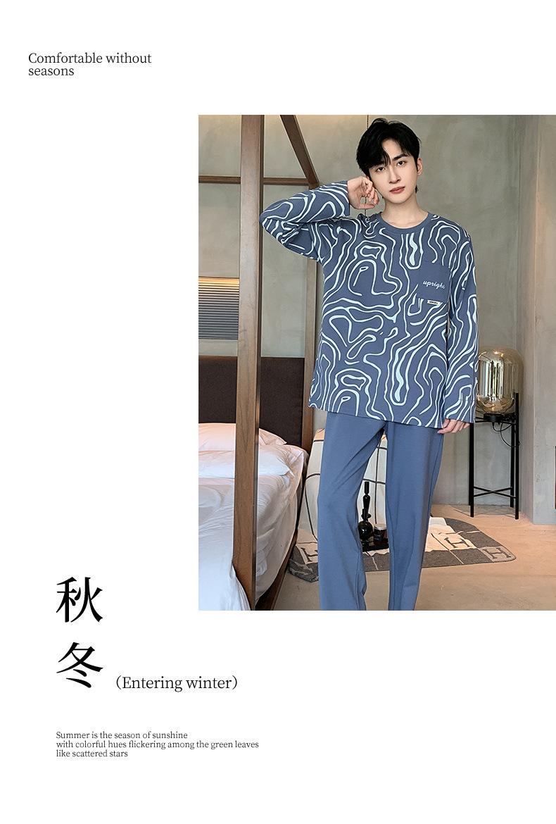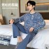 [Algodón puro] Pijamas para hombre, primavera, otoño e invierno, manga larga, ropa de abrigo, ropa de casa de talla grande de alta gama, traje de dos piezas con cuello redondo