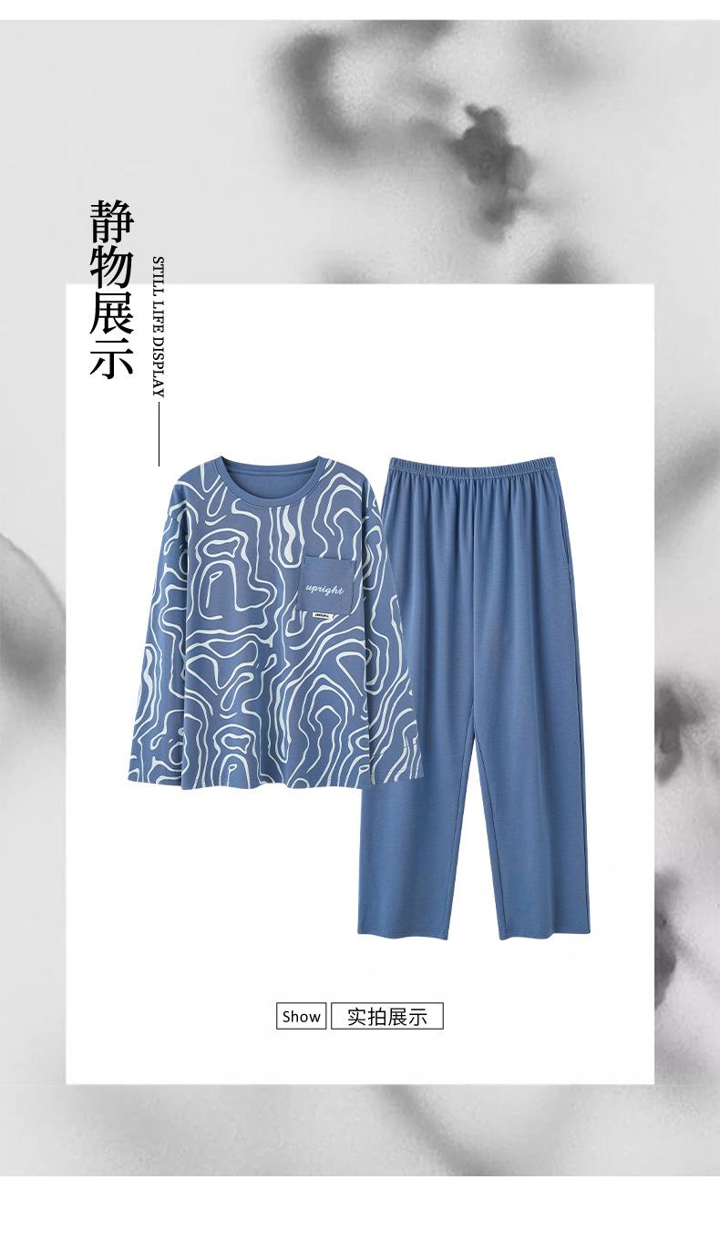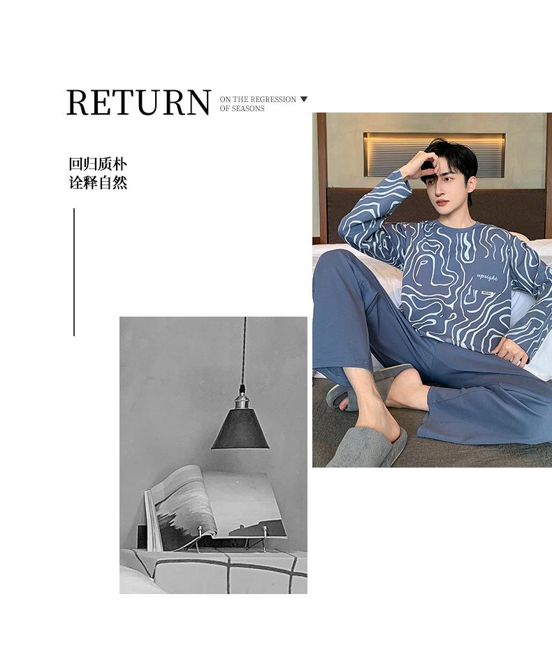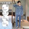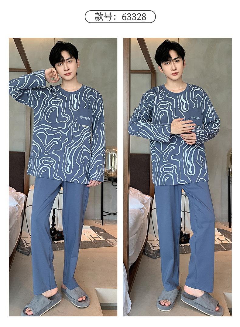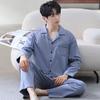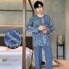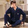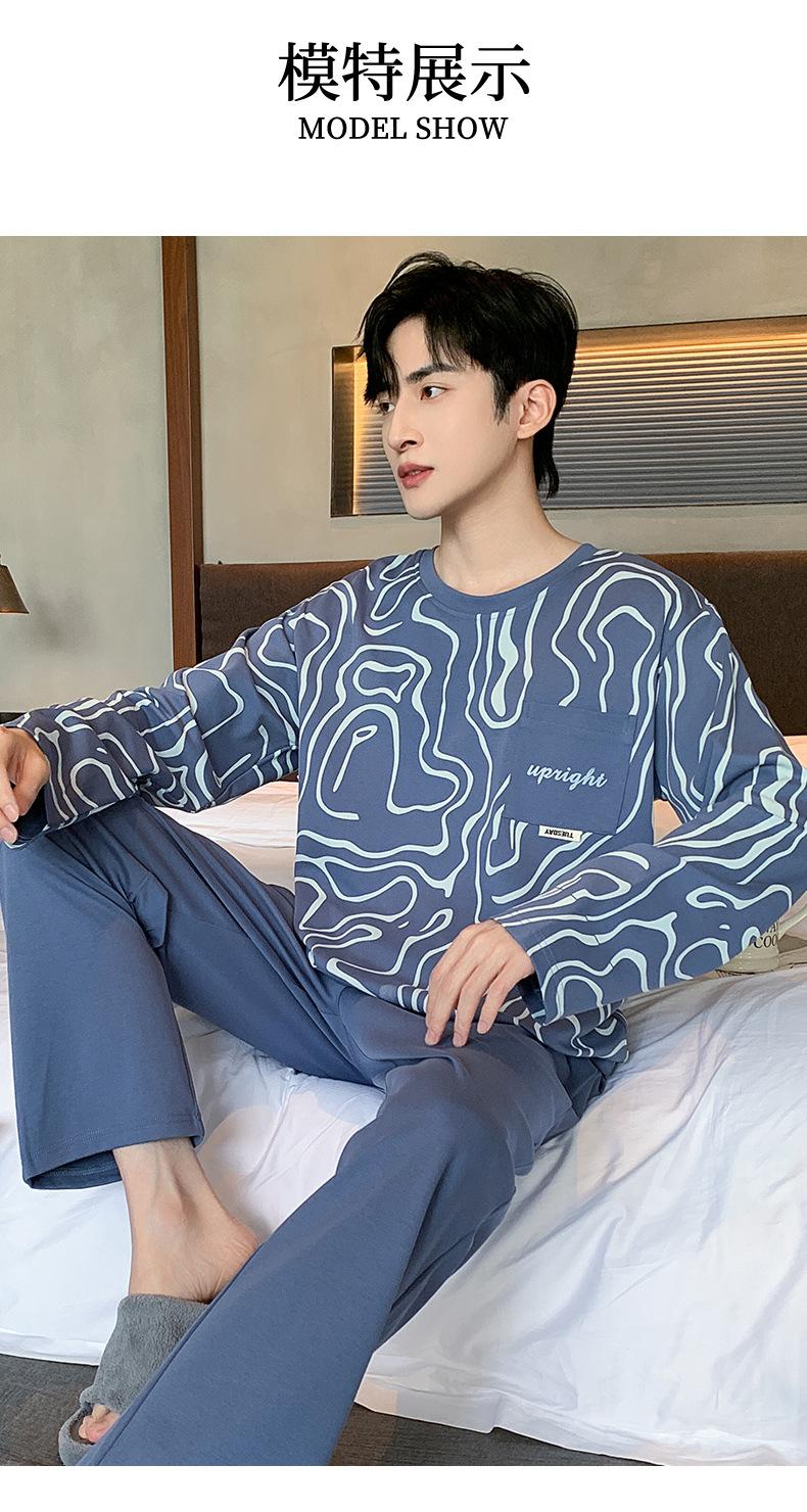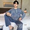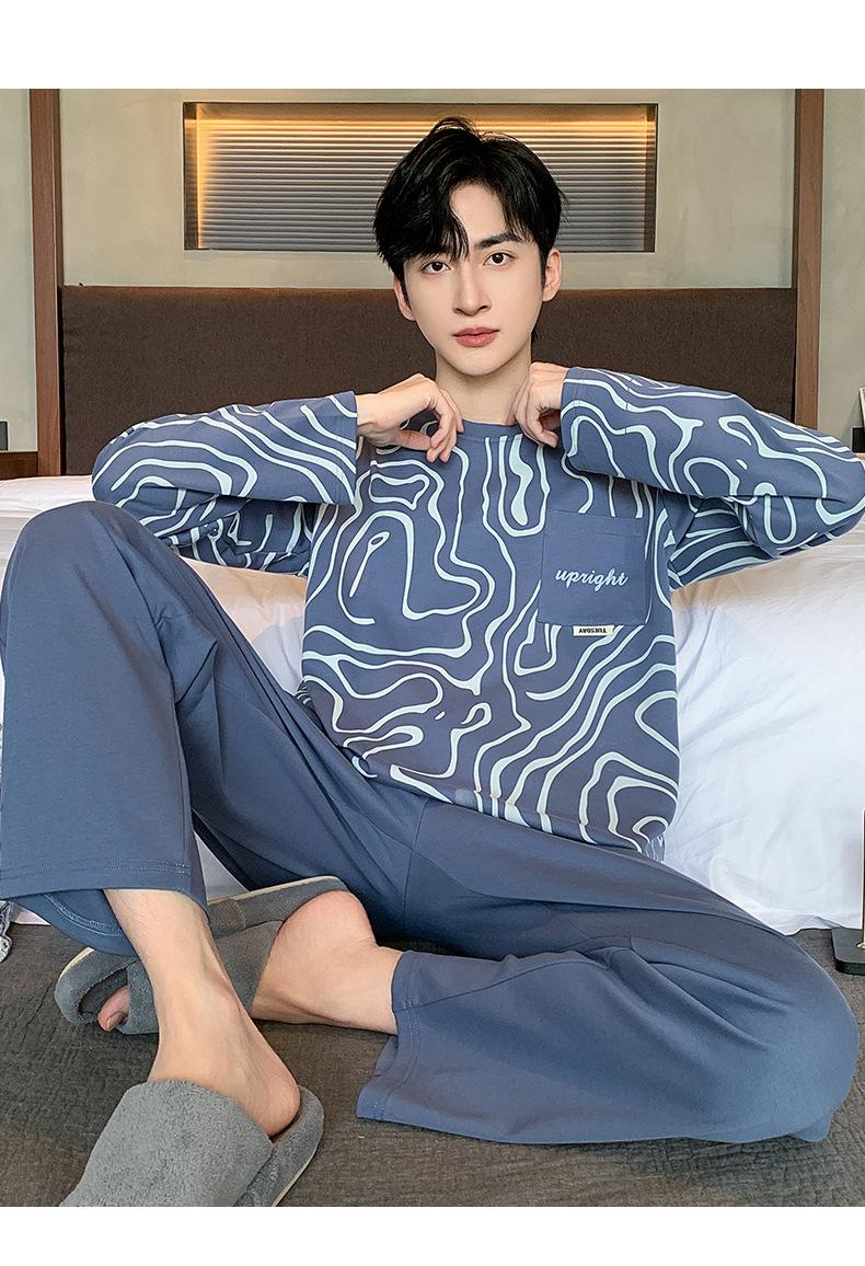 [Algodón puro] Pijamas para hombre, primavera, otoño e invierno, manga larga, ropa de abrigo, ropa de casa de talla grande de alta gama, traje de dos piezas con cuello redondo