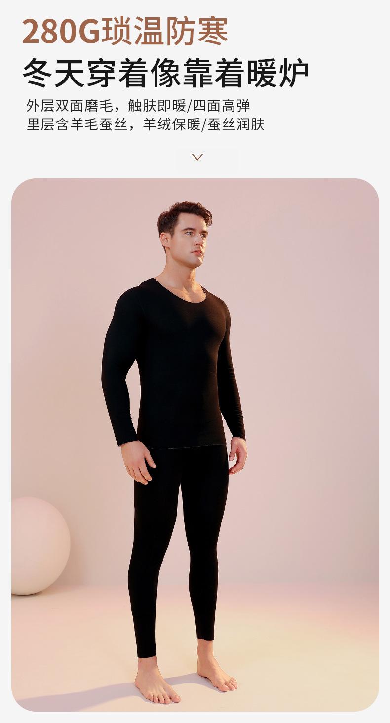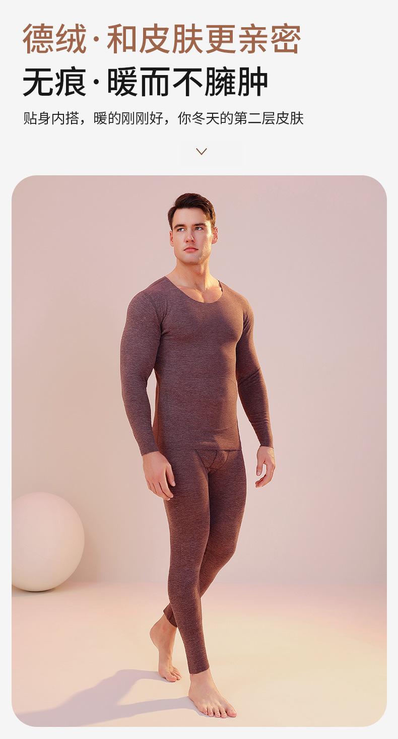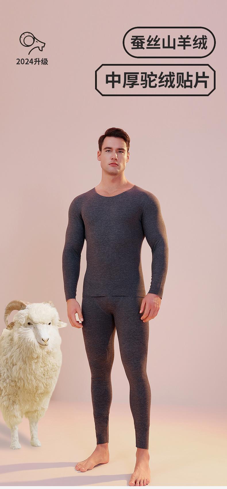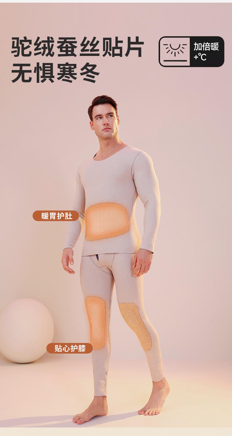 Pantalones de otoño-invierno de terciopelo alemán con parche de camello acolchado para hombre, ropa interior térmica de seda de cachemira con cuello redondo, venta al por mayor