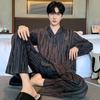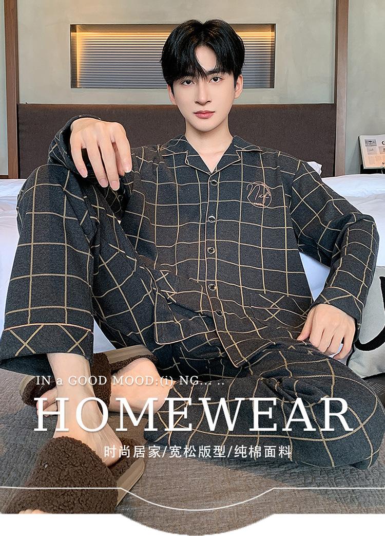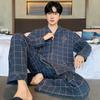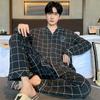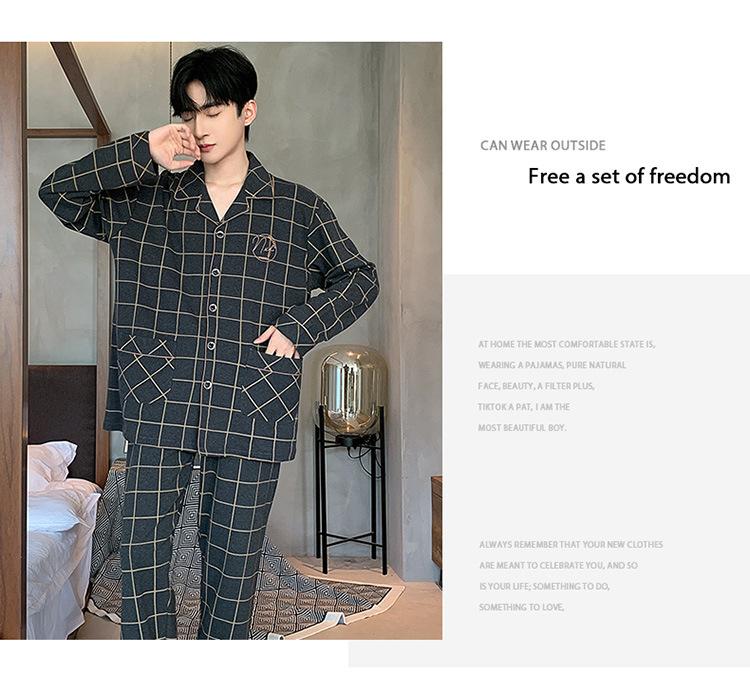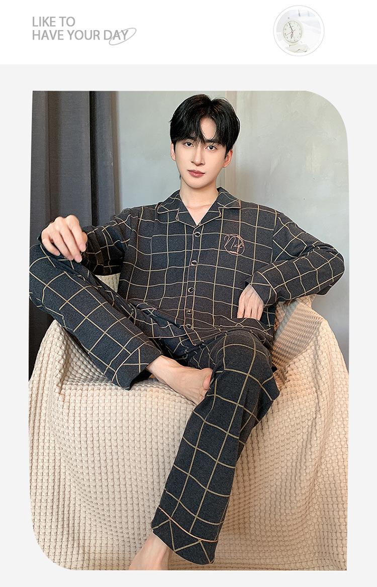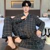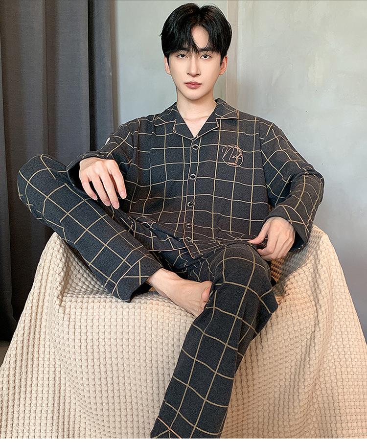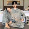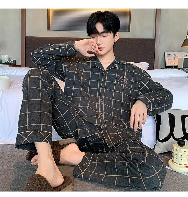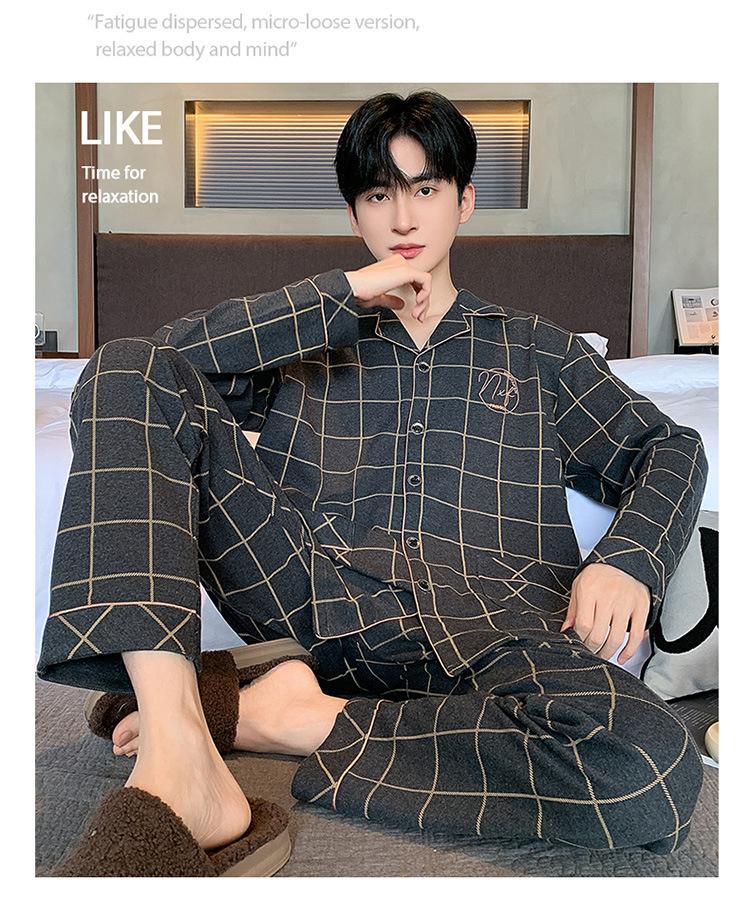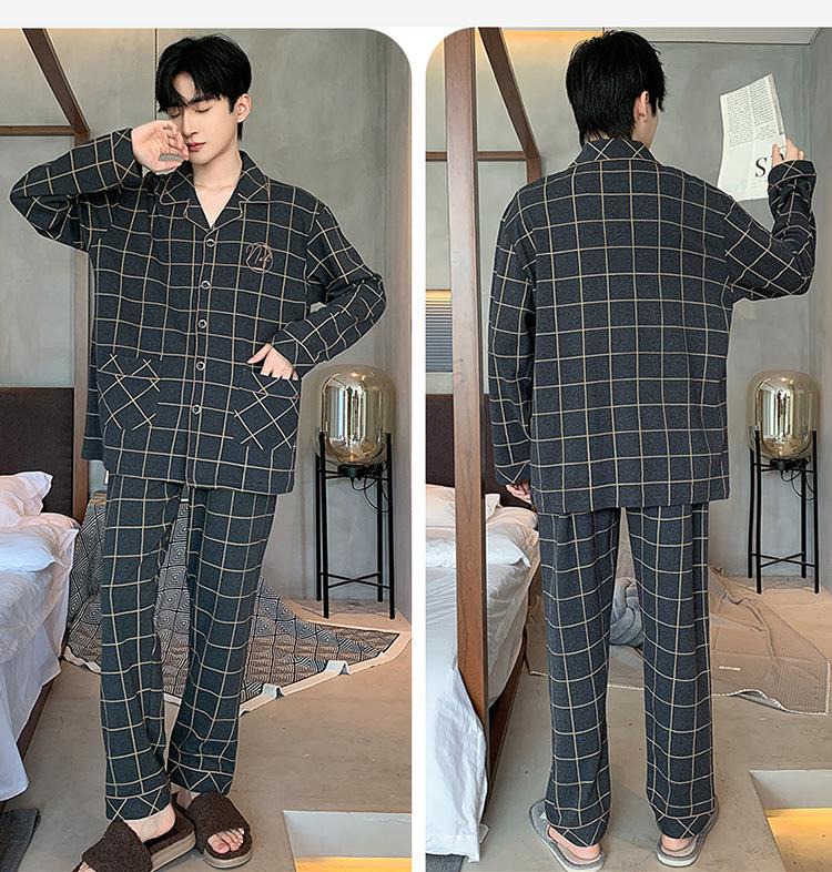 Pijamas de hombre de primavera y otoño de algodón de manga larga, pantalones, traje de talla grande, cárdigan fino holgado de otoño para hombre, ropa para el hogar