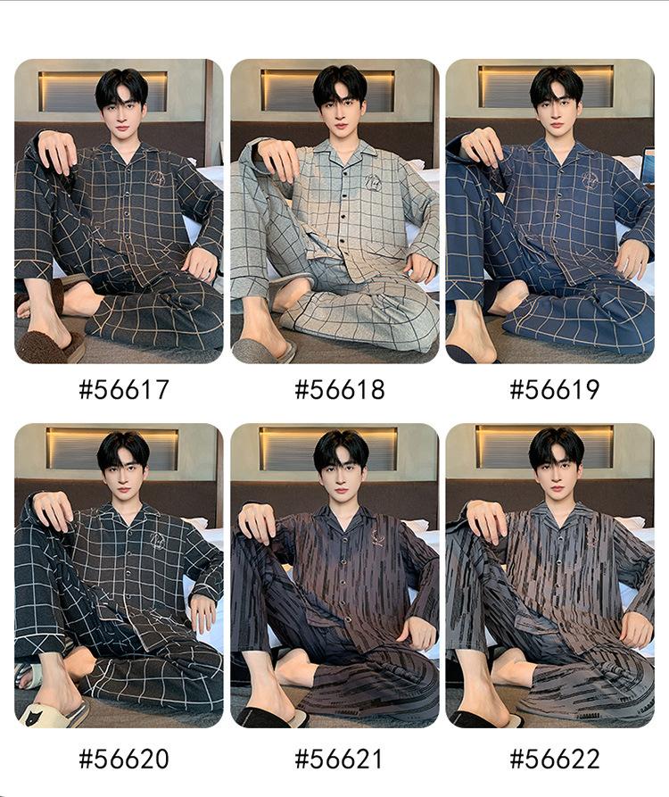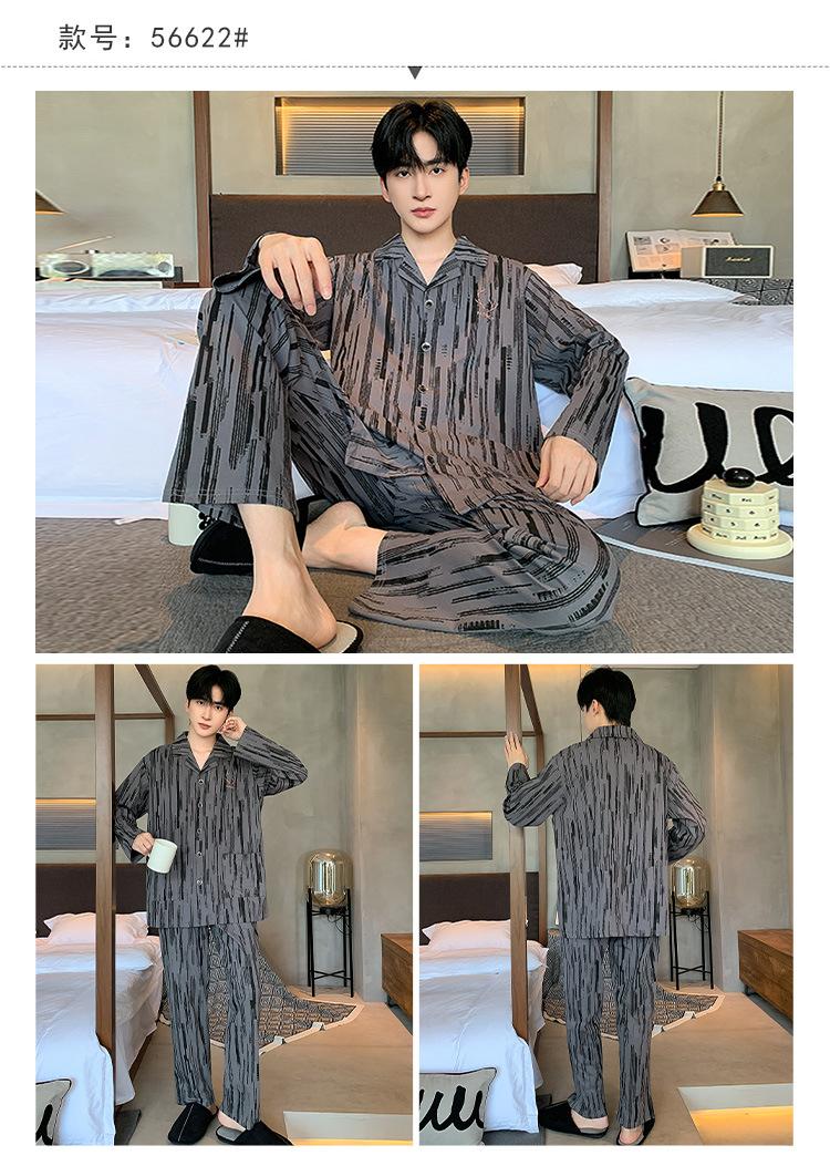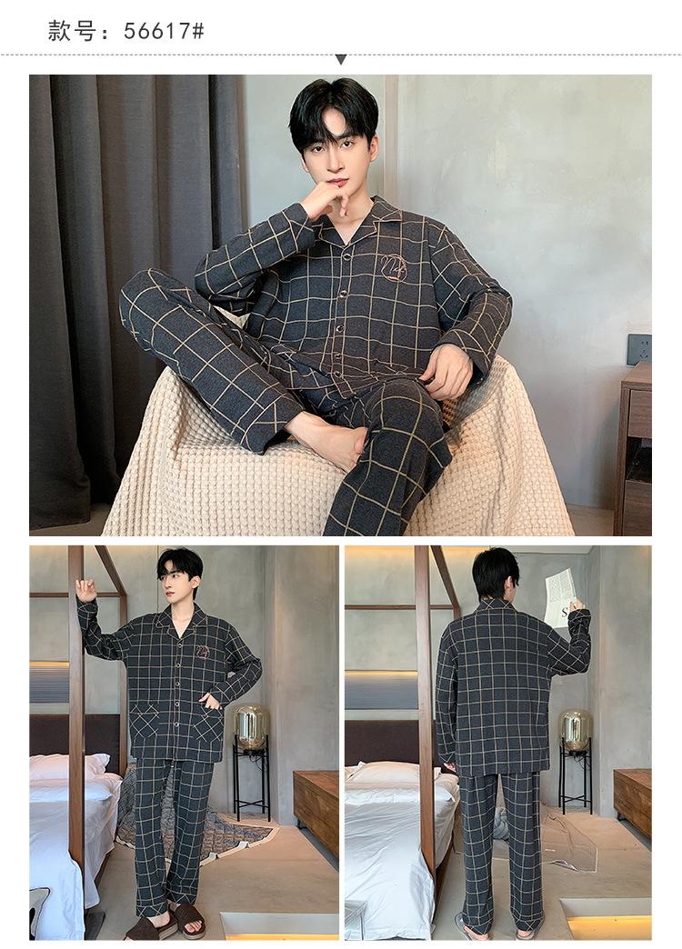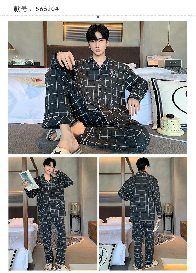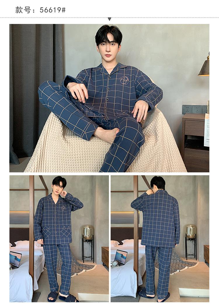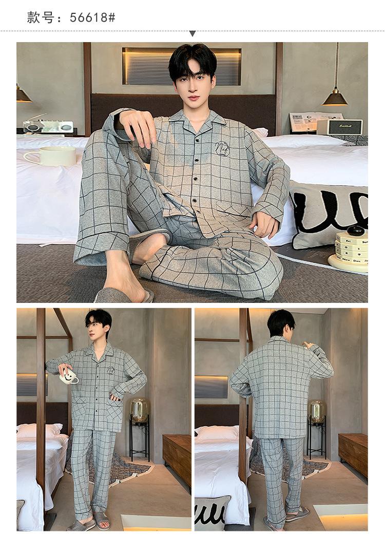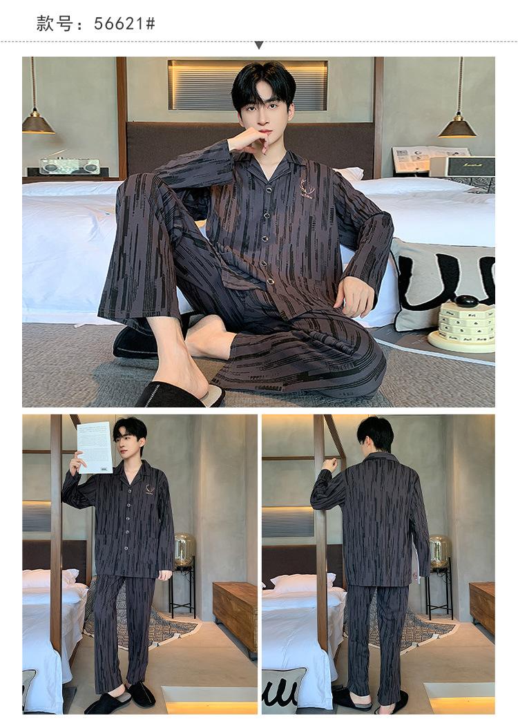 Pijamas de hombre de primavera y otoño de algodón de manga larga, pantalones, traje de talla grande, cárdigan fino holgado de otoño para hombre, ropa para el hogar