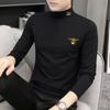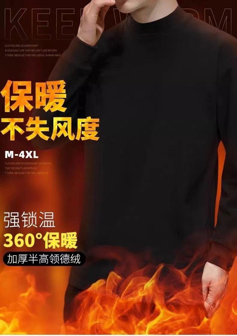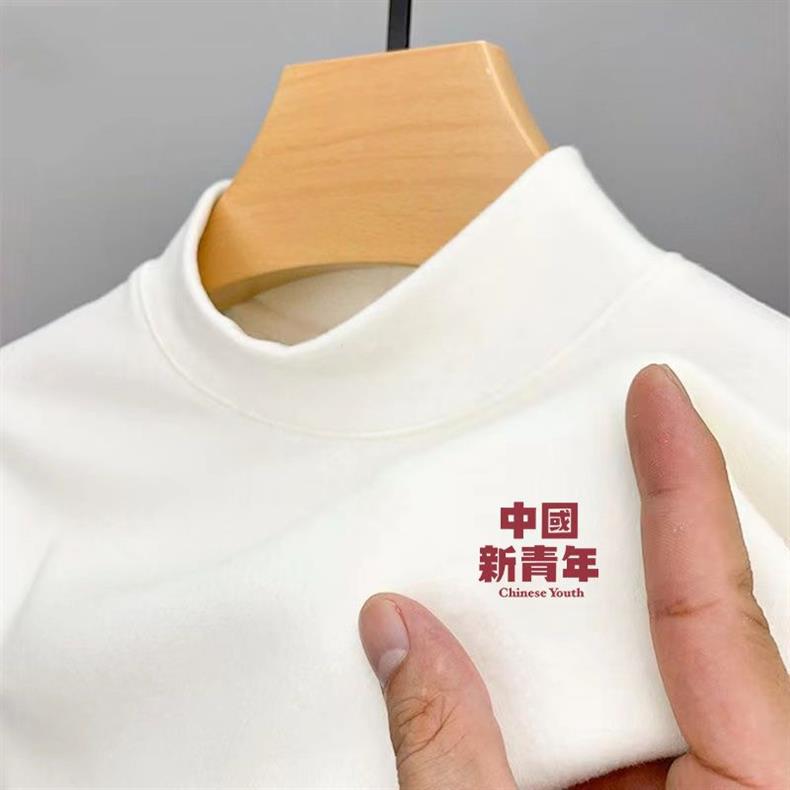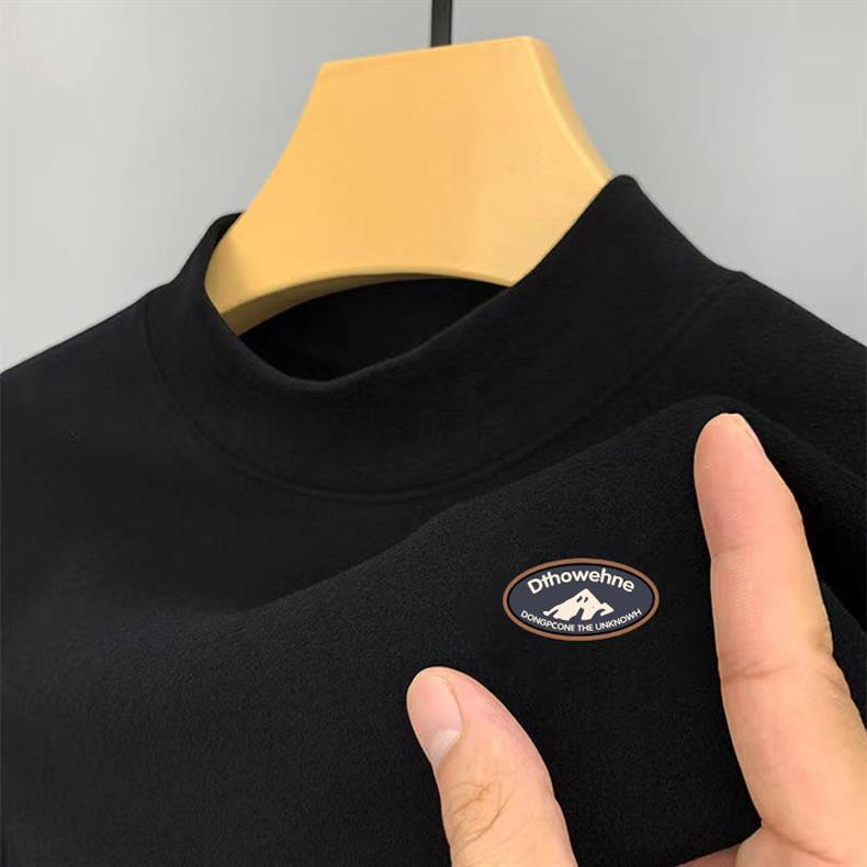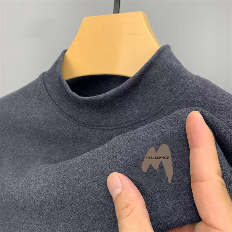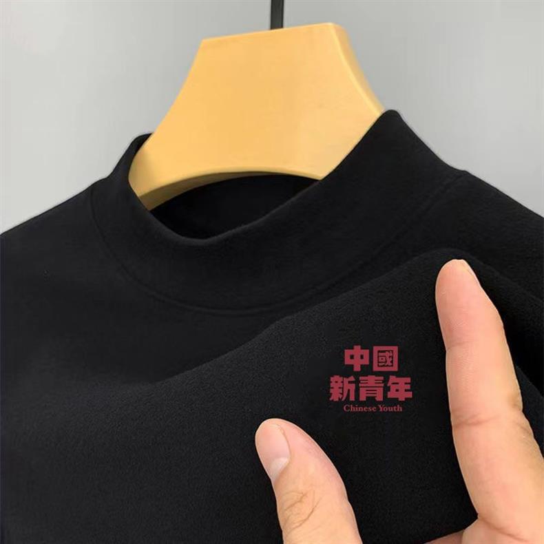 Camiseta de manga larga con cuello medio alto y doble cara de terciopelo para hombre, nueva camiseta de otoño e invierno, ajustada, cálida, con estampado interior