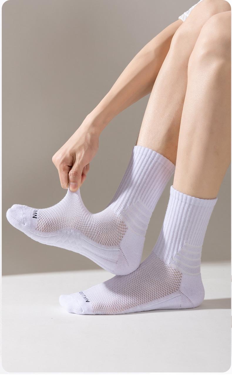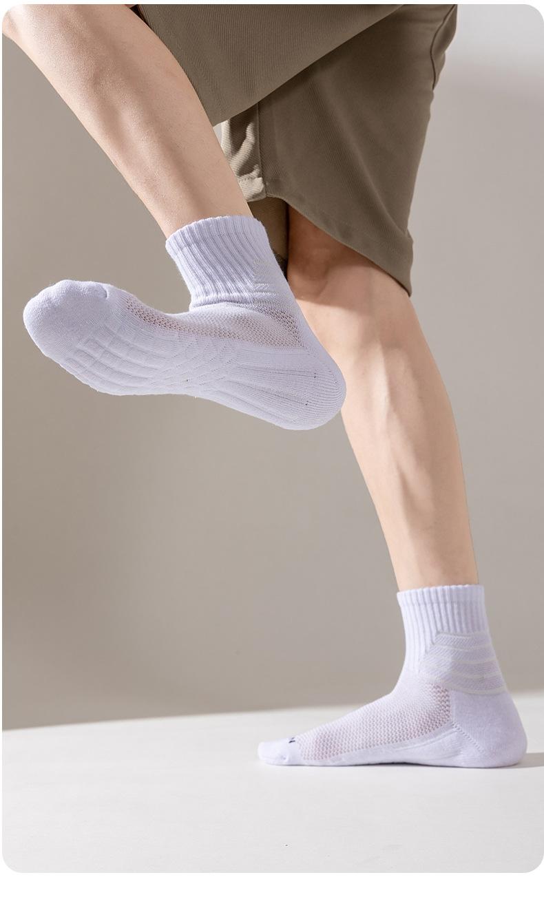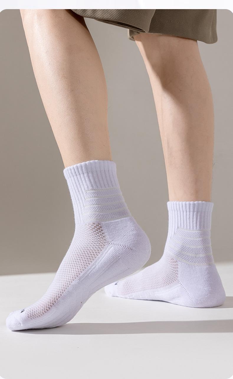 Calcetines deportivos para hombre, calcetines de running de caña media, calcetines blancos y negros para hombre, calcetines de baloncesto de caña larga, transpirables y absorbentes del sudor con base de toalla.