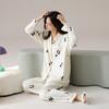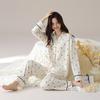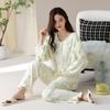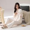 Pijamas de algodón de manga larga para otoño e invierno, cuello redondo, holgados, transpirables y agradables para la piel, ropa de casa sencilla para mujer.