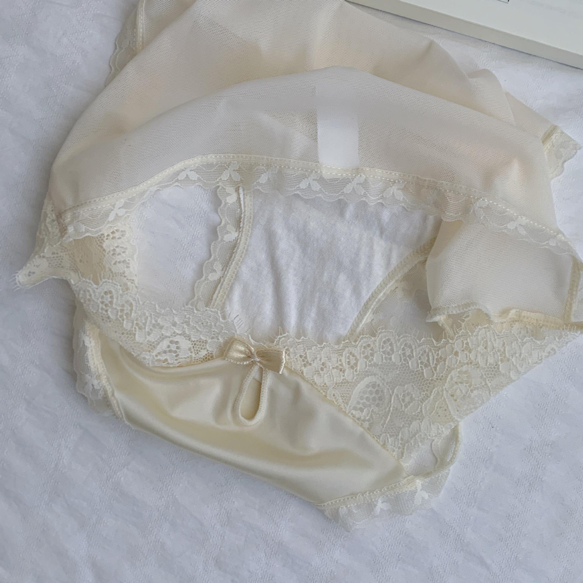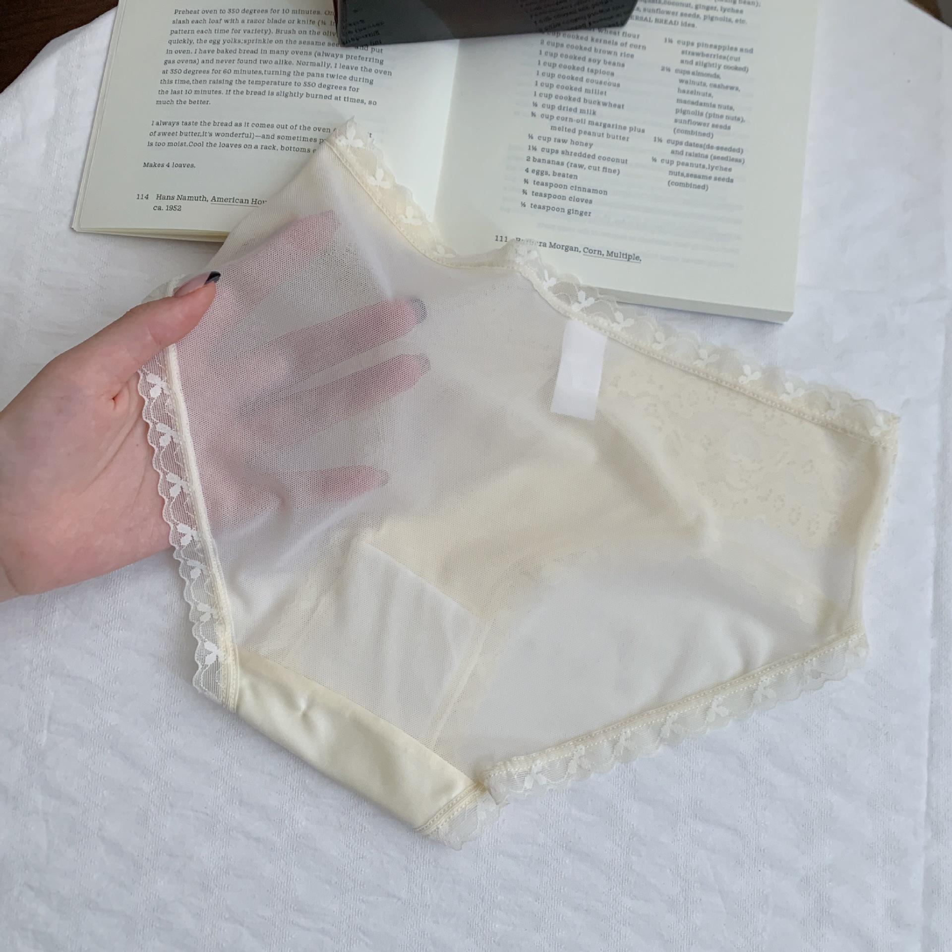 Estilo Francés Encaje Suave Sexy Malla Ropa Interior de Mujer Dulce Viento Puro Tentación Transpirable Cómodo Calzones de Cintura Media para Niñas
