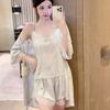 Pijama de malla sexy de encaje puro y de hadas de nuevo estilo para mujer, camisón de tirantes de primavera y verano, conjunto de cuatro piezas