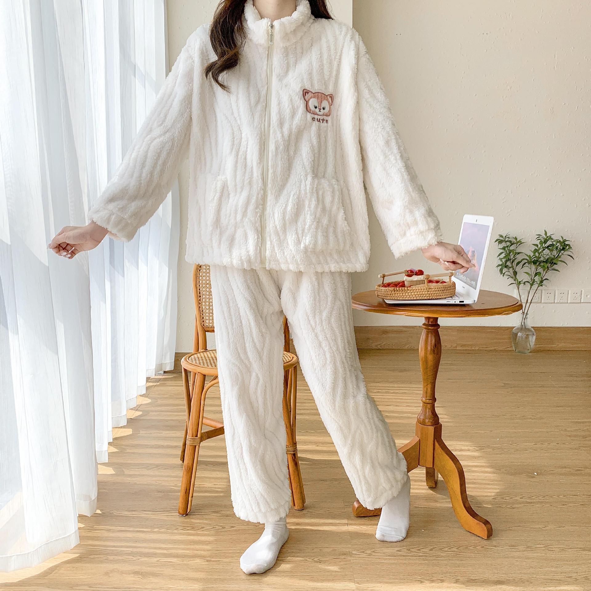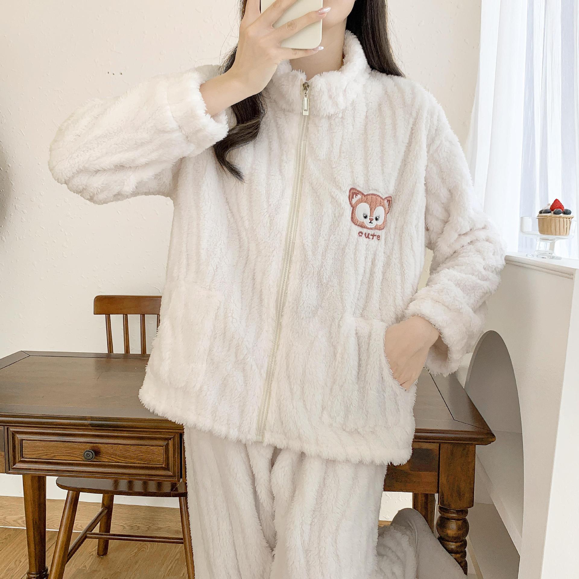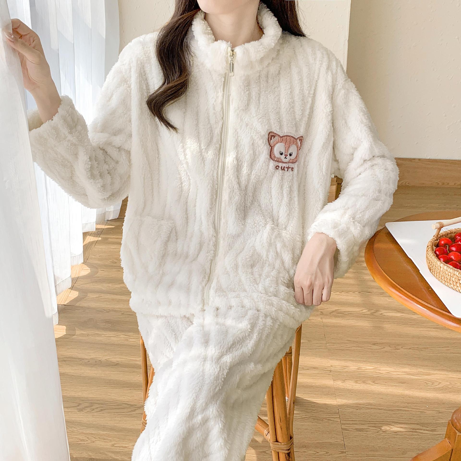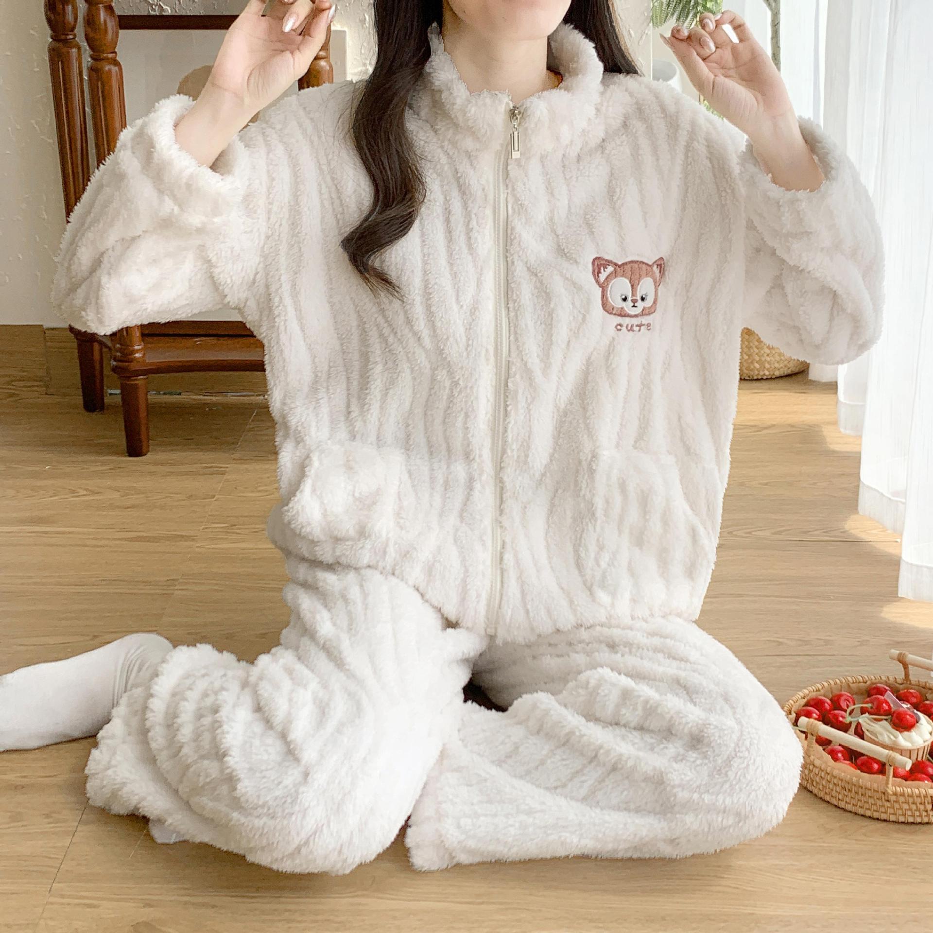Pijamas de lana coral para mujer, de invierno, con forro polar, gruesos, bonitos, para niña, populares en Internet, otoño e invierno, nueva ropa de franela para el hogar.