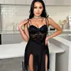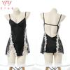Lencería Sexy Europea y Americana para Mujer Patrón de Encaje Perspectiva Lateral Tirantes Malla Ajustado Conjunto de Dos Piezas