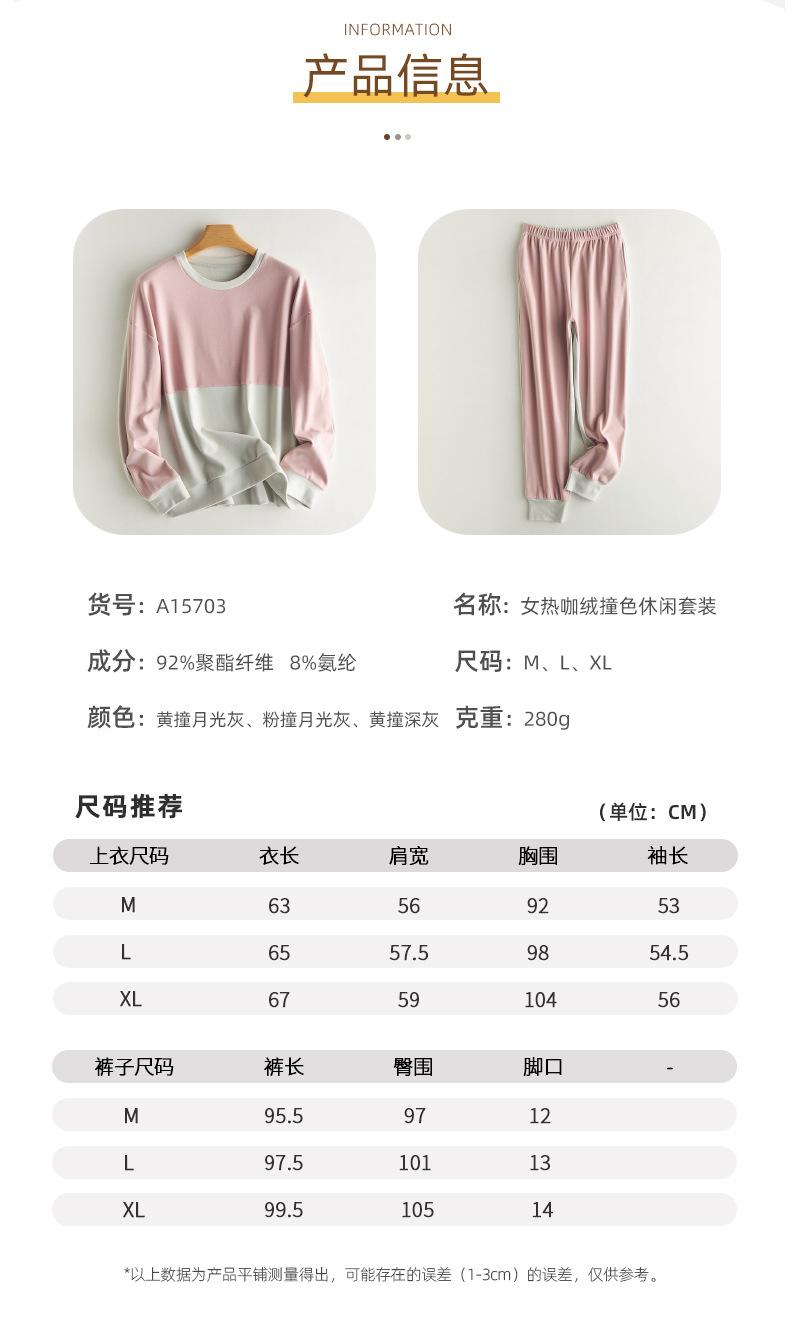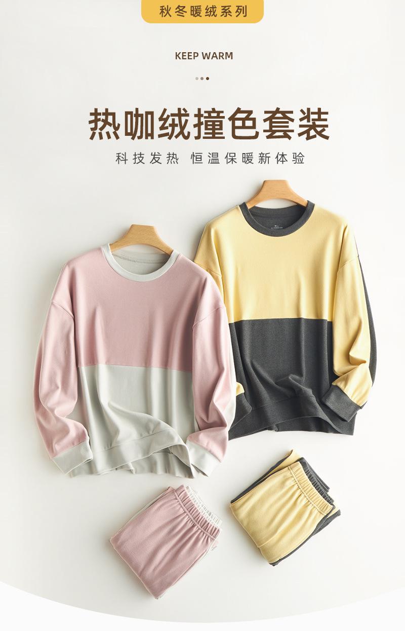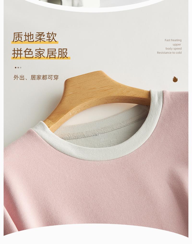 Traje de ropa de casa para mujer Otoño e Invierno Nuevo Cationico Almacenamiento Térmico Cálido Suelto Cómodo Color de Contraste para Usar Pijama para Mujer