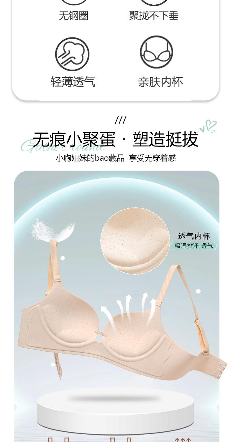 Sujetador de copa de suspensión color piel de una pieza con realce de pecho pequeño, sin costuras, original de Little Gathering, sin aros