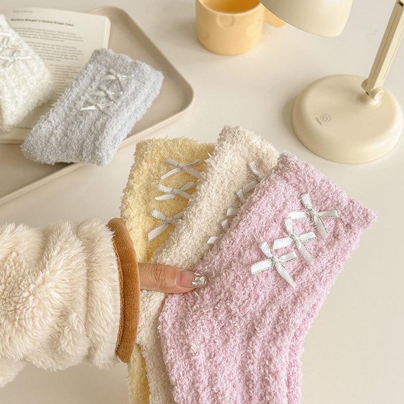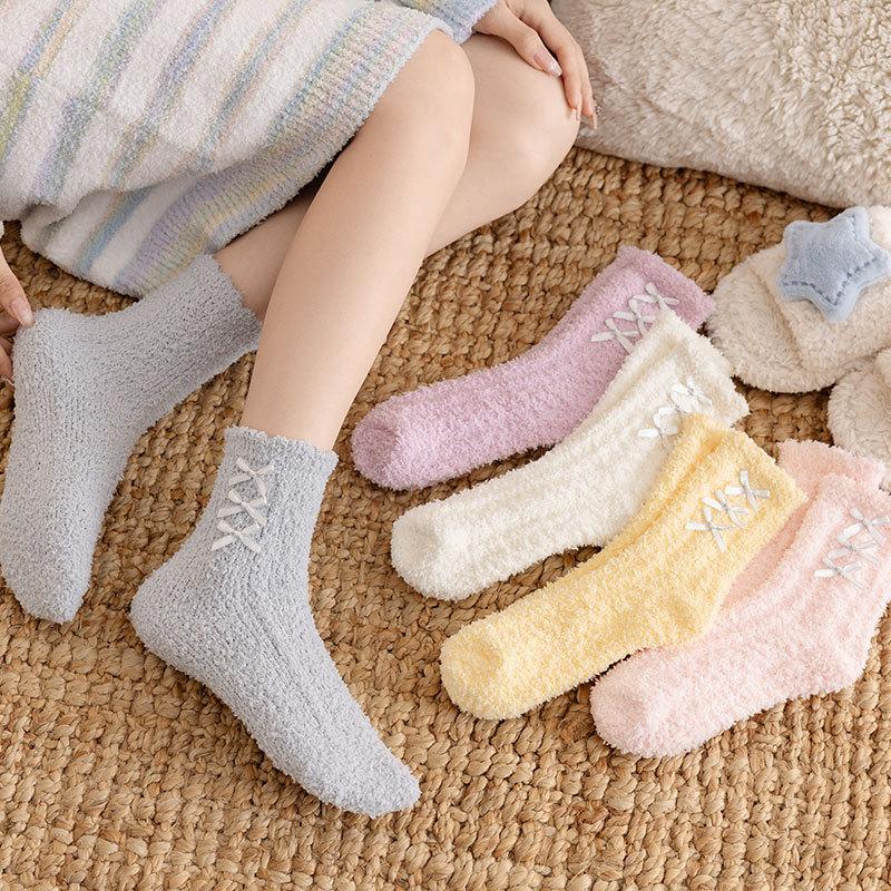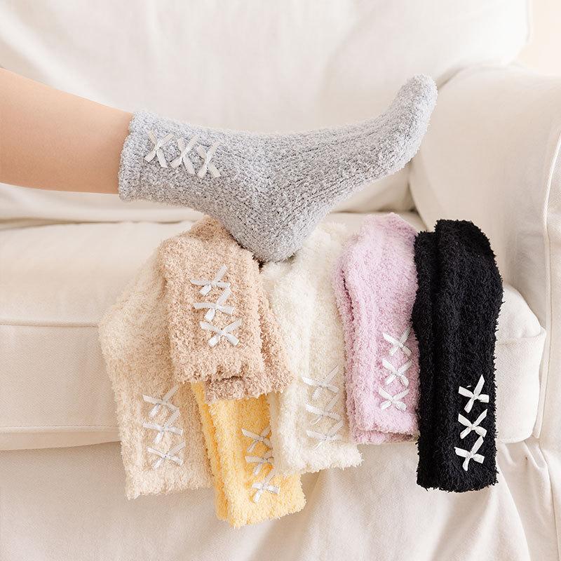Calcetines de terciopelo coral nuevos de invierno, gruesos y cálidos, para mujer, sin pelusa, de medio terciopelo, de toalla
