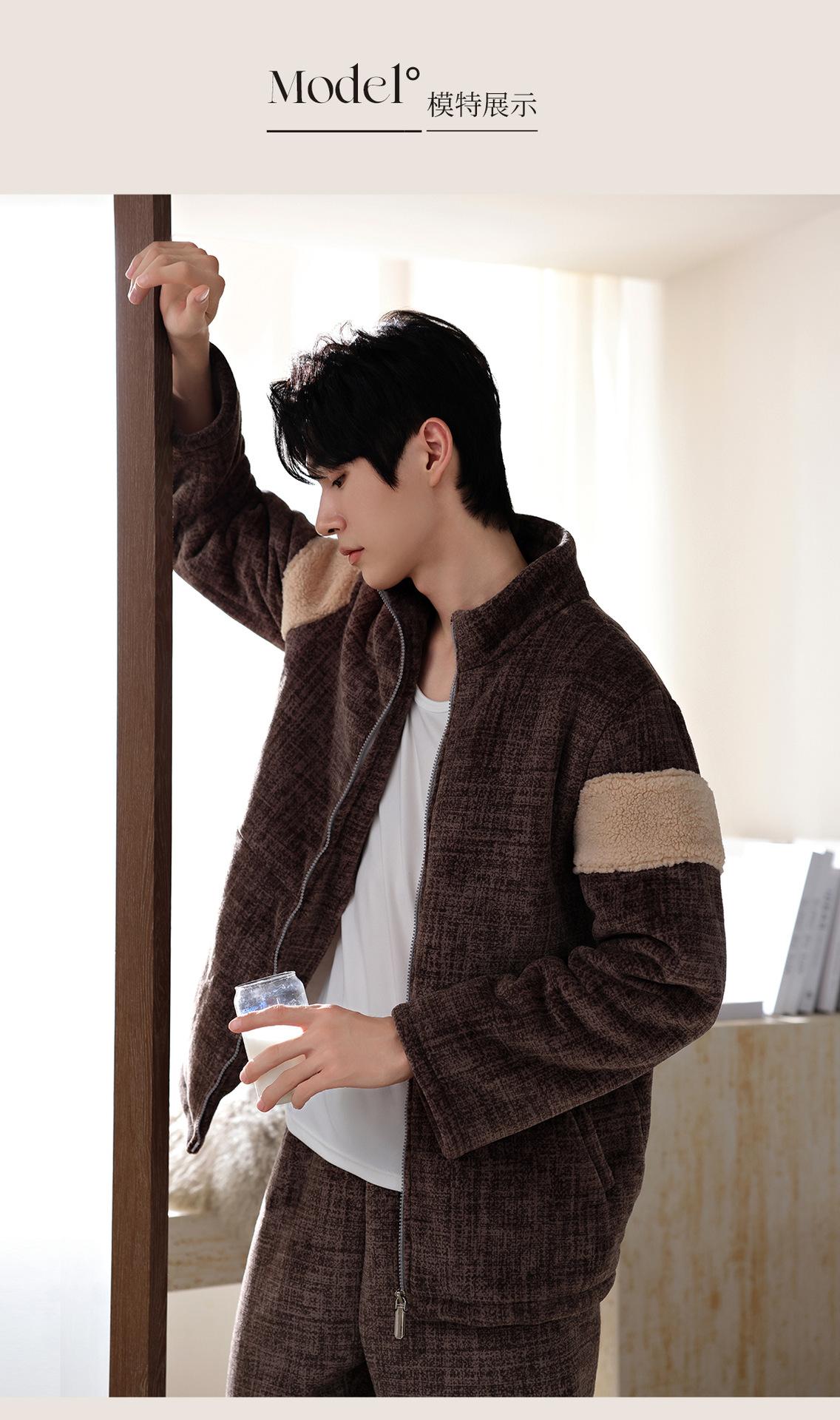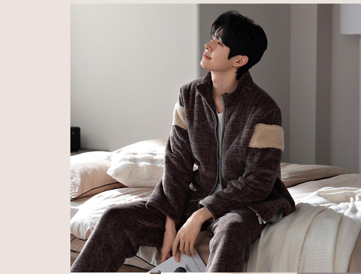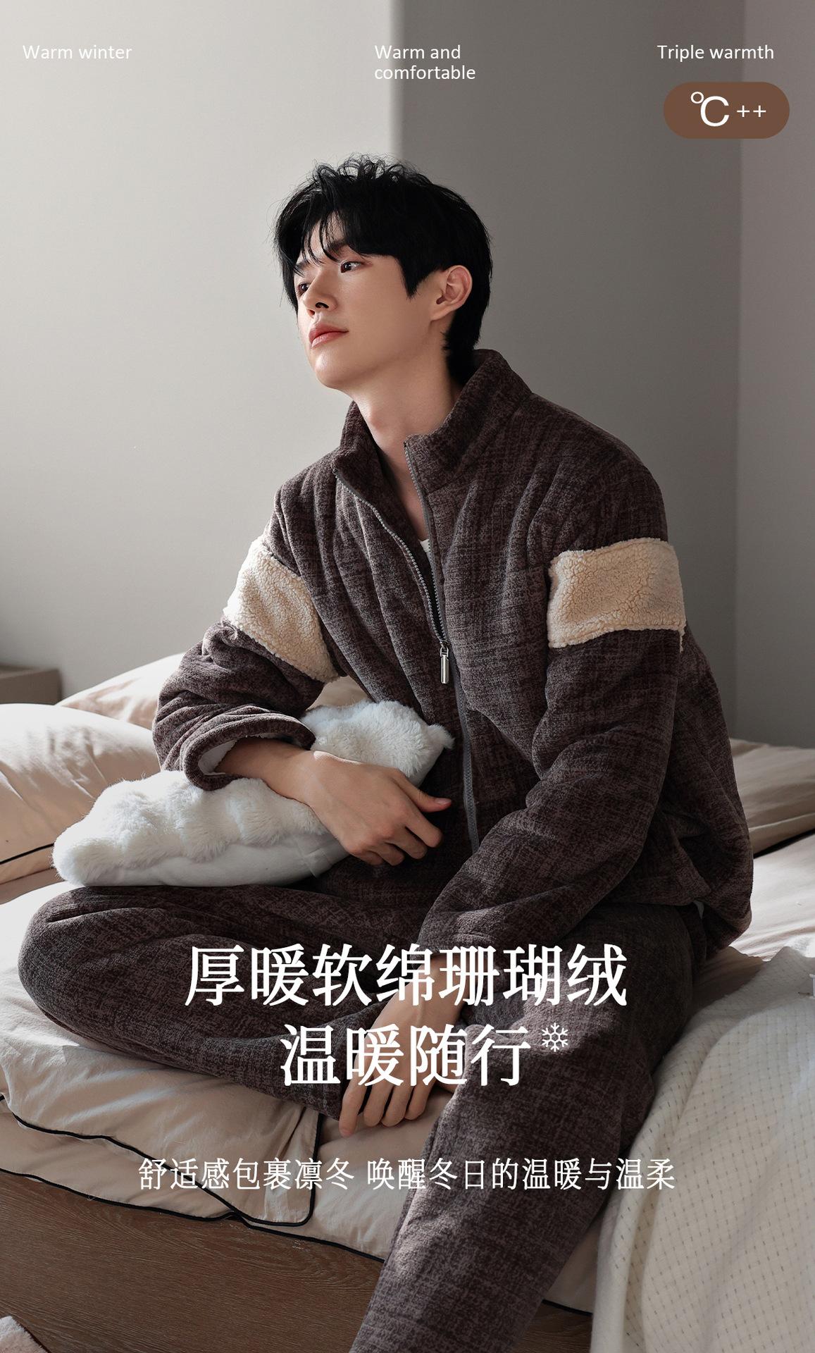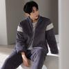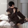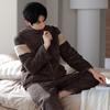 Pijama de hombre de forro polar coral cálido, para otoño e invierno, con cuello grueso e informal, para el hogar, de franela.