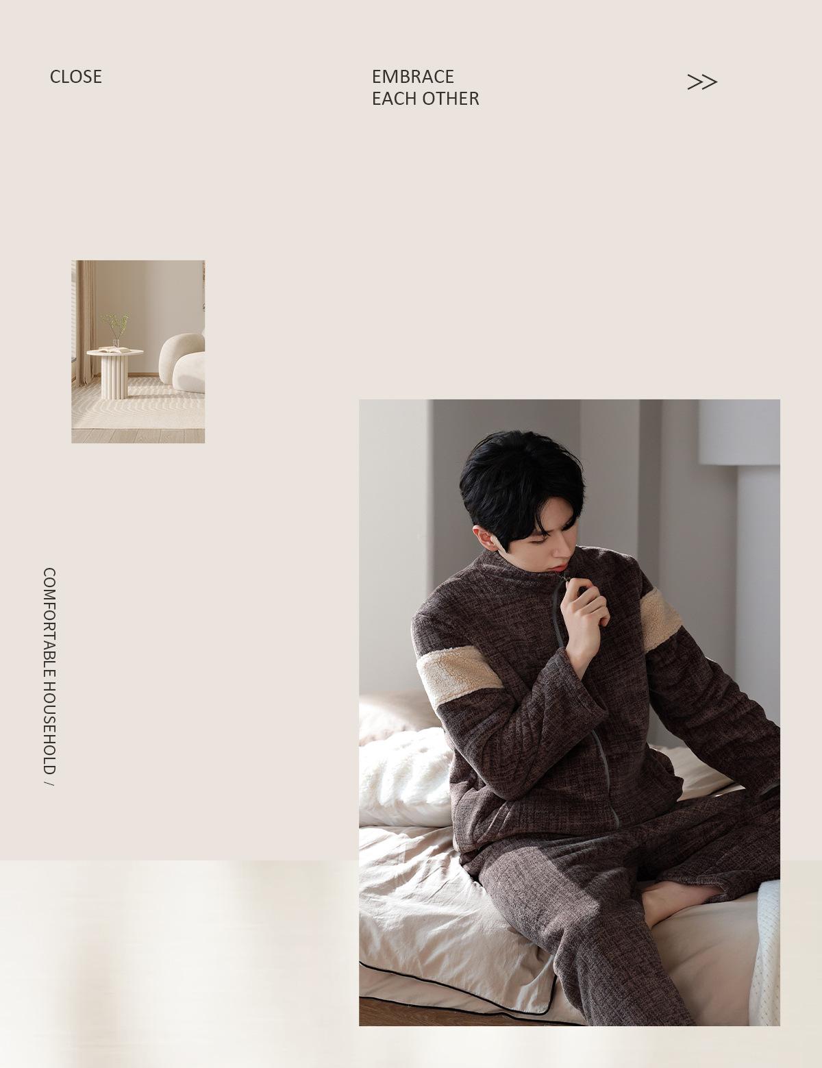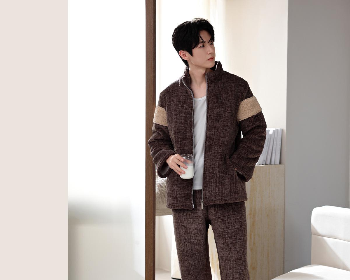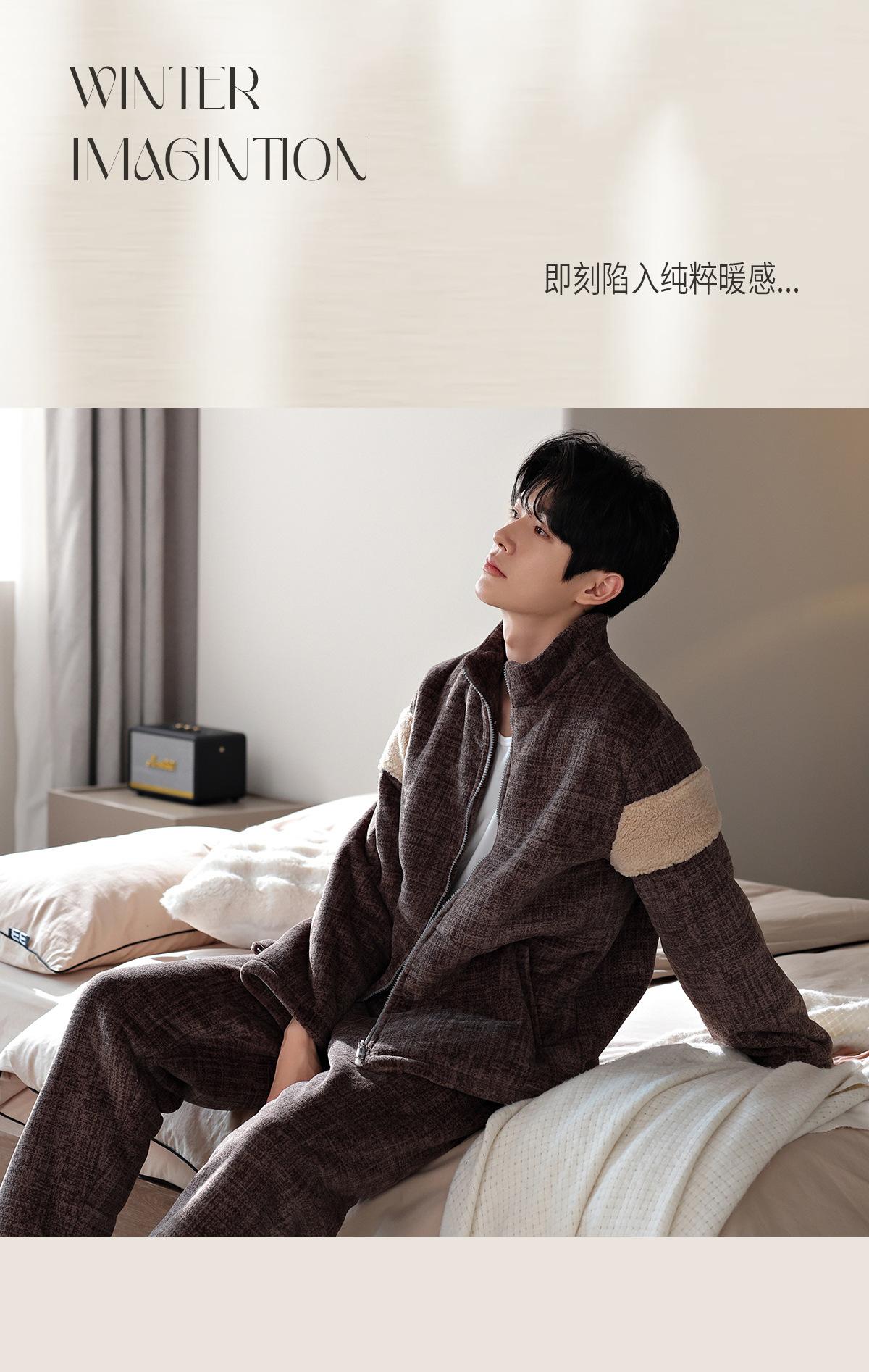 Pijama de hombre de forro polar coral cálido, para otoño e invierno, con cuello grueso e informal, para el hogar, de franela.