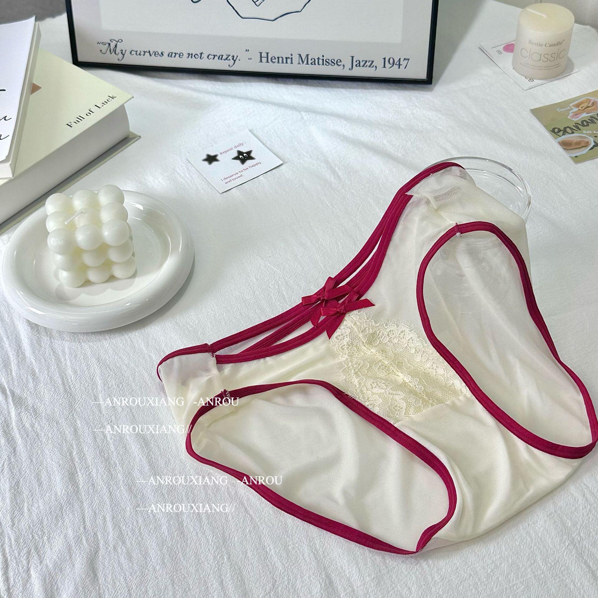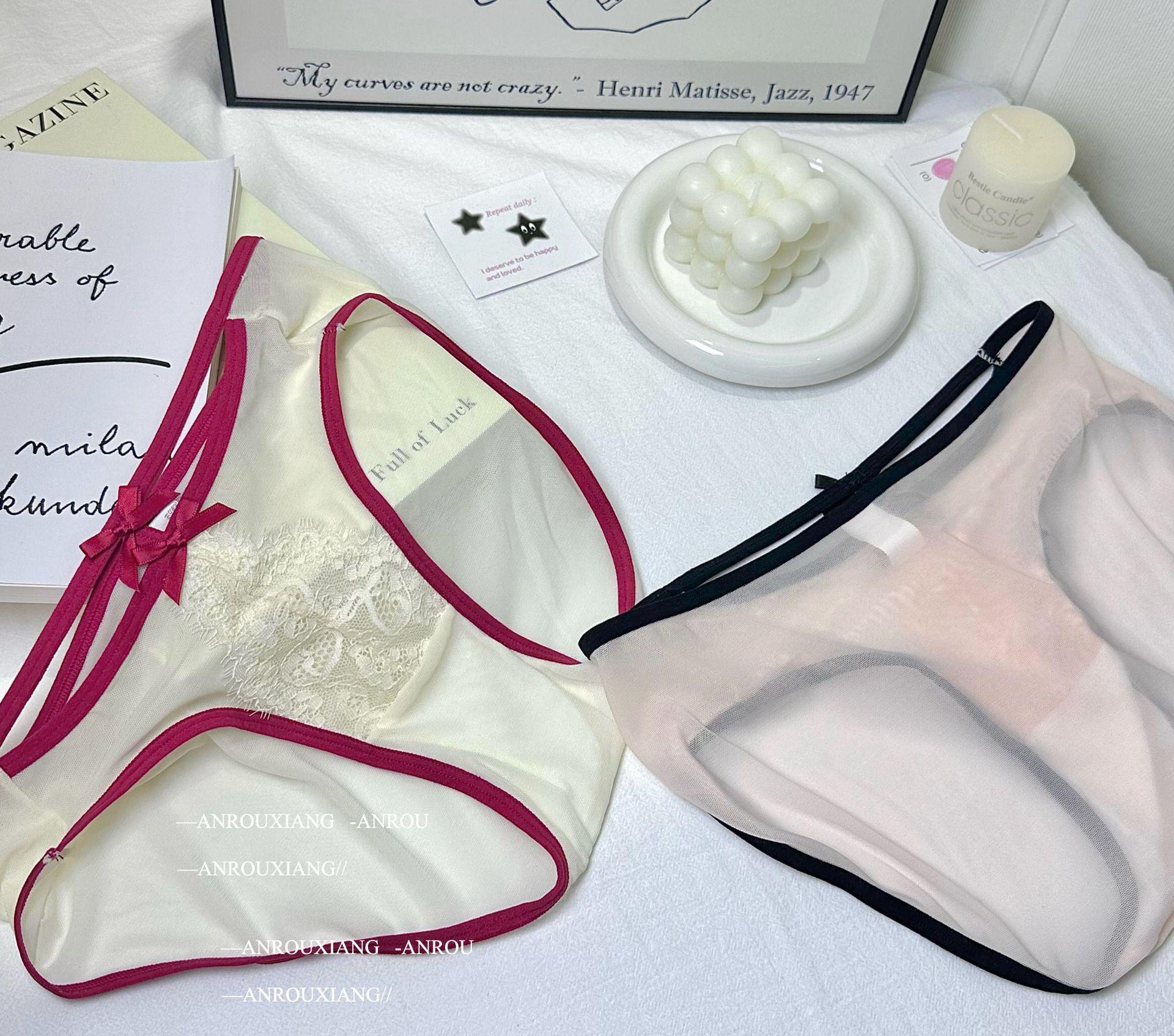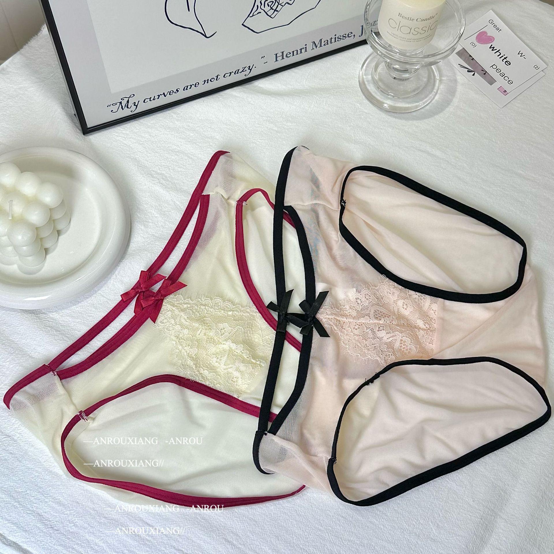 Ropa interior de encaje sexy para mujer, de verano, fina, con lazo, hueca, pura pasión, cintura baja, transpirable, sin costuras.