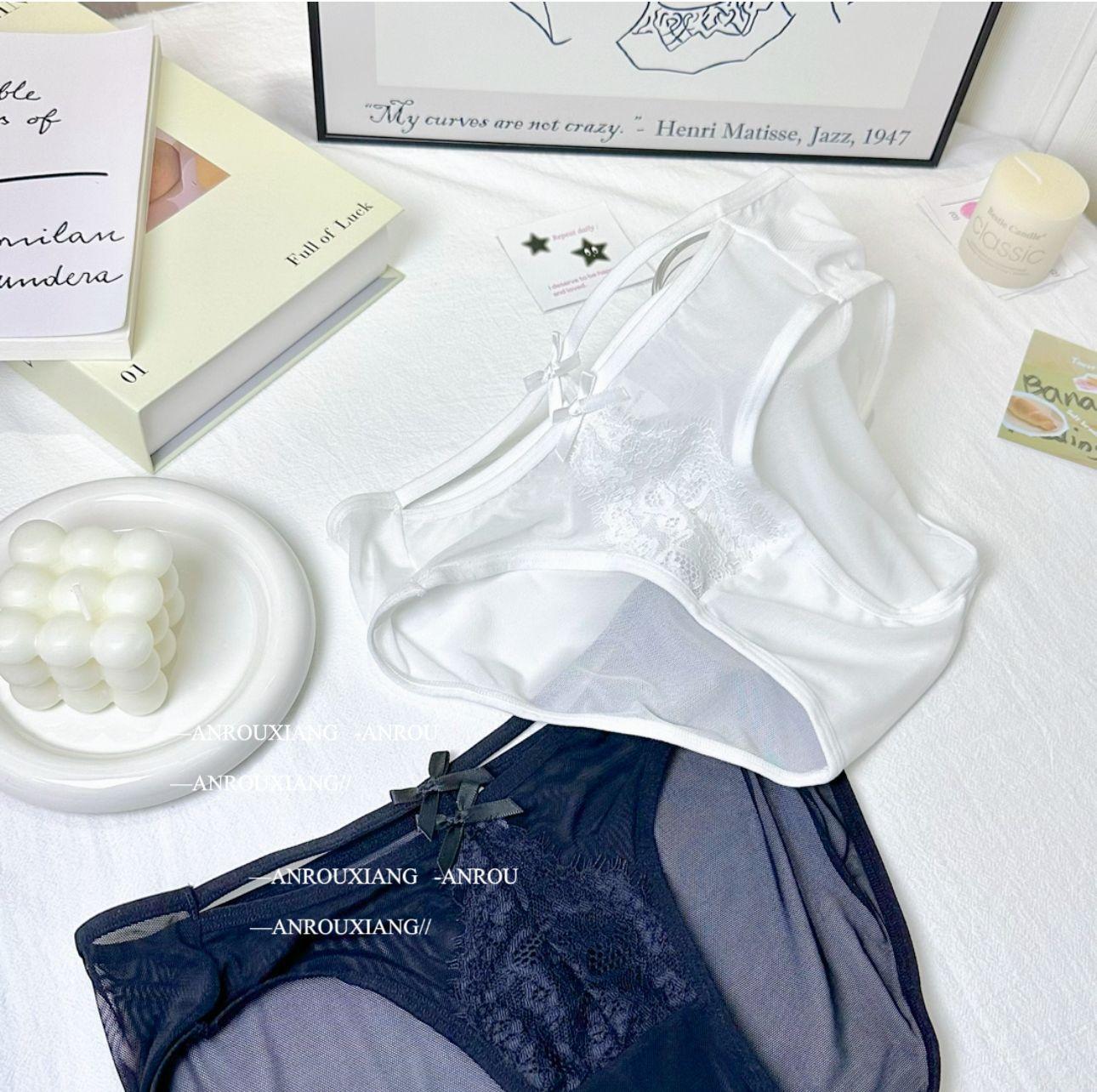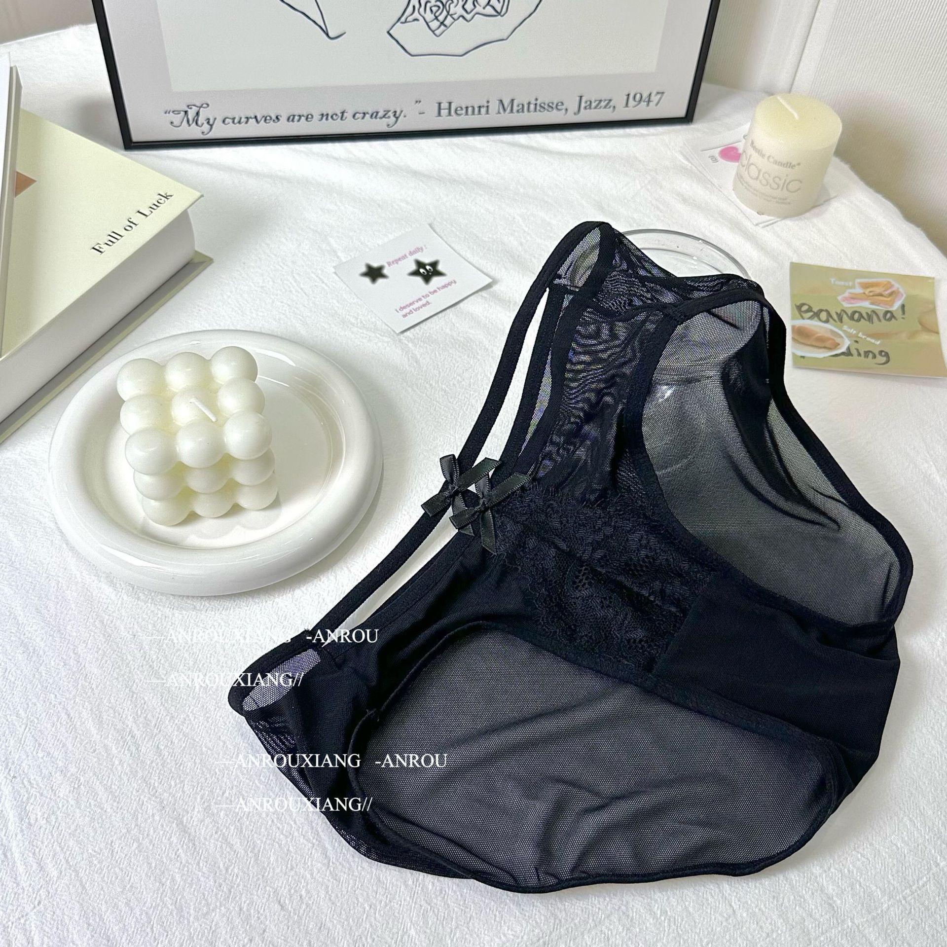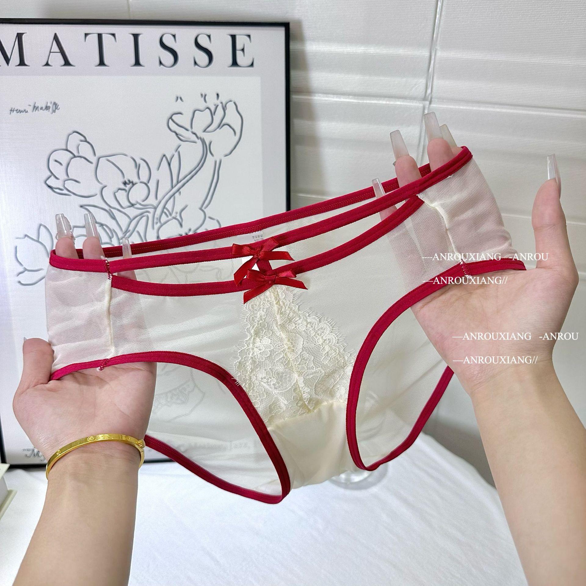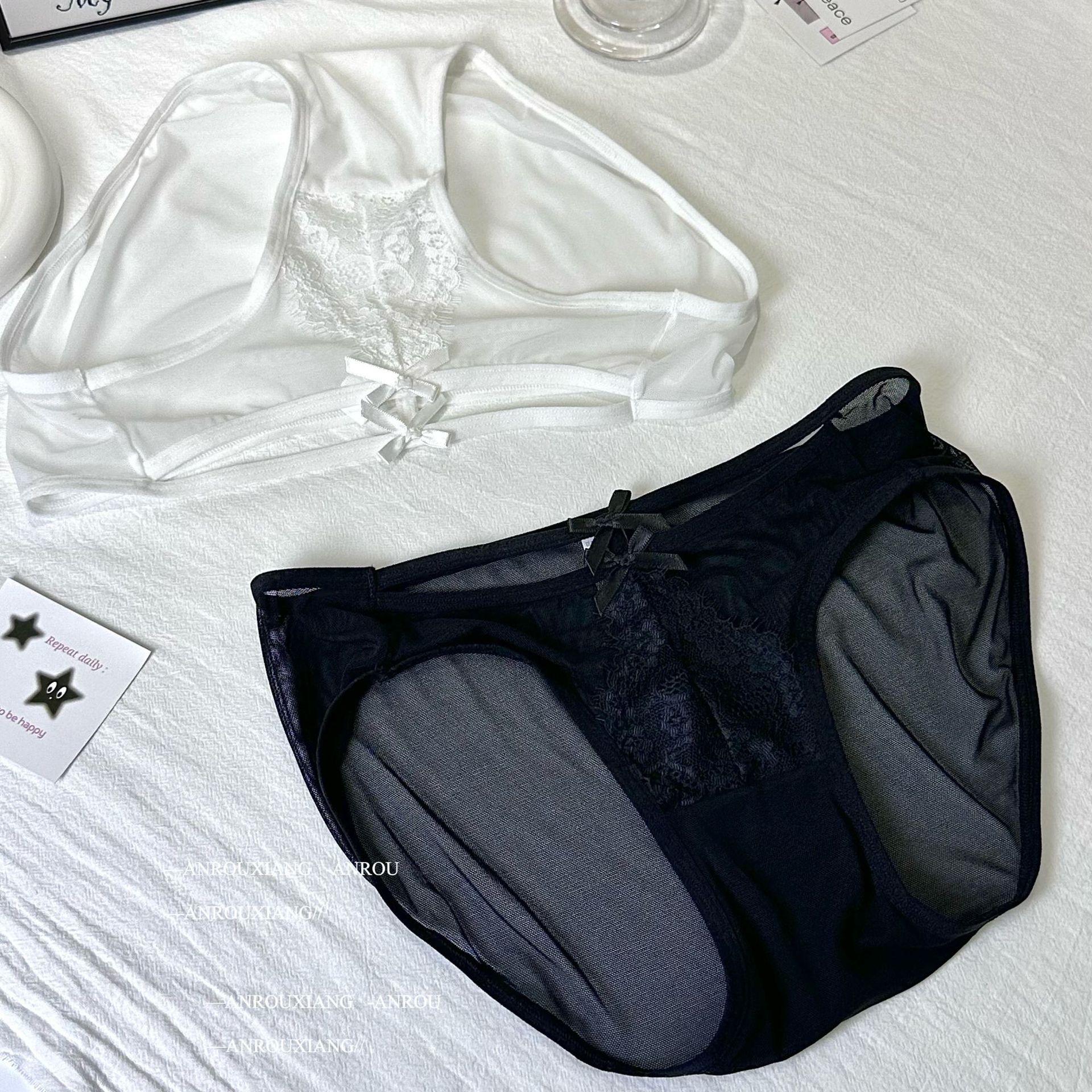 Ropa interior de encaje sexy para mujer, de verano, fina, con lazo, hueca, pura pasión, cintura baja, transpirable, sin costuras.