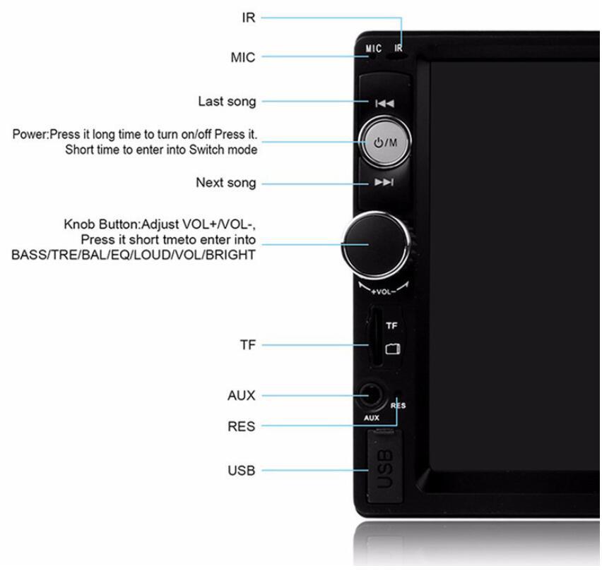 La interfaz de entrada de audio AUX se puede conectar a entradas de audio externas como MP3, GPS, teléfonos móviles y Walkman.