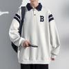 Polo de punto de color contrastante para hombre, suéter de solapa, camisa informal holgada de manga larga para otoño e invierno, novedad de 2023