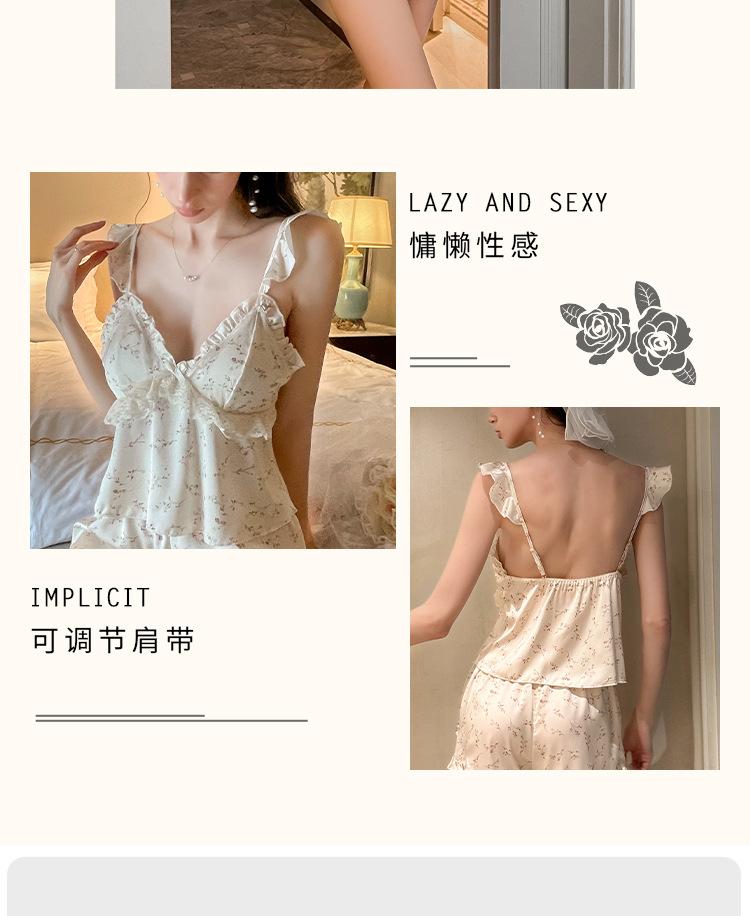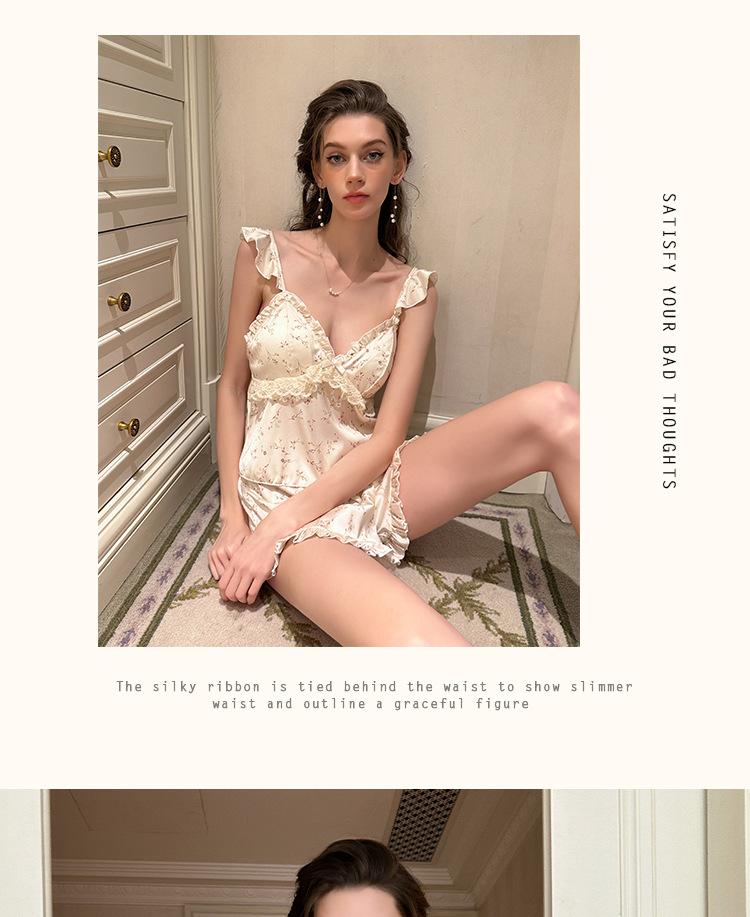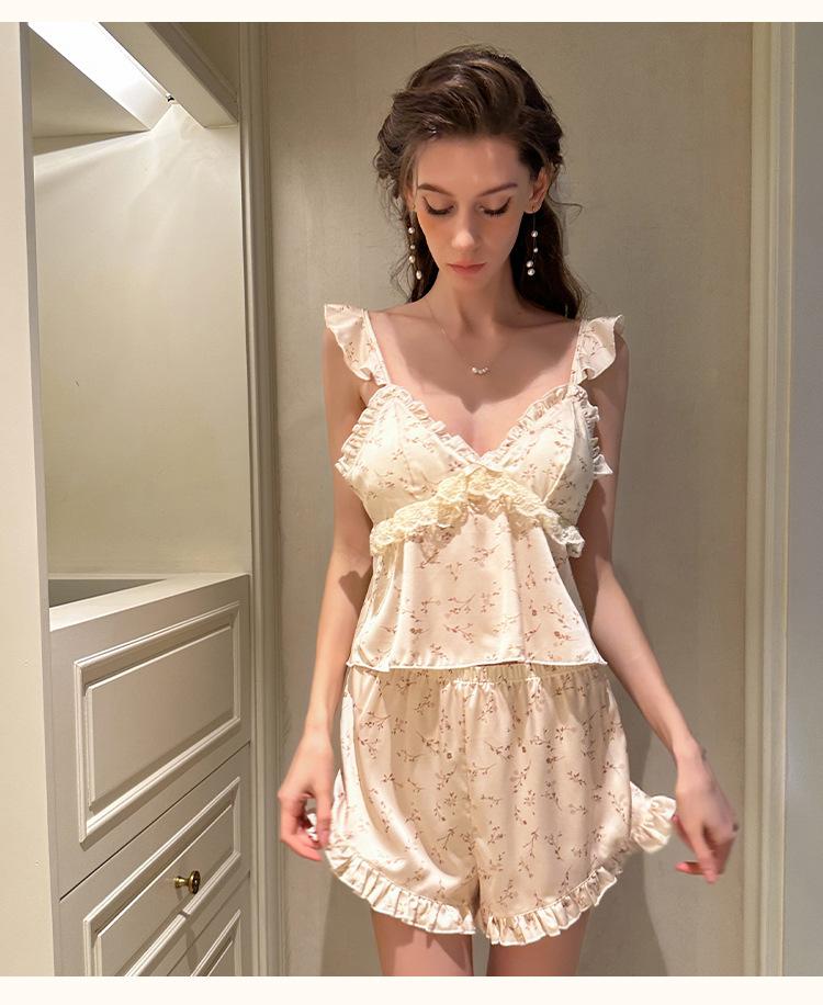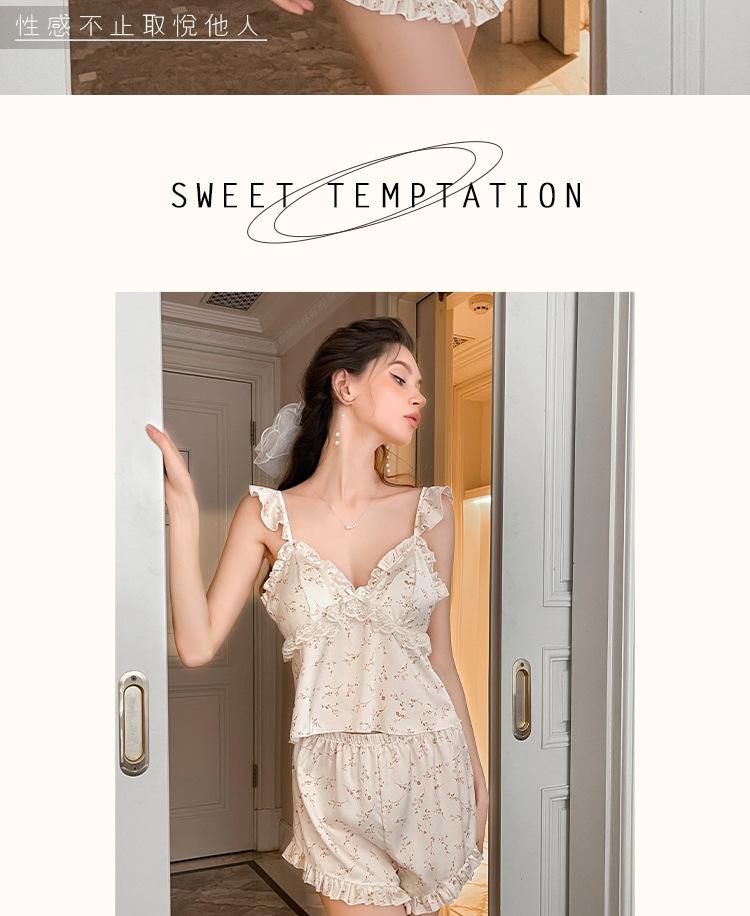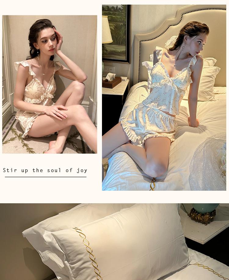 Conjunto de Lencería Sexy de Estilo Francés con Profundo Escote en V Floral para Estar en Casa, Camisola y Shorts para Mujer