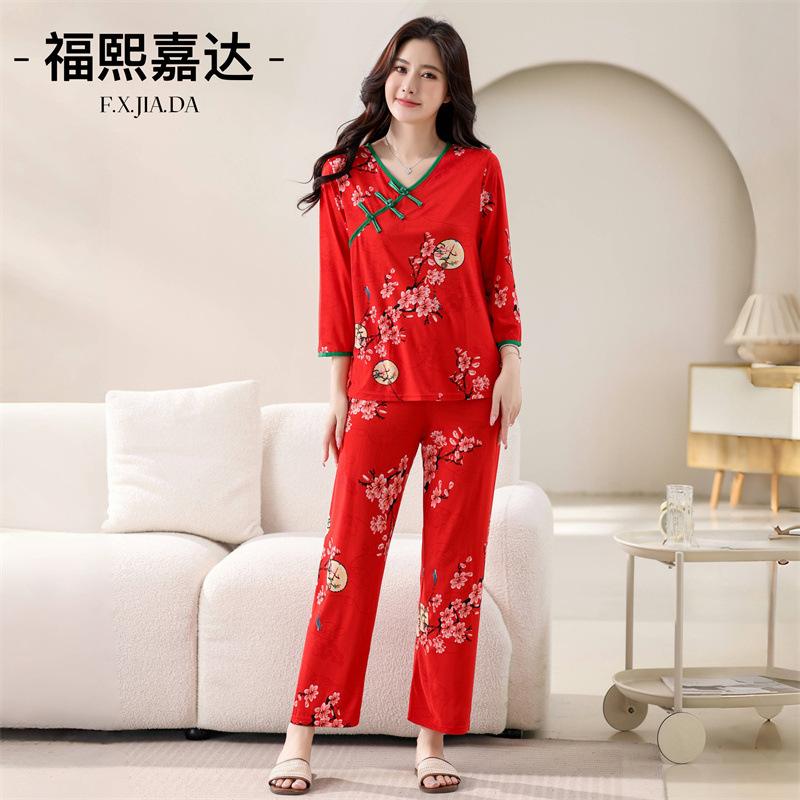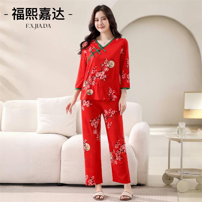 938 pajamas northeast large flower, 938 pajamas red fan plum blossom, 938 pajamas green fan plum blossom, 938 ...