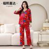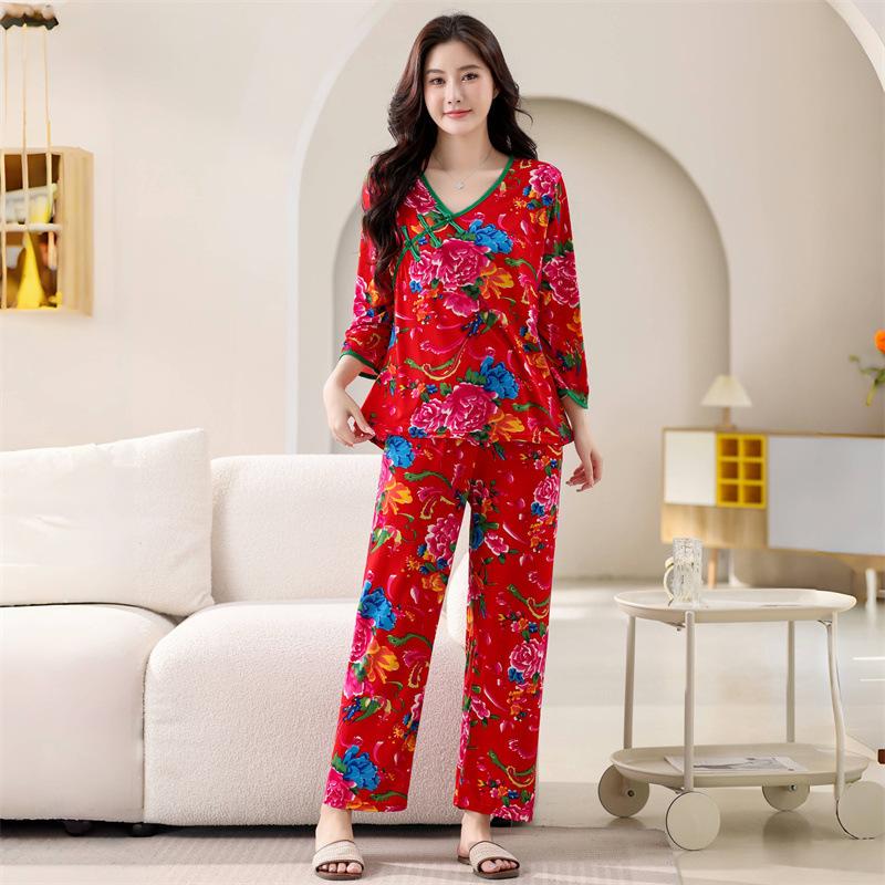 Pijama de Mujer Estilo Chino de Pulóver Northeast Cyber Celebrum Northeast Flor Grande Pijama para Casa Conjunto de Dos Piezas