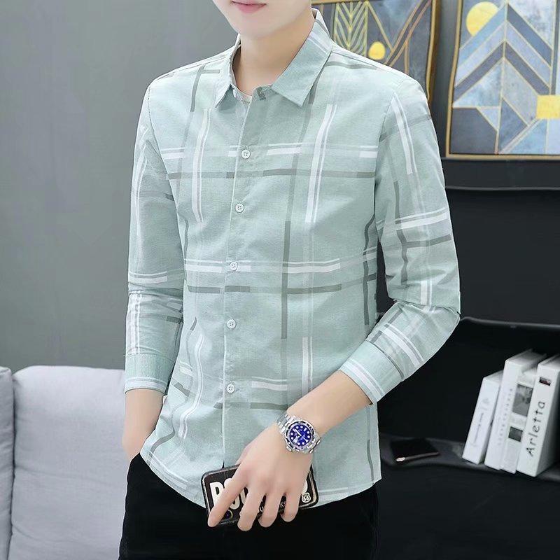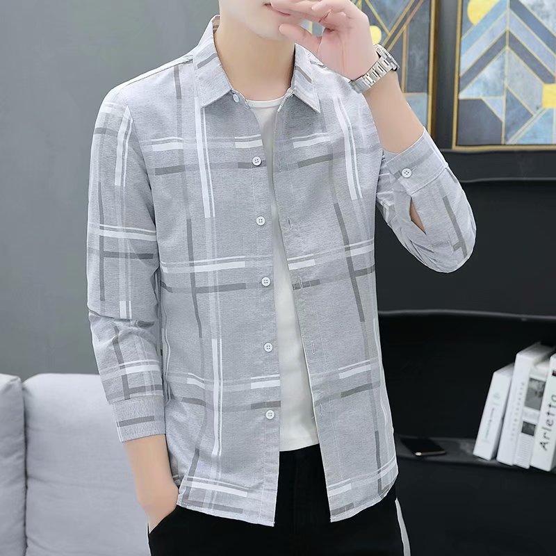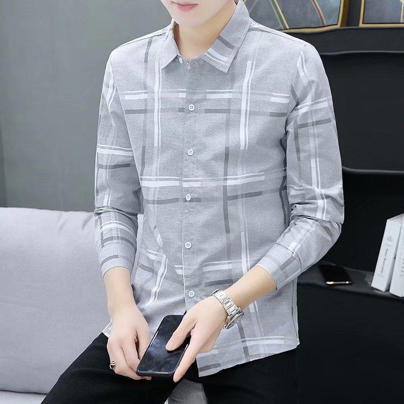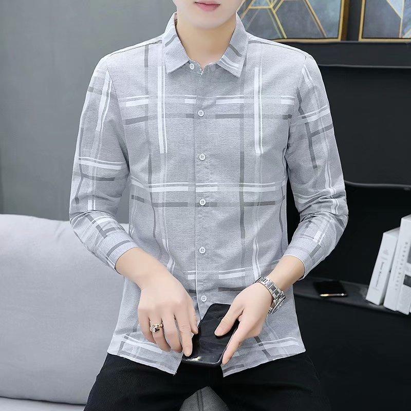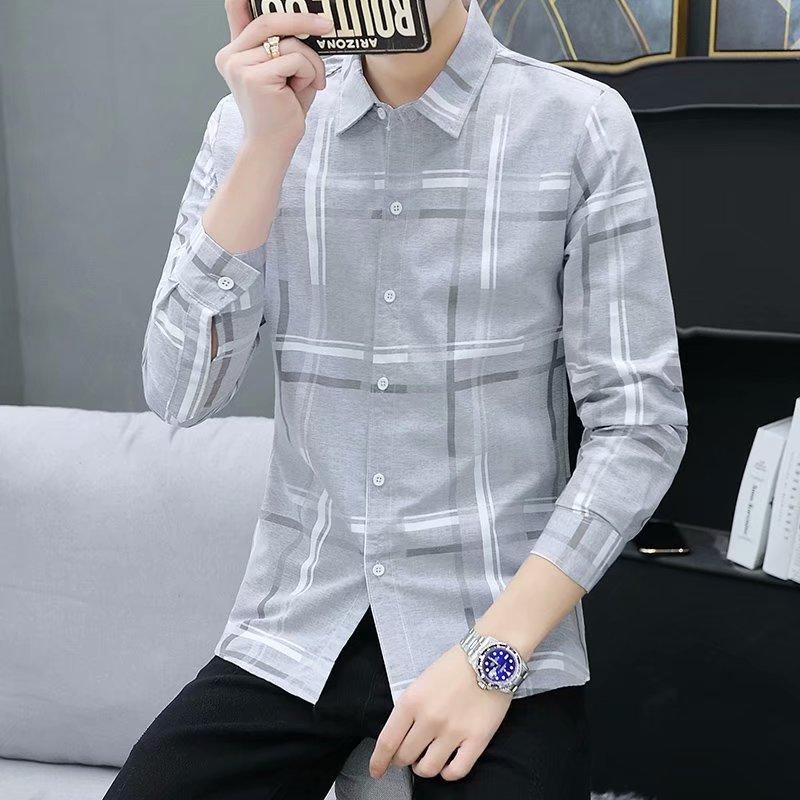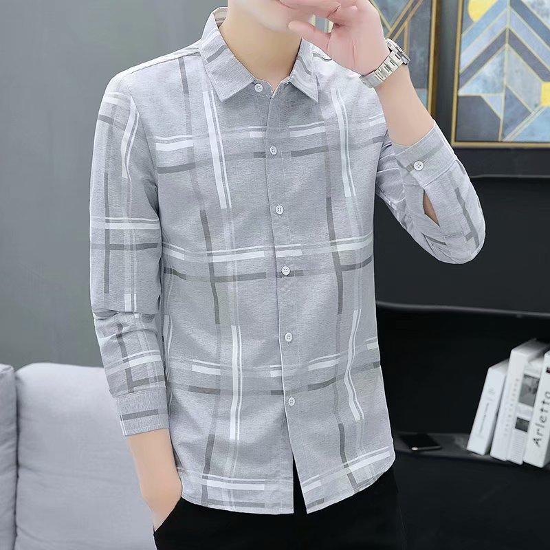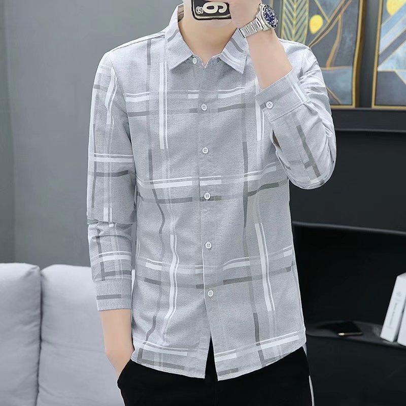 Camisa casual de manga larga para hombre, primavera y otoño 2023, nueva camisa de hombre de estilo coreano a la moda, elegante y delgada a rayas, al por mayor