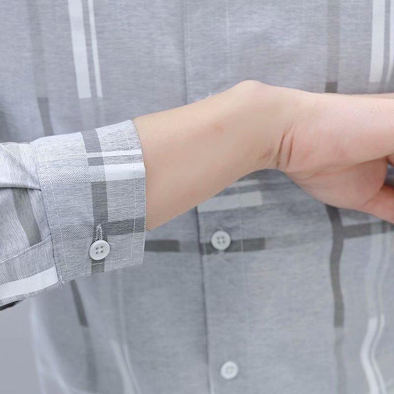 Camisa 2024 para hombre, camisa de gofre fresca, camisa de manga larga para hombre con protección solar, chaqueta estilo Chanel de verano