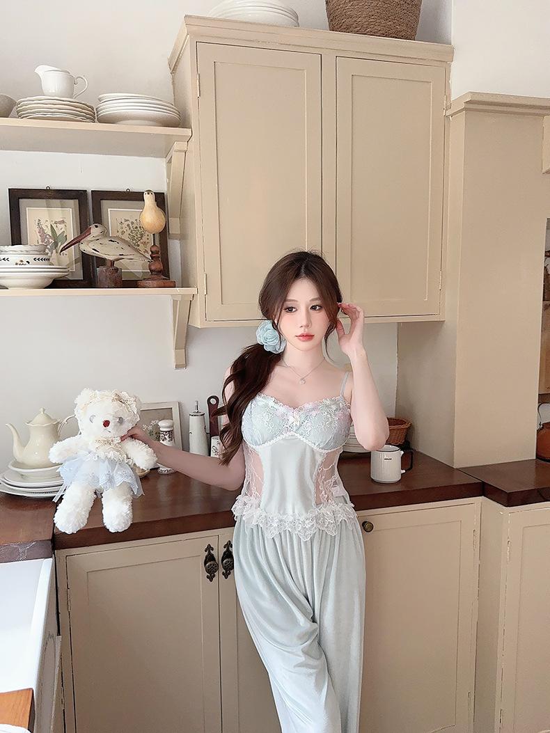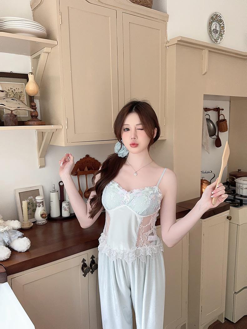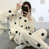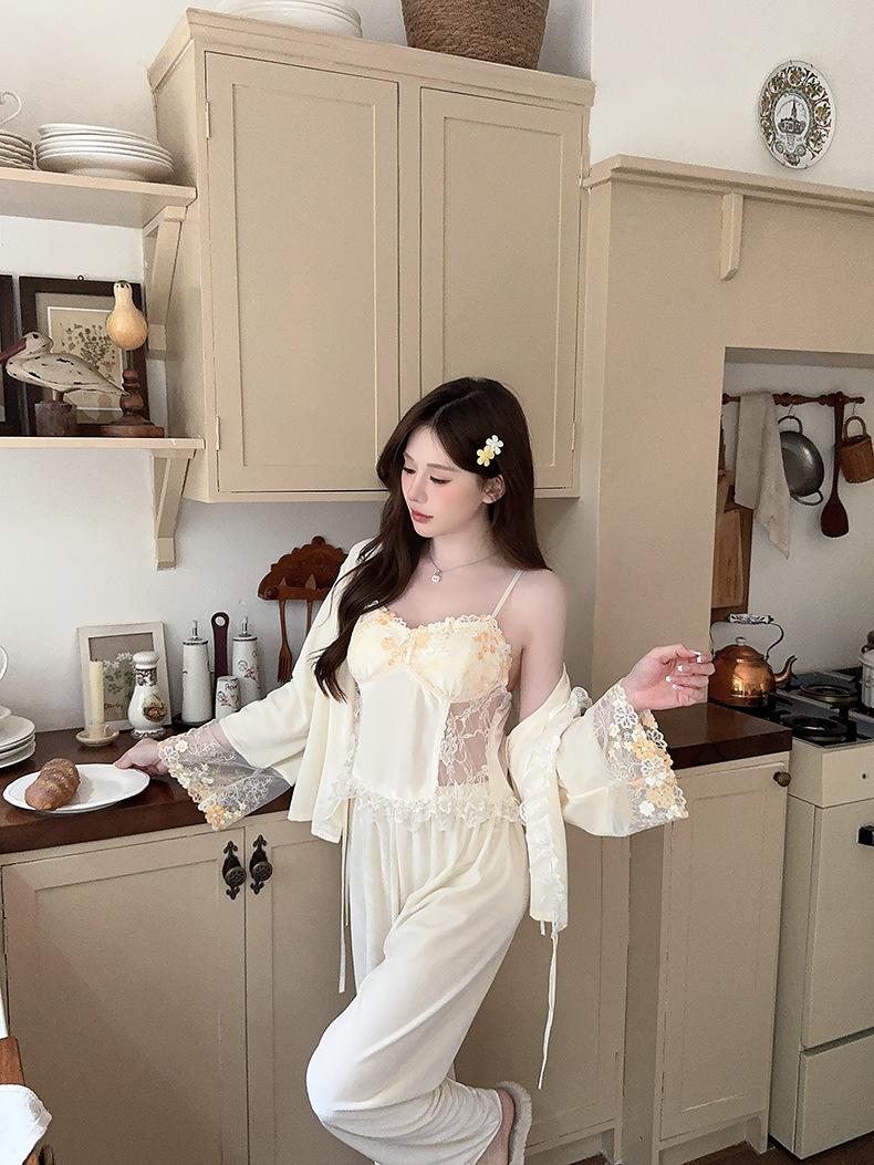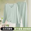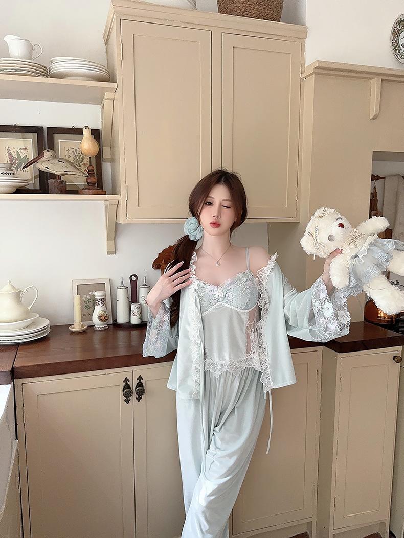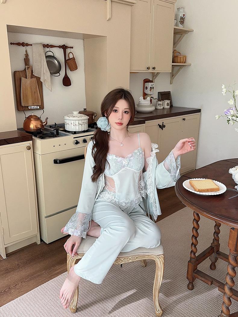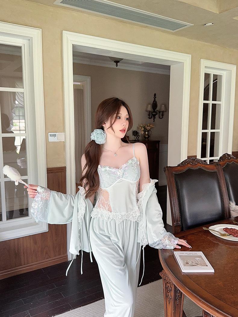Pijama de Terciopelo para Mujer, Otoño e Invierno, Conjunto de Pantalón Largo de Manga Larga con Solapa, Pijama de Encaje Estilo Palacio que se puede usar afuera