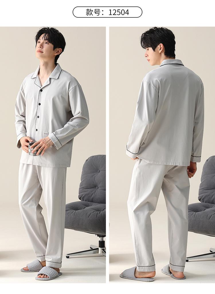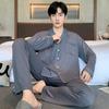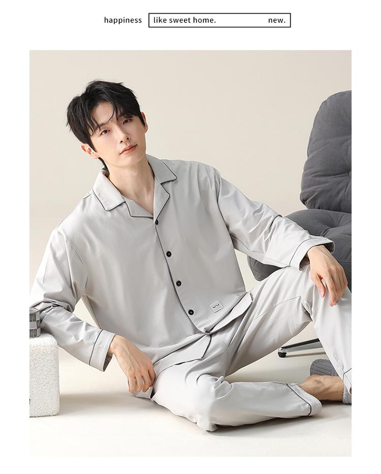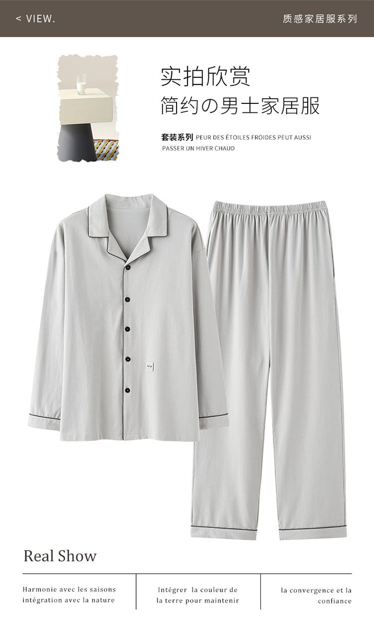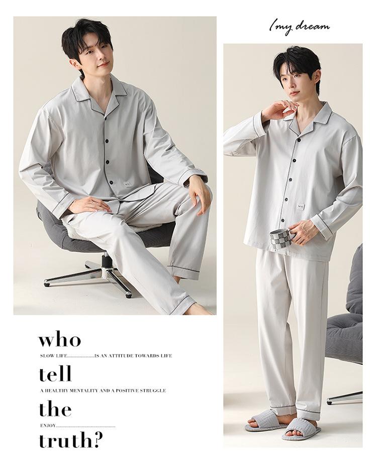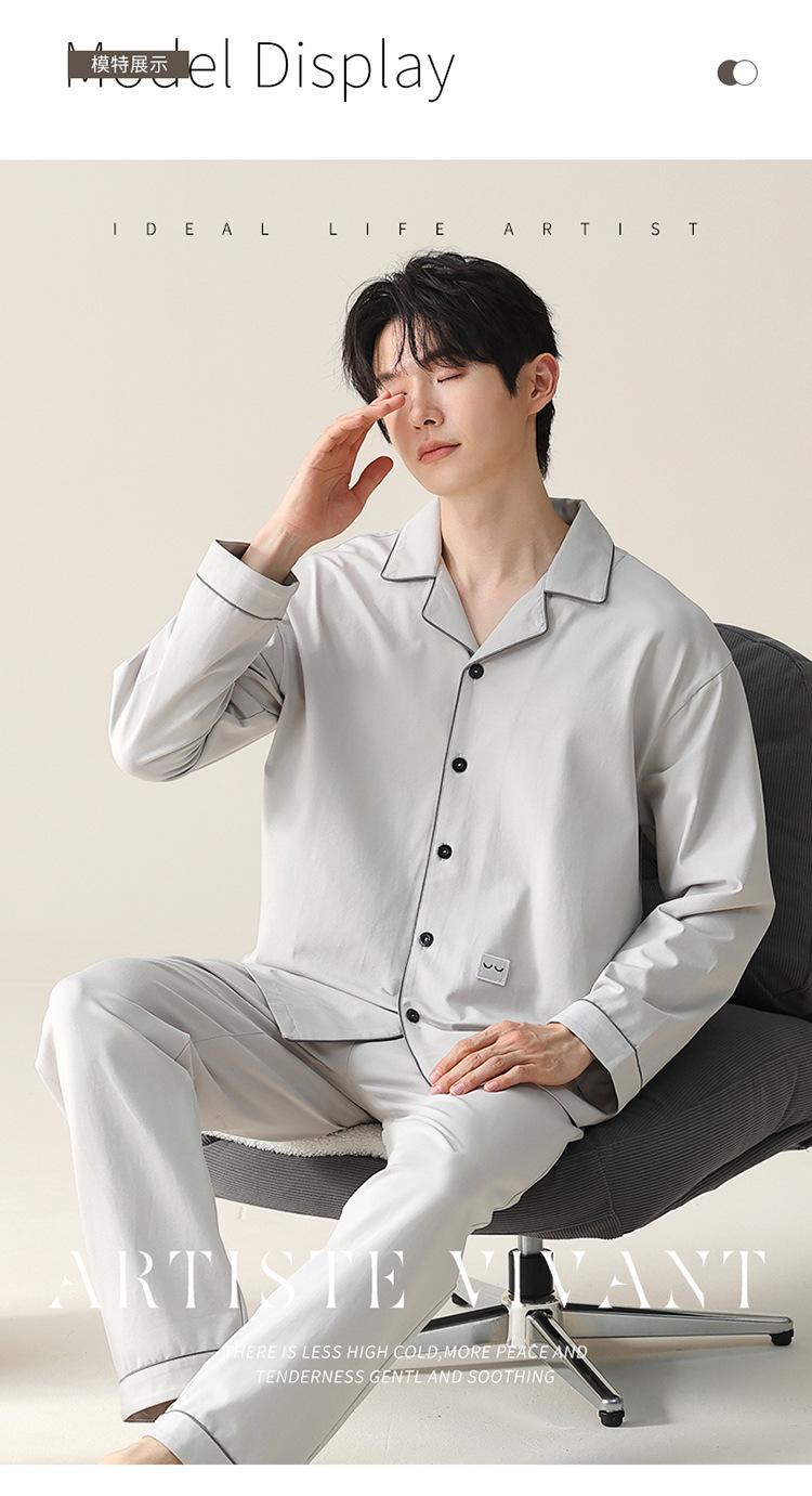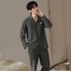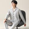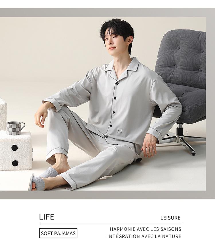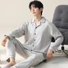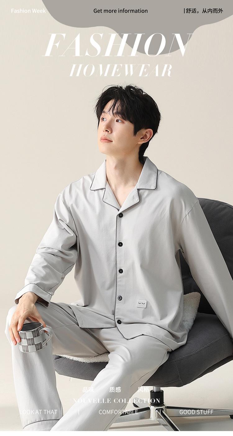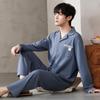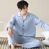 Pijamas de hombre de moda, primavera y otoño, de manga larga, sencillos, informales, para otoño e invierno, para jóvenes, con solapa, tallas grandes, ropa de hogar transfronteriza.