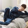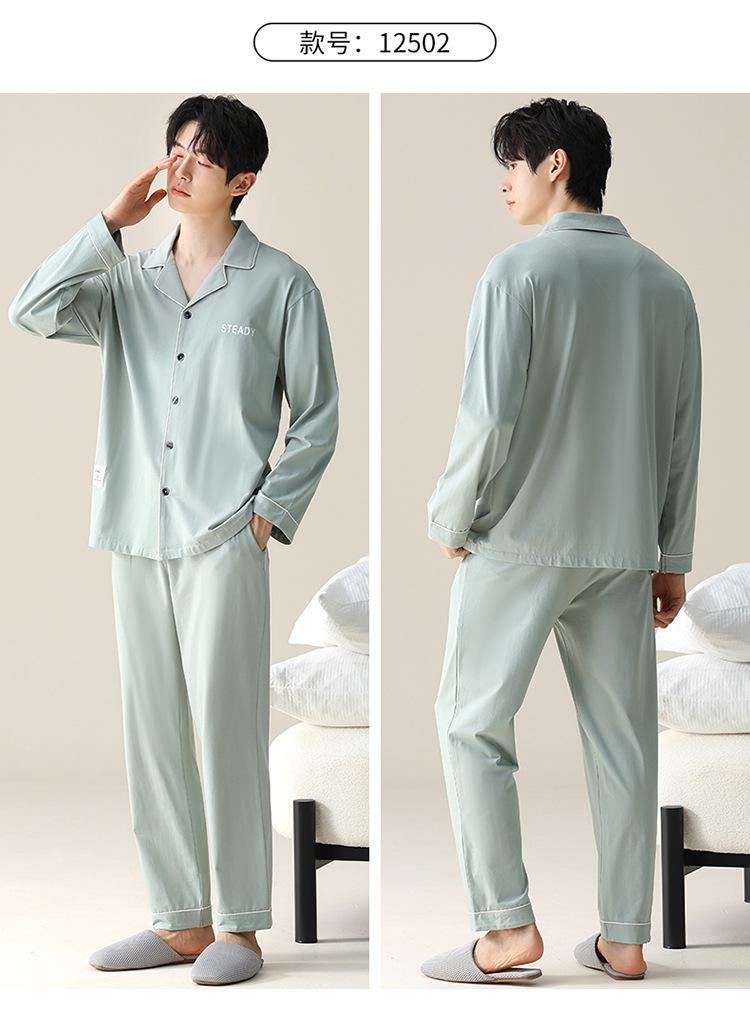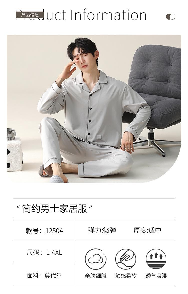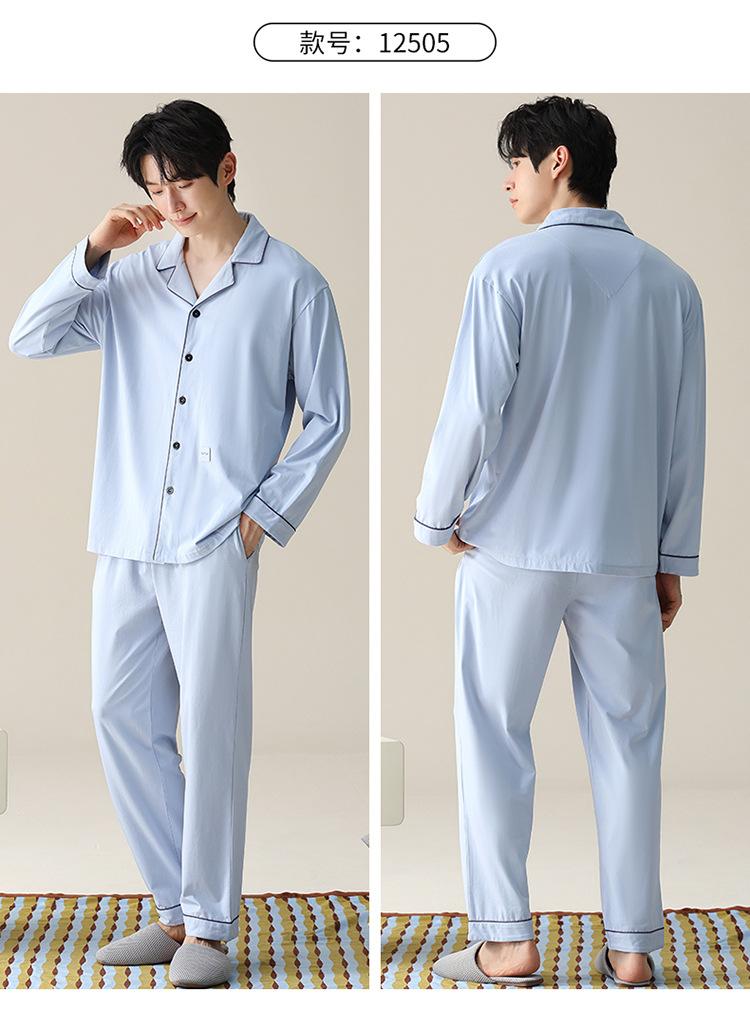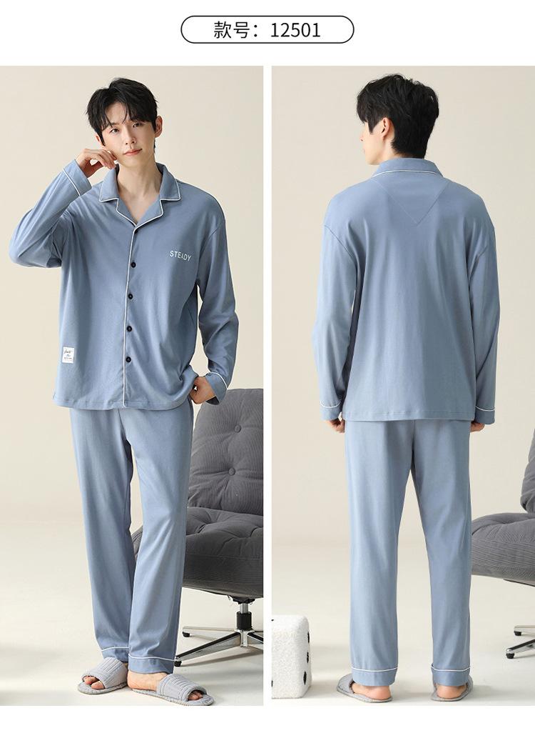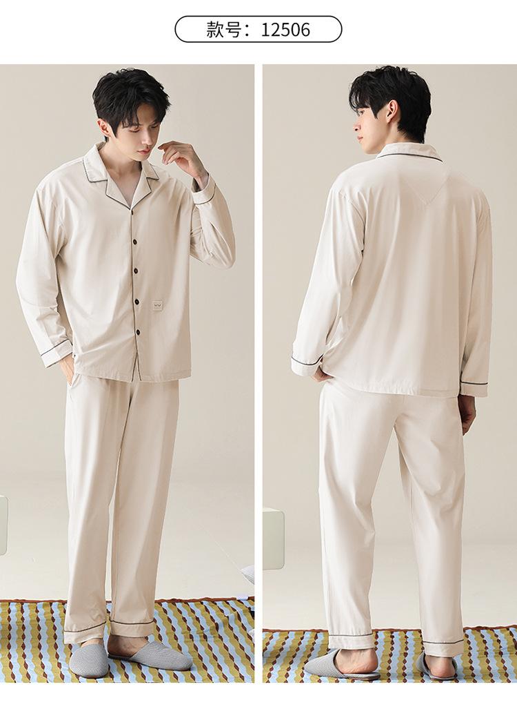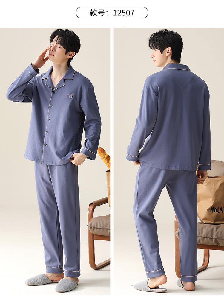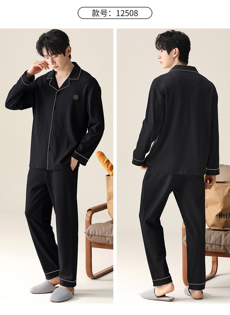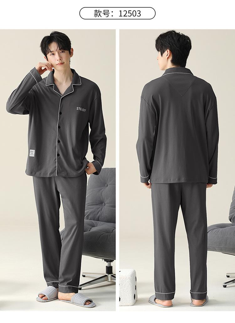 Pijamas de hombre de moda, primavera y otoño, de manga larga, sencillos, informales, para otoño e invierno, para jóvenes, con solapa, tallas grandes, ropa de hogar transfronteriza.