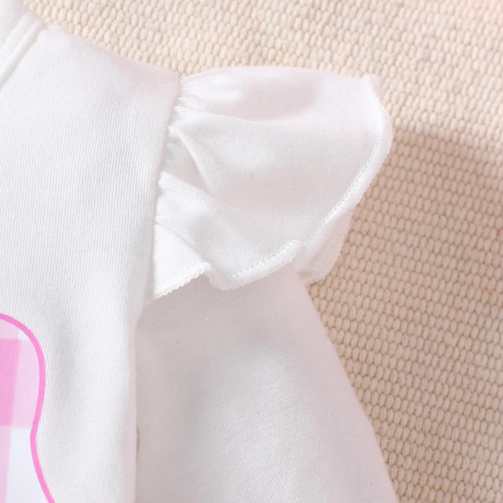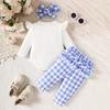 Temporada 2025 Nuevo Bebé Niña Dulce Manga Larga Lazo Estampado Liebre Cuadros Pantalones Diadema Conjunto de Tres Piezas