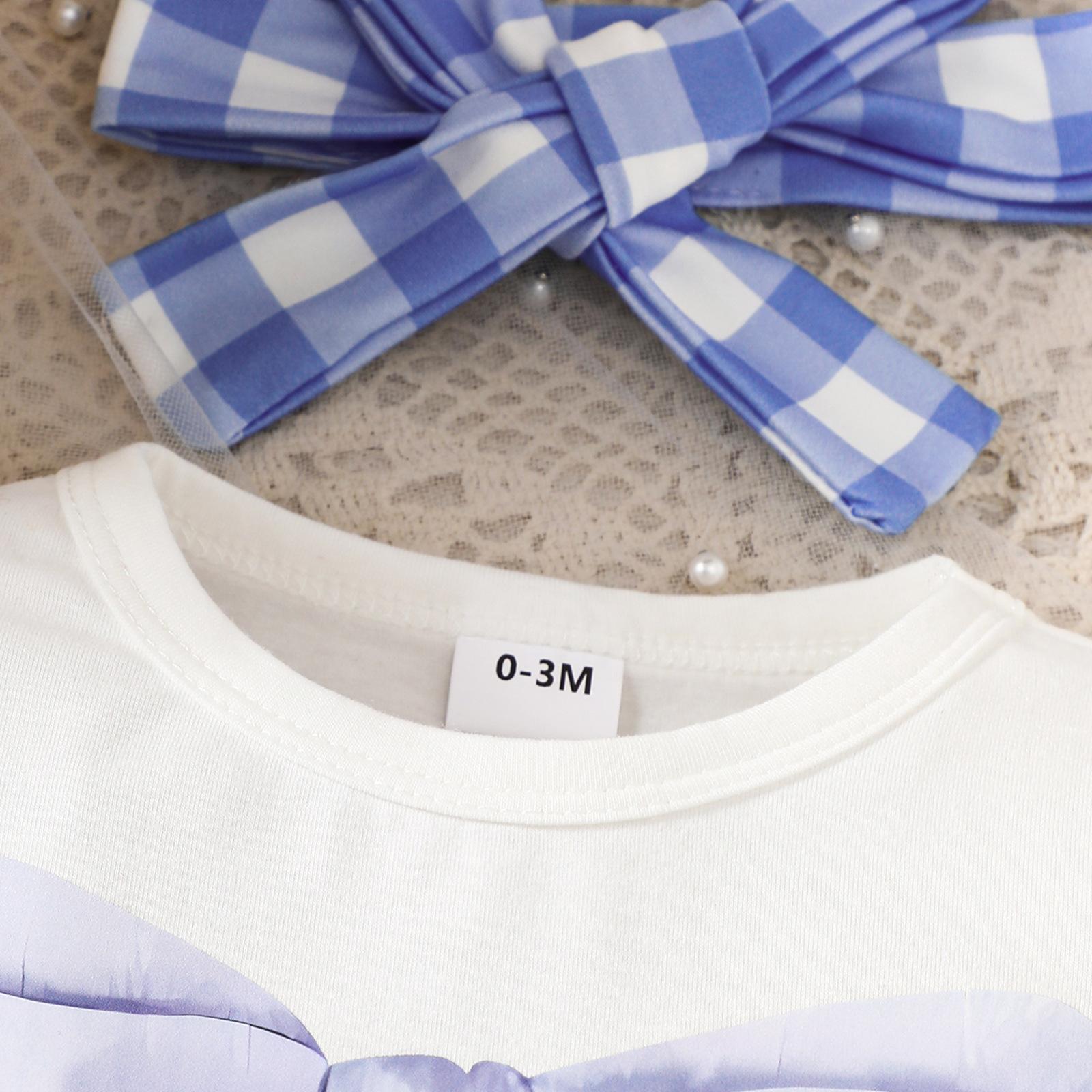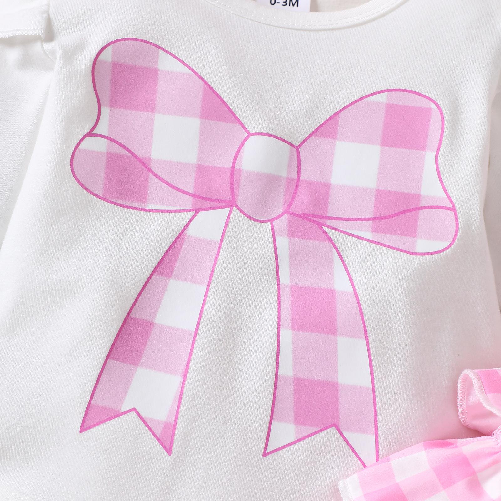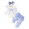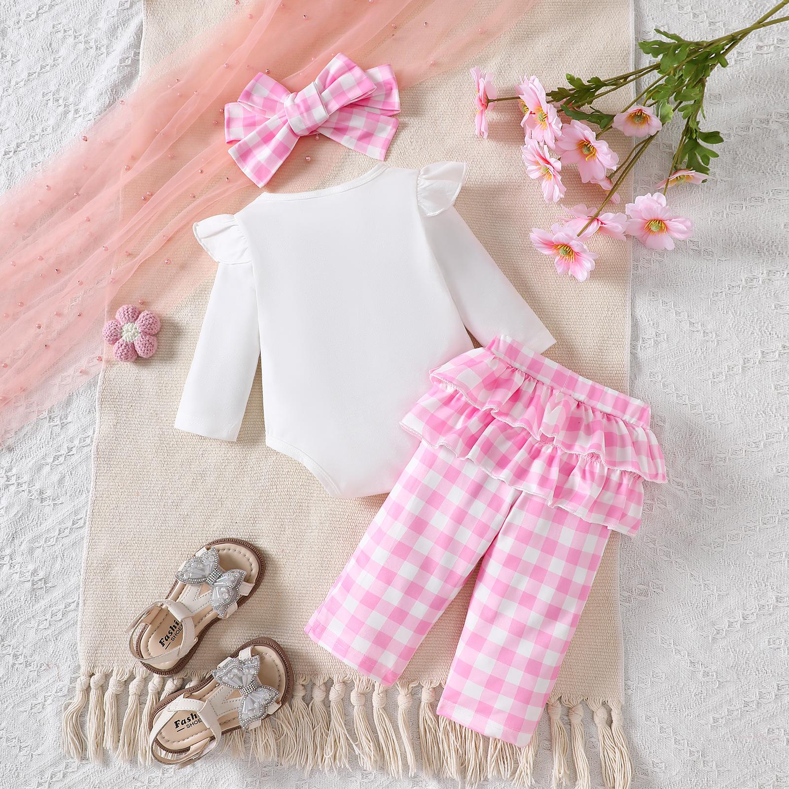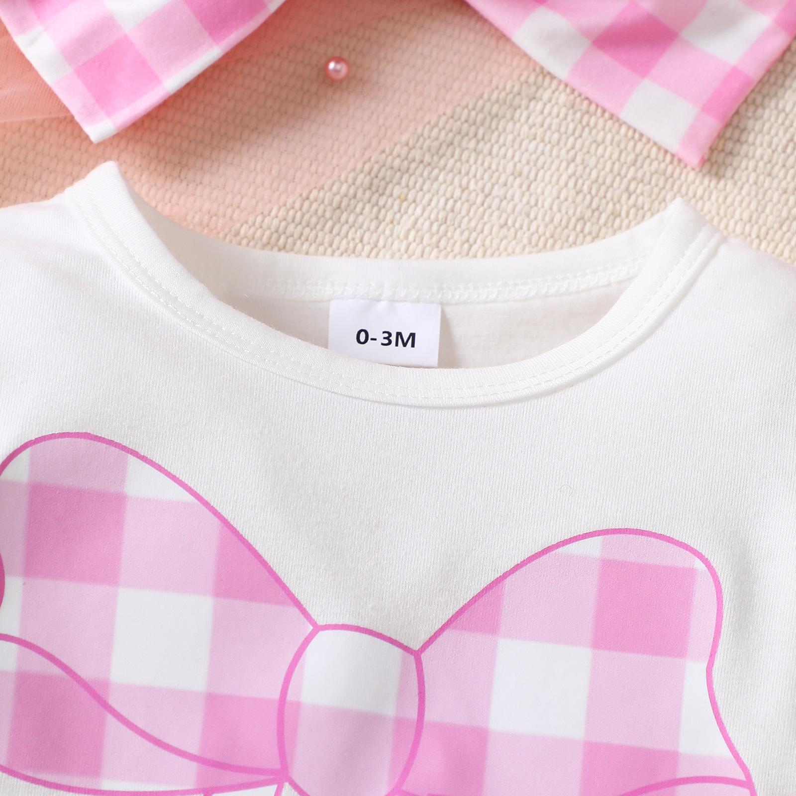 Compra Temporada 2025 Nuevo Bebé Niña Dulce Manga Larga Lazo Estampado Liebre Cuadros Pantalones Diadema Conjunto de Tres Piezas al por mayor en Joom.pro
